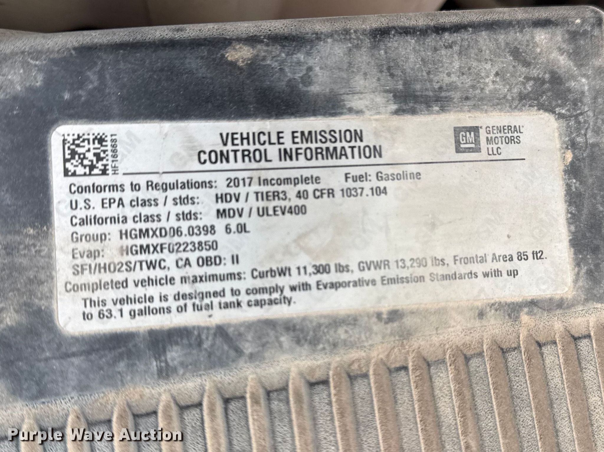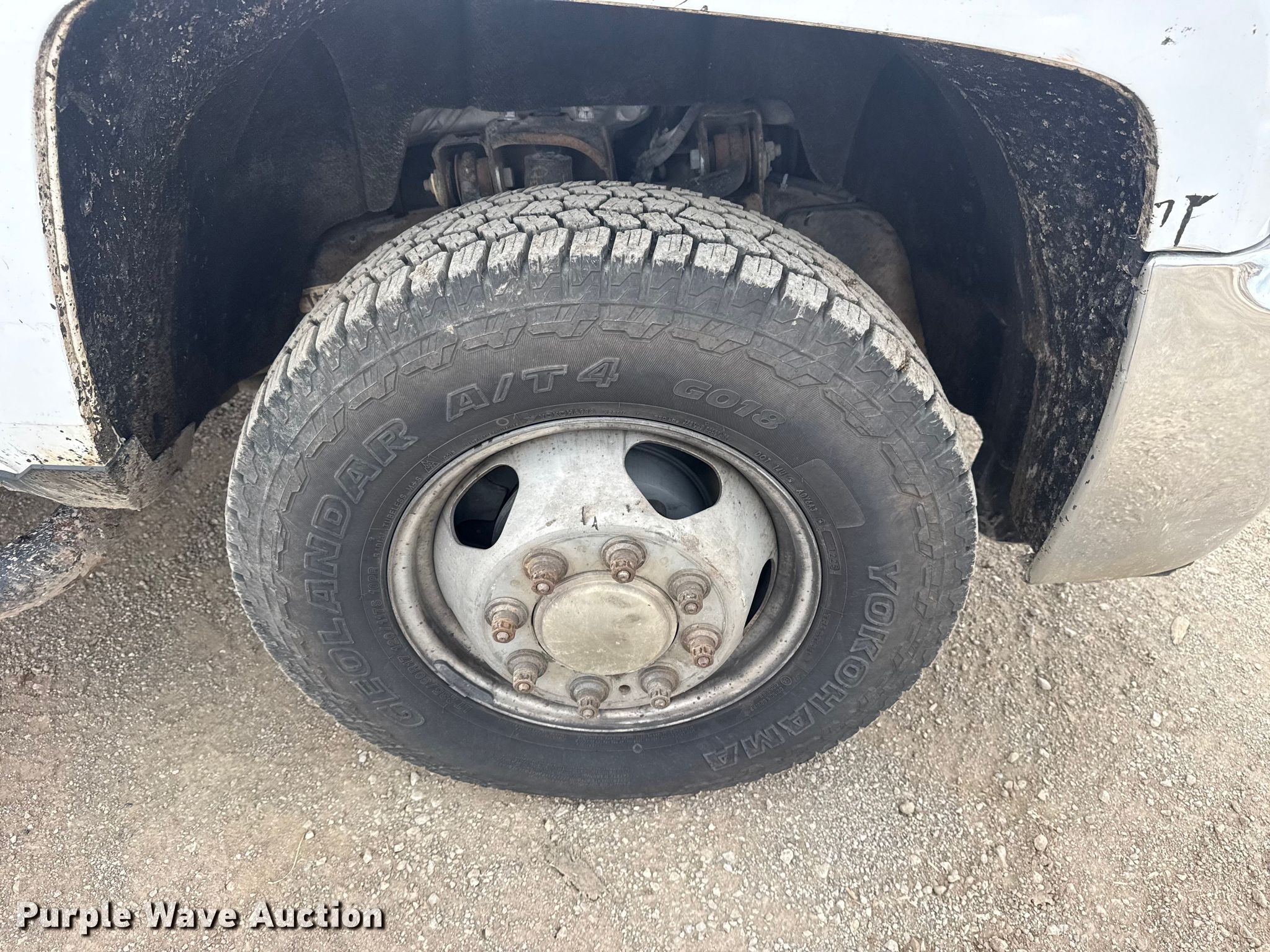 2017 Chevrolet Silverado 3500HD Crew Cab flatbed pickup truck. Miles: 194,514 on odometer, VIN: 1GB4KYCG0HF166681, Unit #: 2-191. Engine Displacement: 6.0L, Cylinders: 8, Fuel type: Gas. Transmission Automatic, Four wheel drive. Interior AC, Heat, Power windows, Power locks, Cruise control, Brake controller. Features Bed Flatbed, Length: 9' 5", Width: 94", Hitch: Gooseneck, Auxiliary diesel fuel tank Fill-rite pump, GPM: 15, Volts: 12. Tires Size: LT235/80R17. Notes Dash warning indicator: Check engine, Windshield chipped or cracked. Oklahoma title. Title distribution may be delayed up to 14 days from verification of funds. Becco Contractors Inc. Tulsa, OK 74116