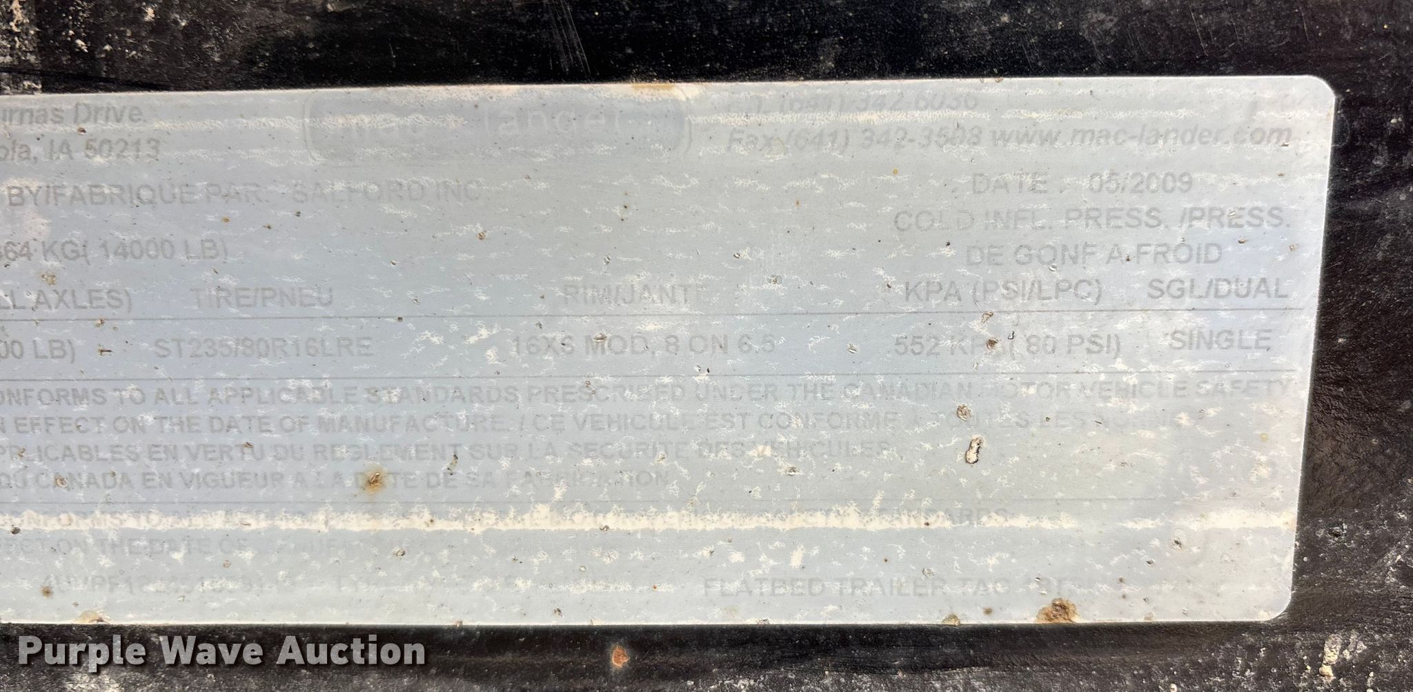 Purple Wave is selling a used Equip. Trailer in Missouri. This item is a 2009 Mac-Lander equipment trailer with the following: VIN: 4UVPF182491009149