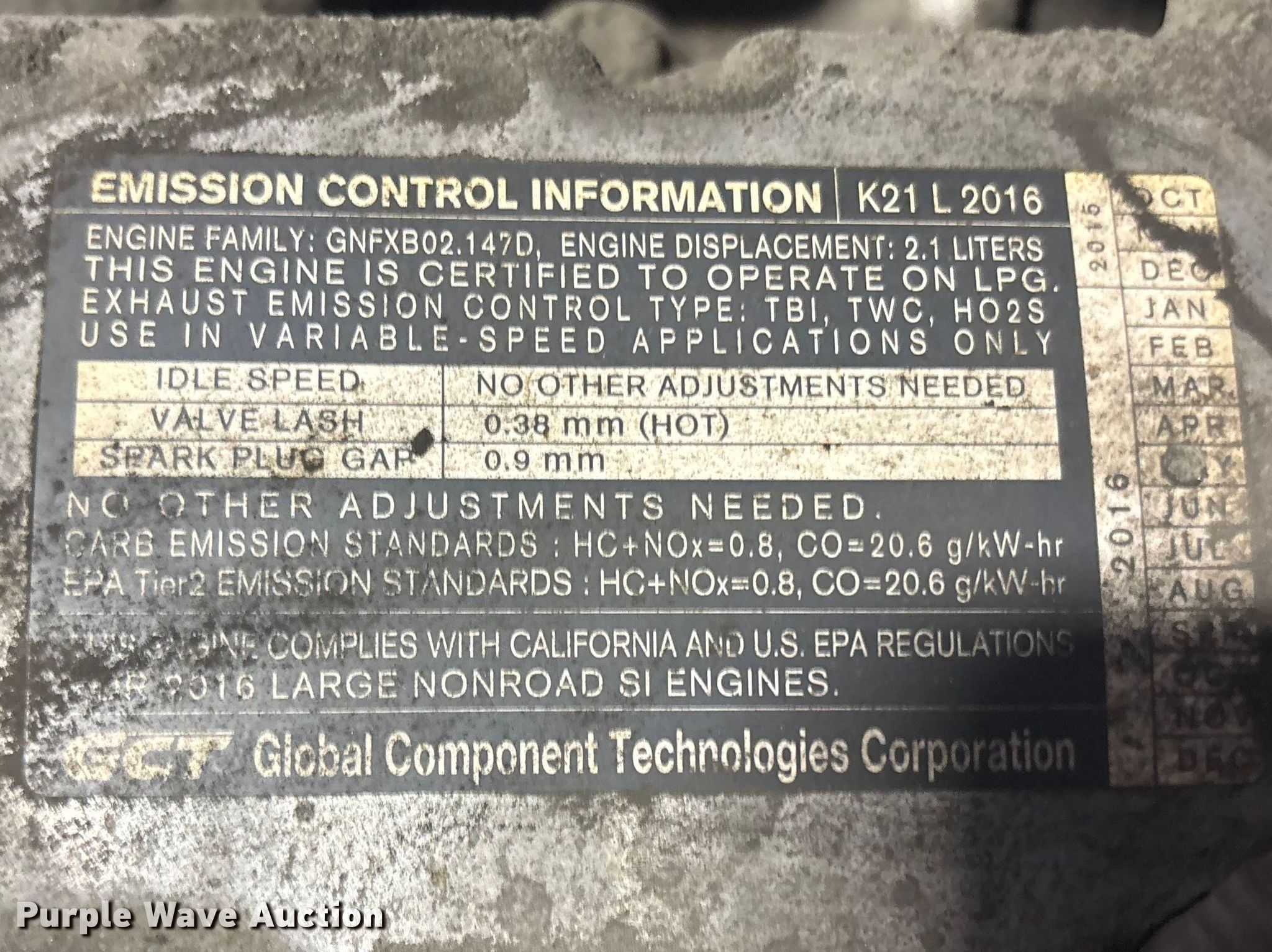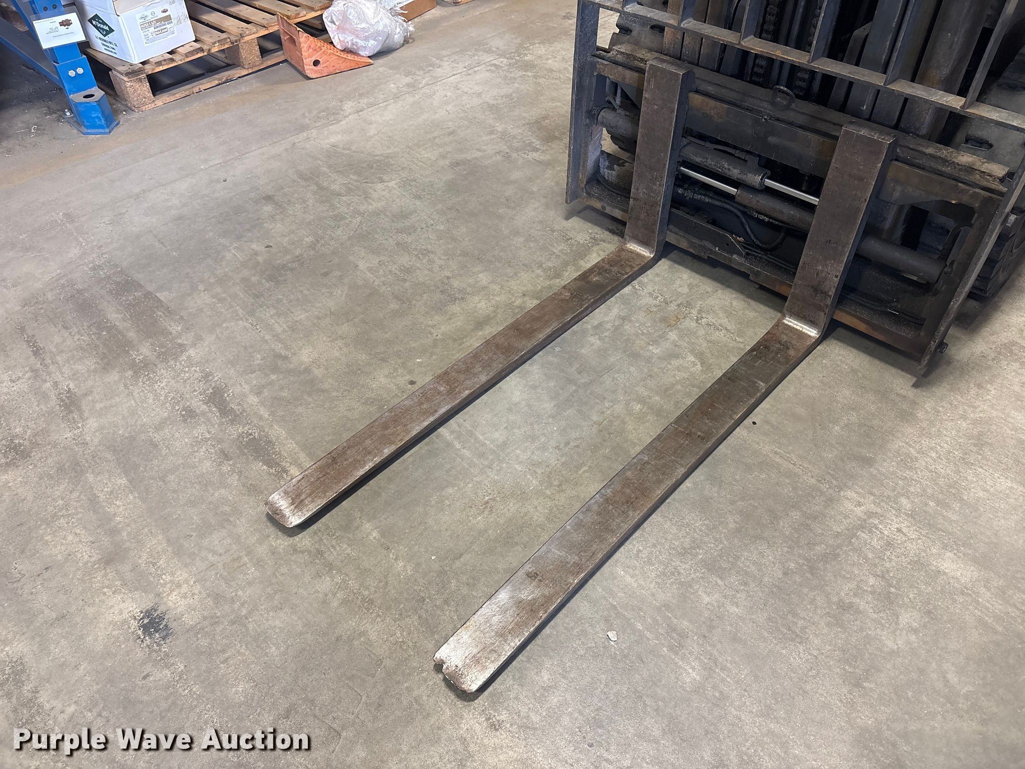 2016 UniCarriers PF50 forklift. Hours: 6,438 on meter, Serial: P1F2-9H20991, Unit #: SFS3068. Engine GCT K21L, Displacement: 2.1L, Cylinders: 4, Fuel type: LPG LP bottle: Not included. Transmission Automatic. Operators station OROPS, Canopy. Features Maximum lift height: 203", Collapsed mast height: 89", Mast stages: 3, Side shift, Mast tilt, Fork positioner, Fork length: 47". Tires Front: 7.00-12, Rear: 6.00-9, Solid. Notes Warning indicator: Master warning. Ferguson. Upper Marlboro, MD 20772
