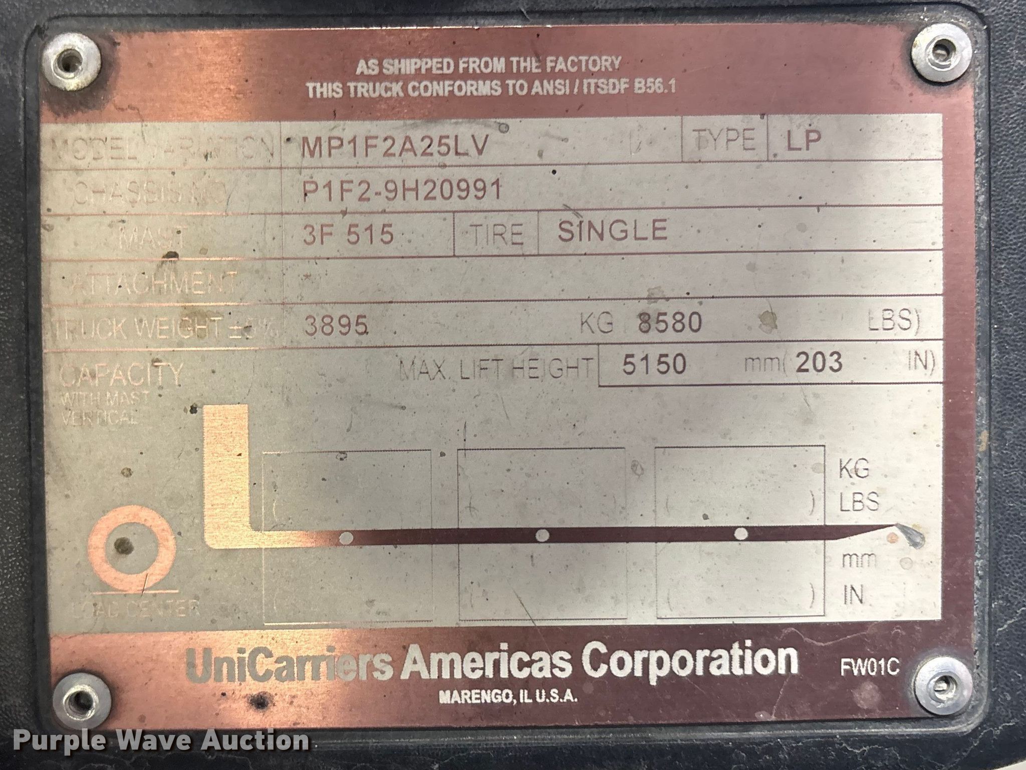 Purple Wave is selling a used Cushion Tire or Pneumatic Forklift in Maryland. This item is a 2016 UniCarriers PF50 forklift with the following: Hours: 6,438 on meter, Serial: P1F2-9H20991, Unit #: SFS3068