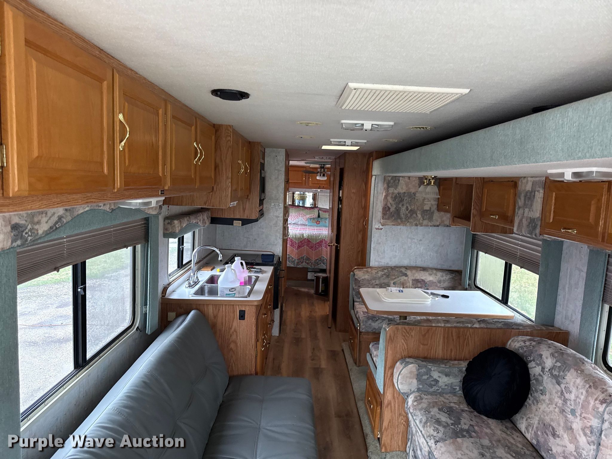 1999 Gulf Stream Sun Sport RV. Miles: 100,148 on odometer, Hours: 1,189 on meter, Camper length: 34', VIN: 4VZDM5790XC031425. Engine Displacement: 5.9L, Cylinders: 6, Fuel type: Diesel. Transmission Allison, Automatic. Chassis Axles: Single, Suspension: Air, Brakes: Air. Interior Kitchen: Sink, Refrigerator, Freezer, Microwave, Oven, Stove: Propane, Living room: Table, Couch, Pull out couch, Bathroom, Beds: 1 Bed type: Queen, TVs: 2, Sound system, Heater, AC units: 2. Features Slide outs: 1, Awnings: 1, Generator. Tires Size: 245/75R22.5. Notes Non-operational slide out motors, Non-operational generator. Kansas title. Title distribution may be delayed up to 14 days from verification of funds. Tonganoxie, KS 66086