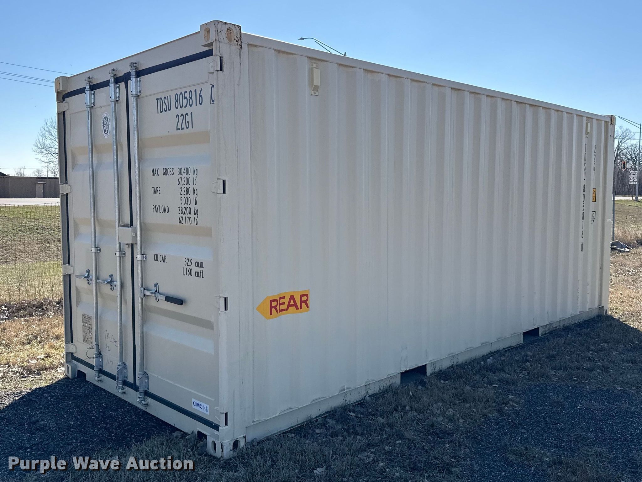 Purple Wave is selling a used Storage or Shipping Container in Kansas. This item is a 2024 CIMC shipping container with the following: Serial: QDCM24A17182, Length: 20'