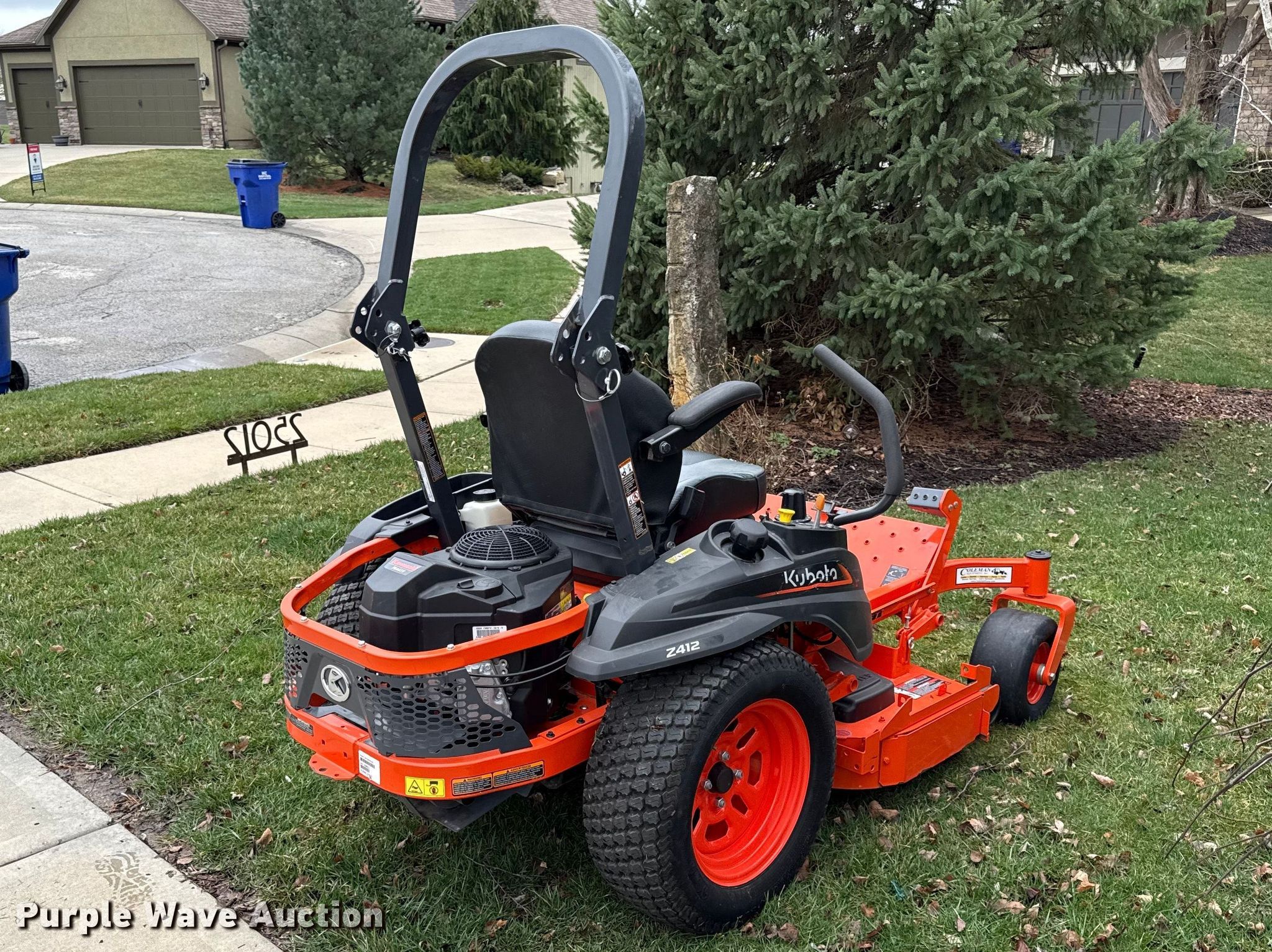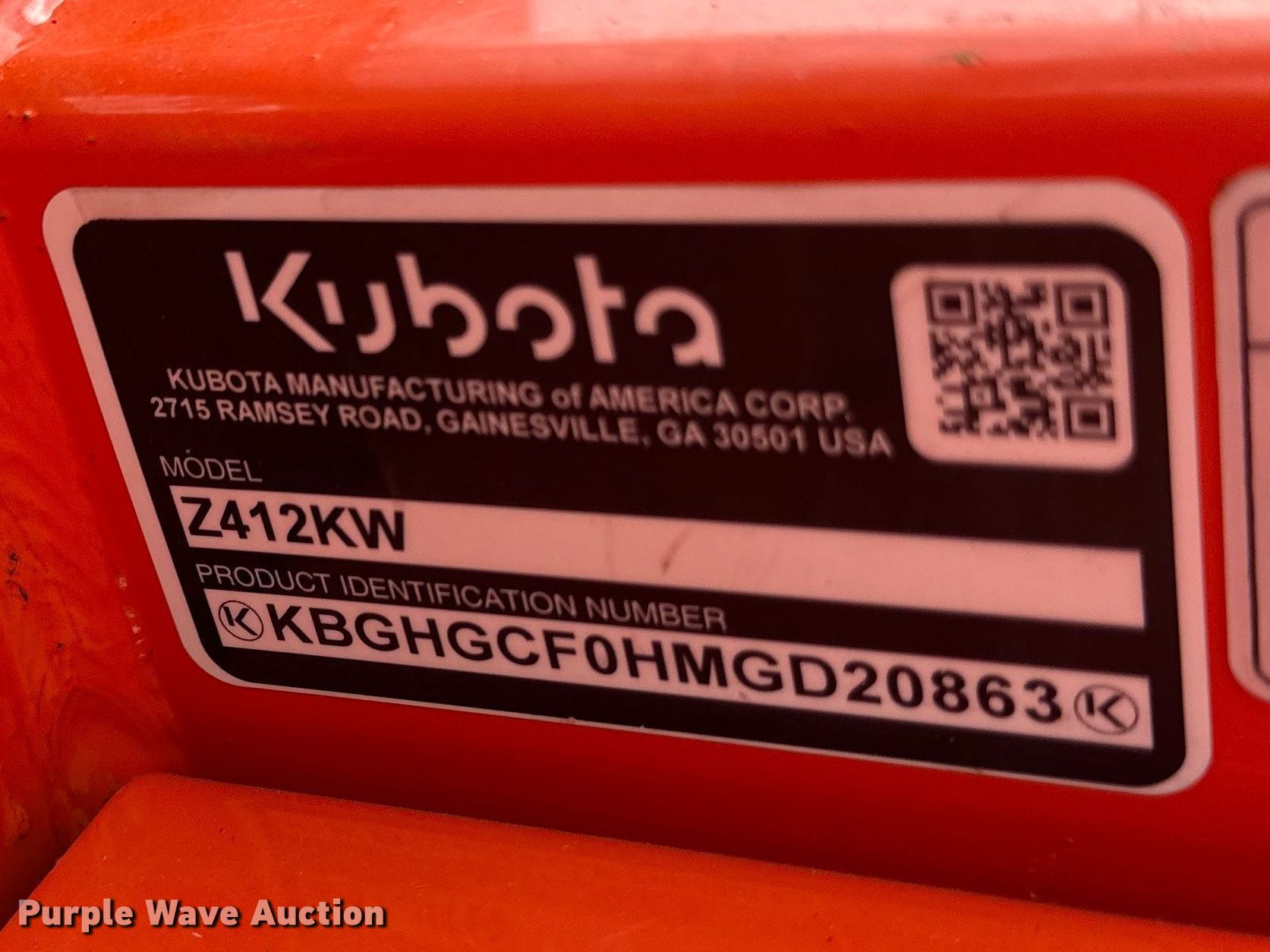 Purple Wave is selling a used Lawn Mower in Kansas. This item is a Kubota Z412 ZTR lawn mower with the following: Hours: 54 on meter, Cutting width: 48", Serial: KBGHGCF0HMGD20863