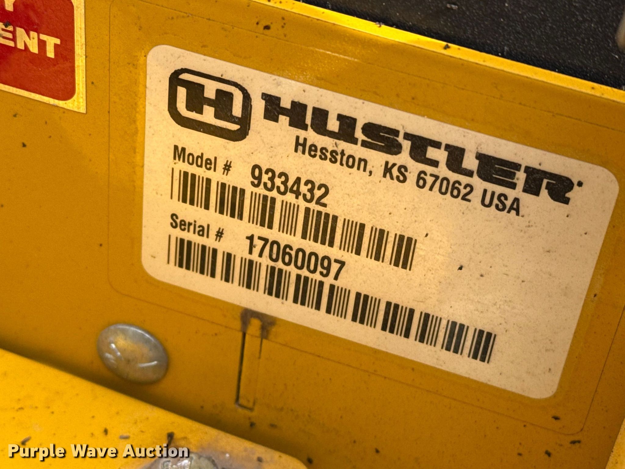 Purple Wave is selling a used Lawn Mower in Kansas. This item is a Hustler Fastrak ZTR lawn mower with the following: Hours: 662 on meter, Cutting width: 54", Serial: 17060097