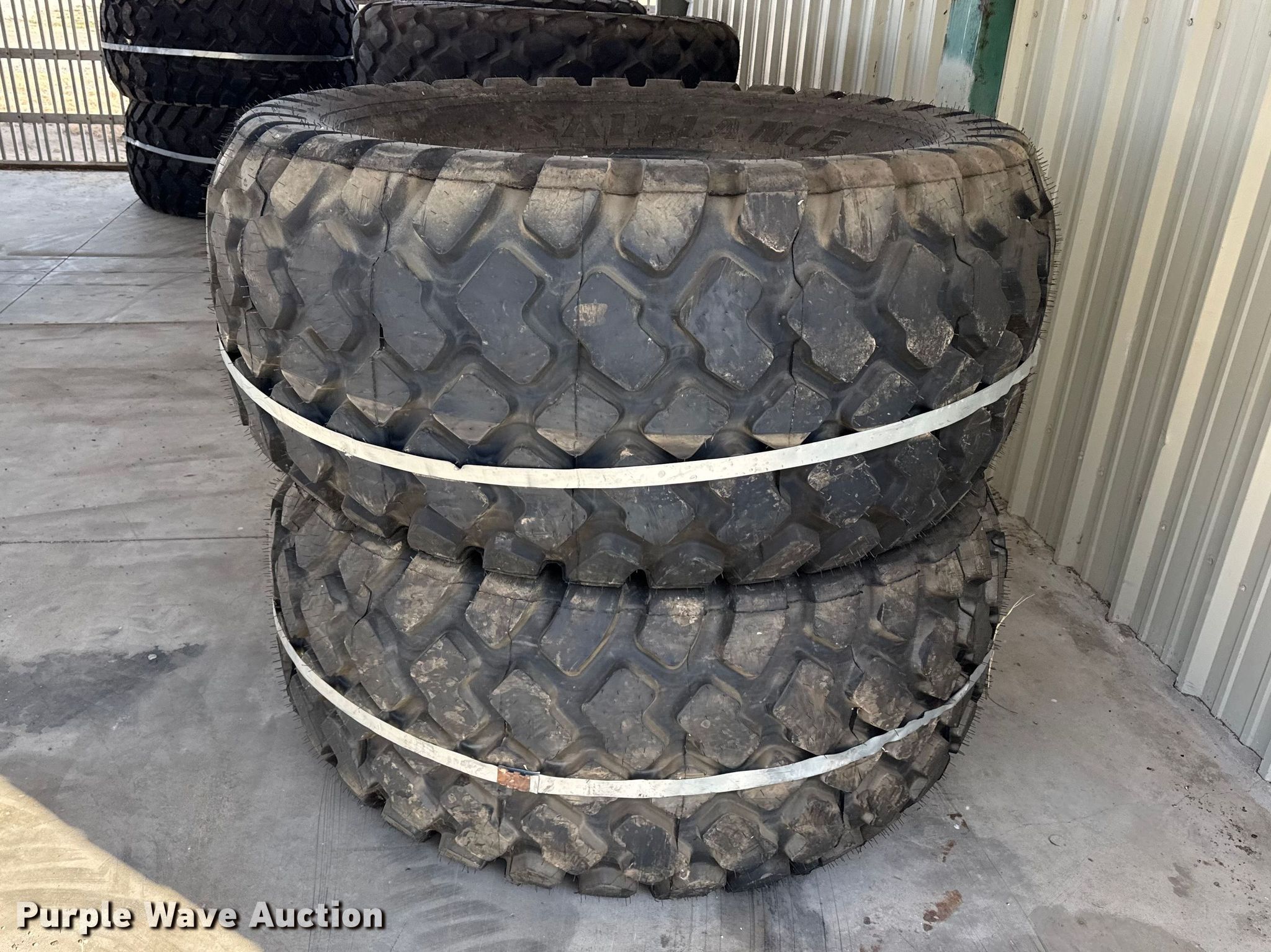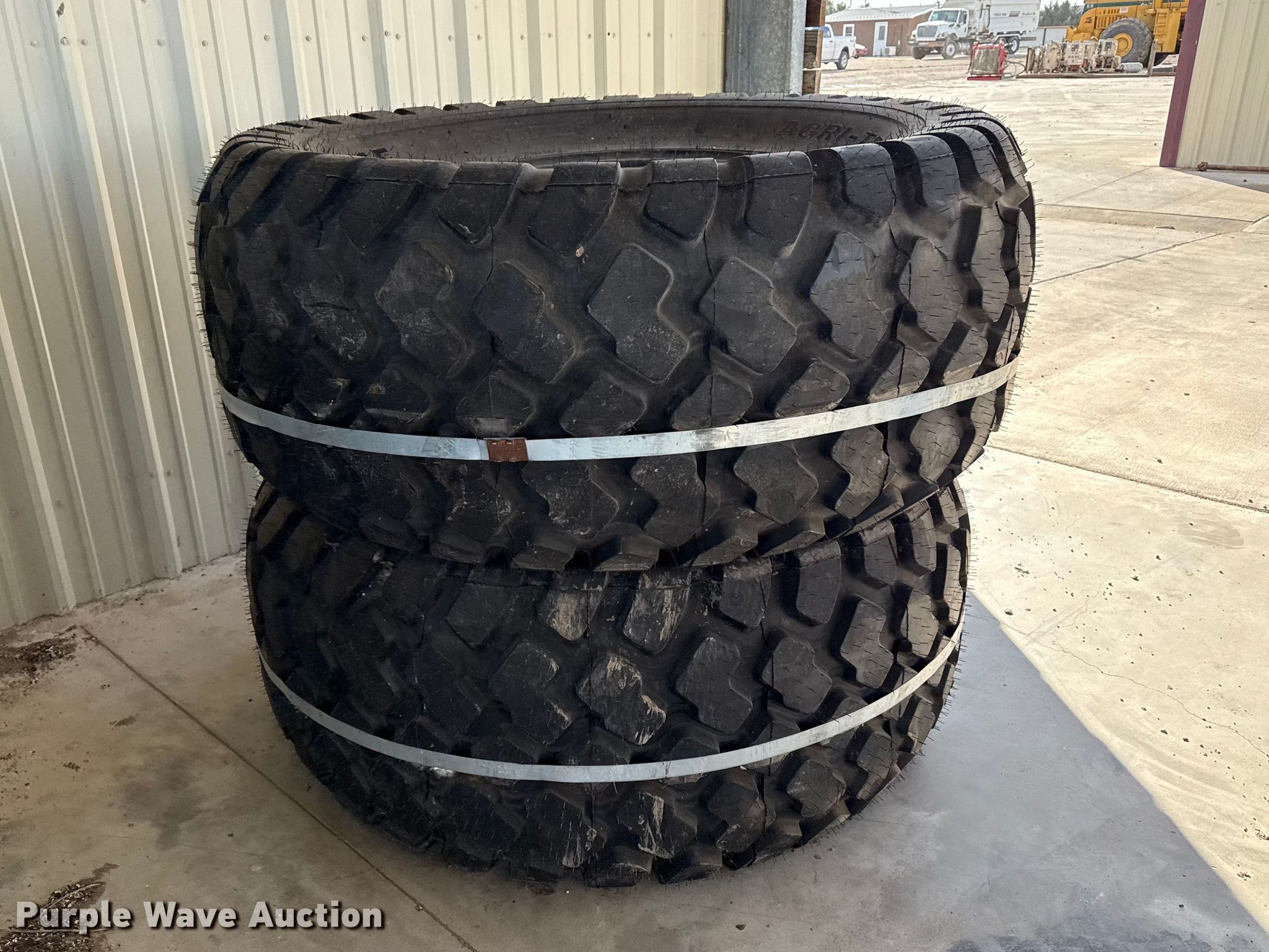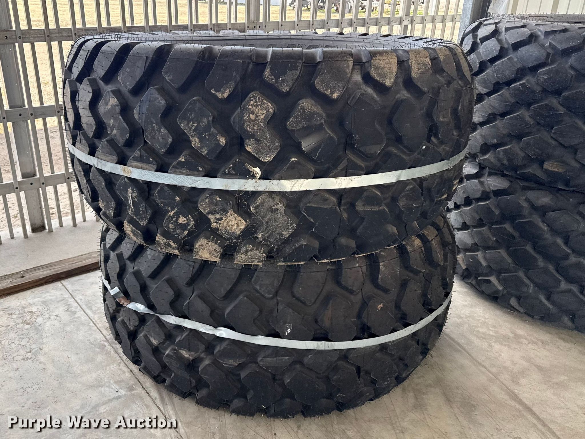 Purple Wave is selling a used Industrial Tires or Tracks in Kansas. This item is a (4) tires with the following: 28LR26, Unused