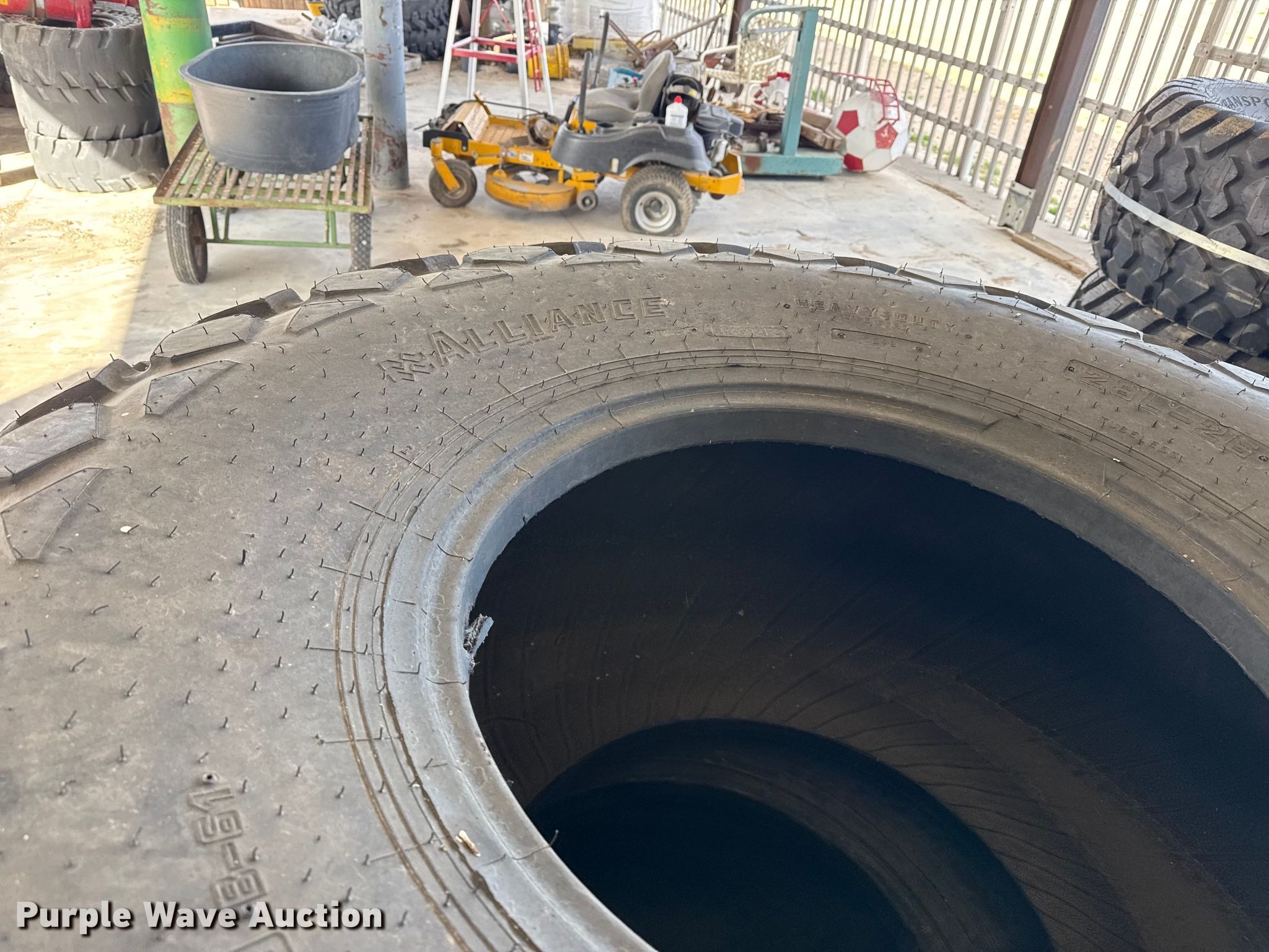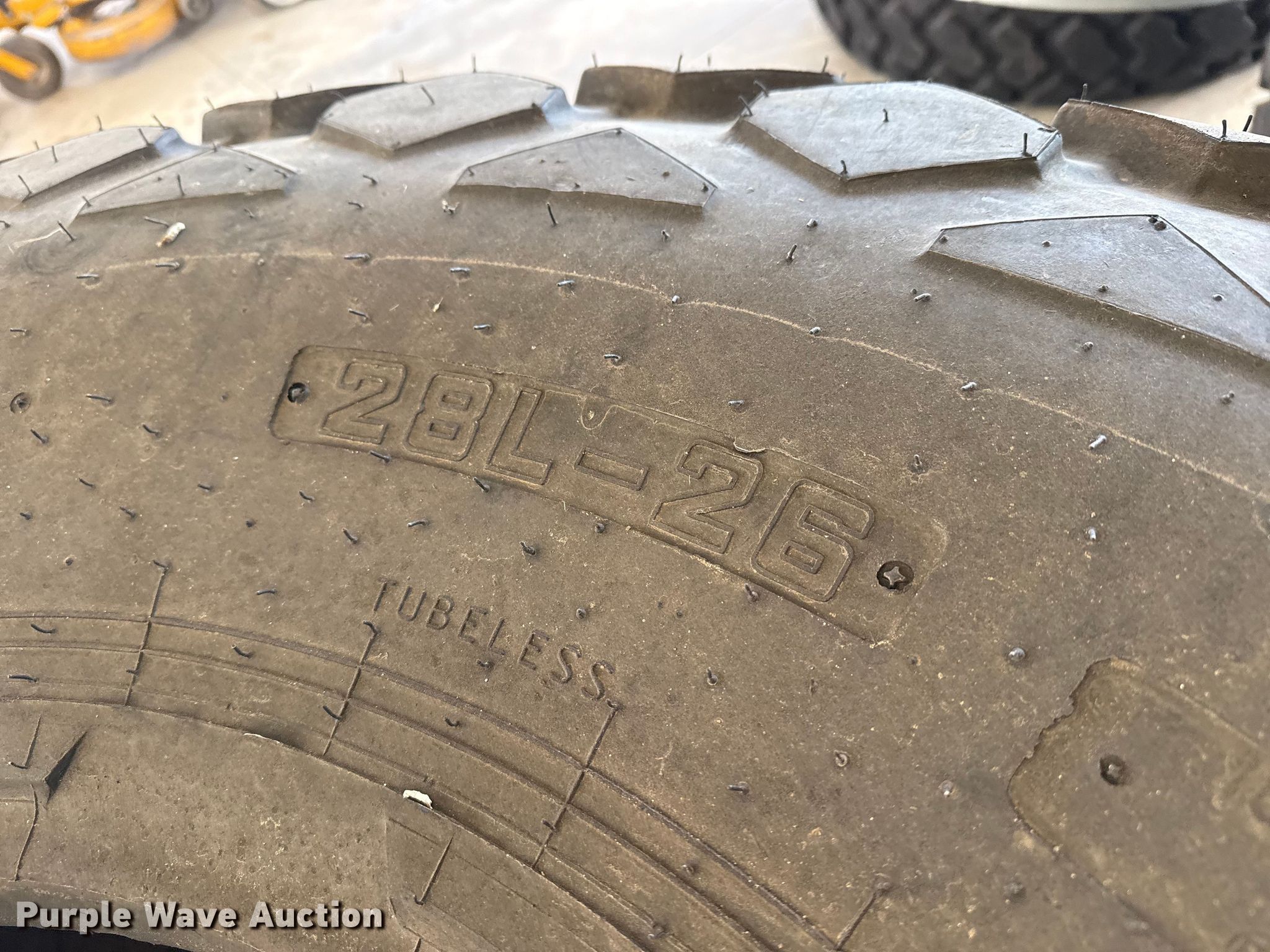 Purple Wave is selling a used Industrial Tires or Tracks in Kansas. This item is a (4) tires with the following: 28L-26, Unused