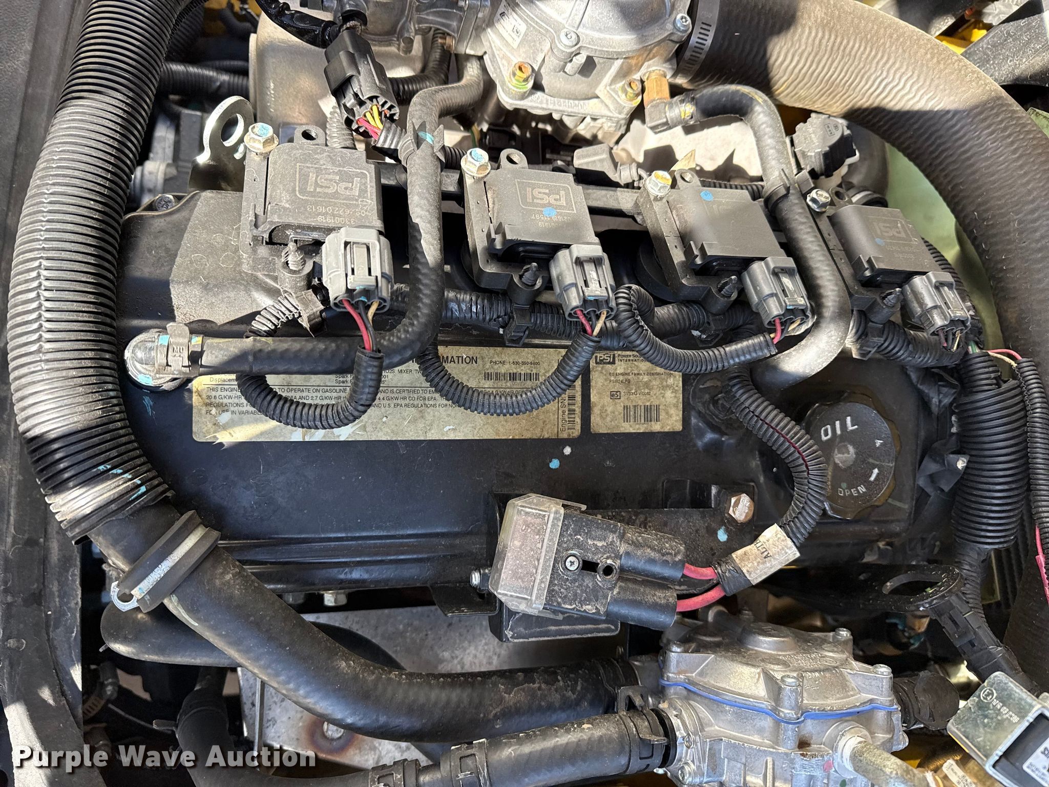 Yale GLC050VXNEAE085 forklift. Hours: 1,952 on meter, Serial: C910V11618T. Engine Cylinders: 4, Fuel type: LPG LP bottle: Not included. Transmission Powershift. Operators station Canopy. Features Maximum lift capacity: 4,650 lbs, Maximum lift height: 195", Mast stages: 3, Side shift, Mast tilt, Fork length: 42". Tires Front: 21x7x15, Rear: 16x5x10&1/2, Solid. Peters Farms. Sublette, KS 67877