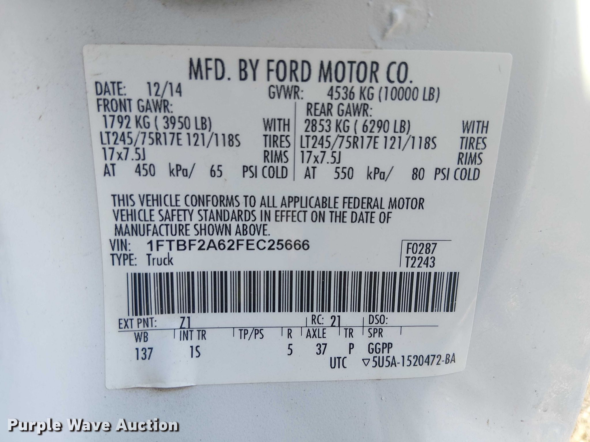 - VIN: 1FTBF2A62FEC25666
