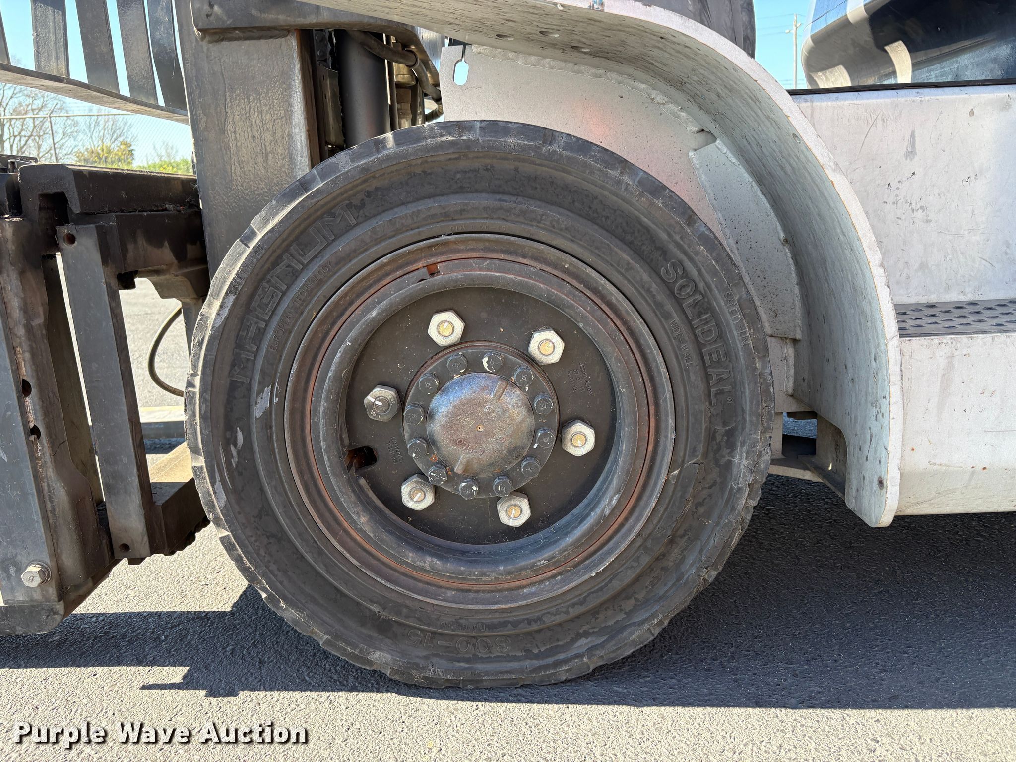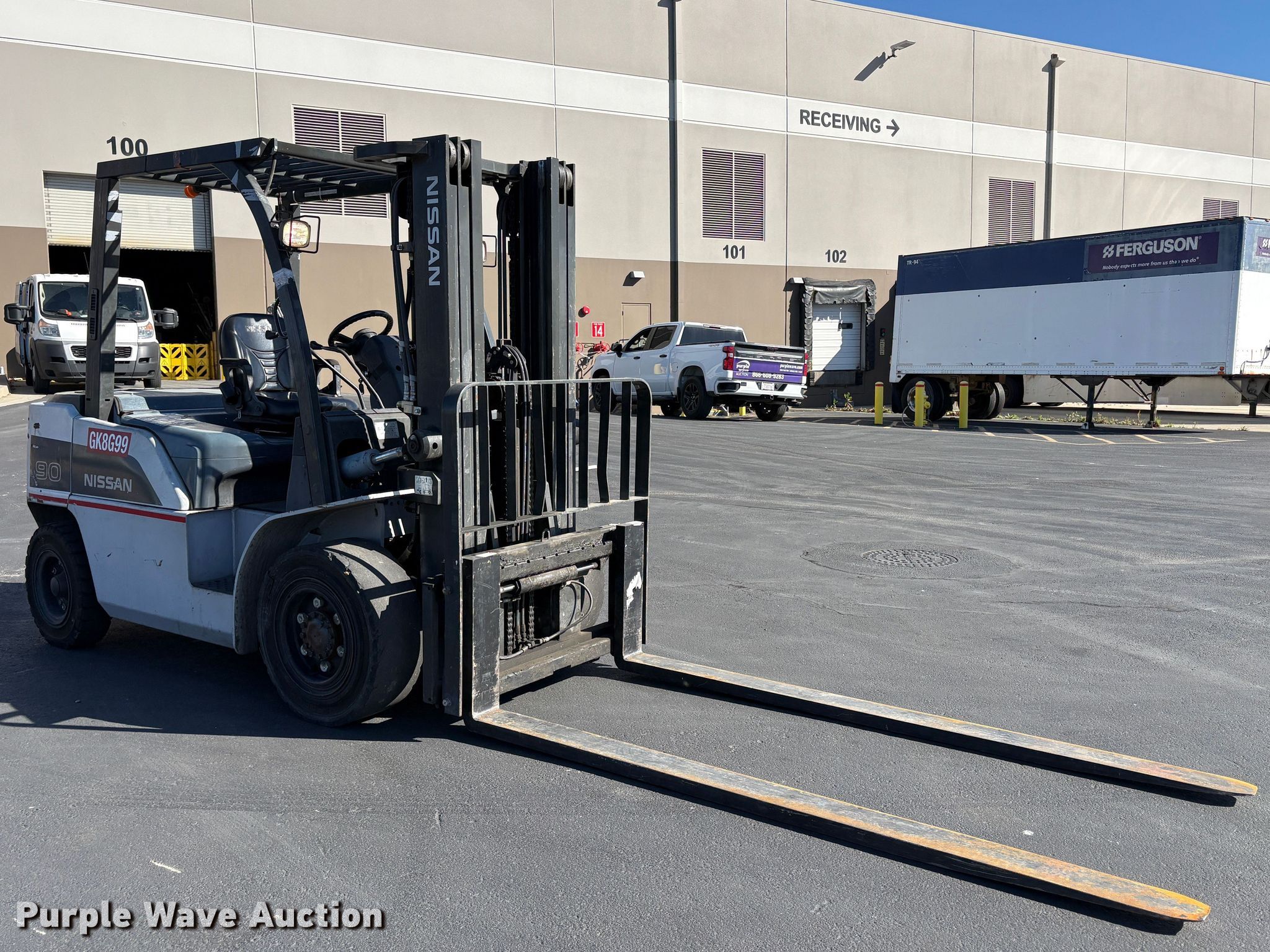 Purple Wave is selling a used Cushion Tire or Pneumatic Forklift in California. This item is a 2011 Nissan PFD90Y forklift with the following: Hours: 1,786 on meter, Serial: W1F4-960159, Unit #: SFS3074