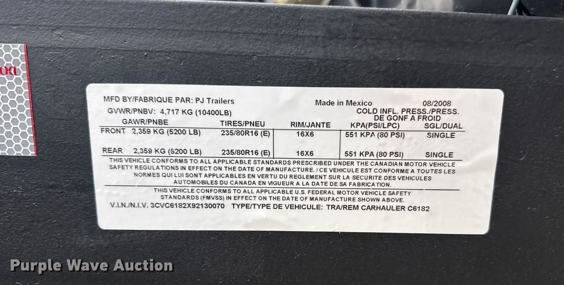 Purple Wave is selling a used Car or Utility Trailer in Oklahoma. This item is a 2008 PJ trailer utility trailer with the following: VIN: 33V66182X92130070