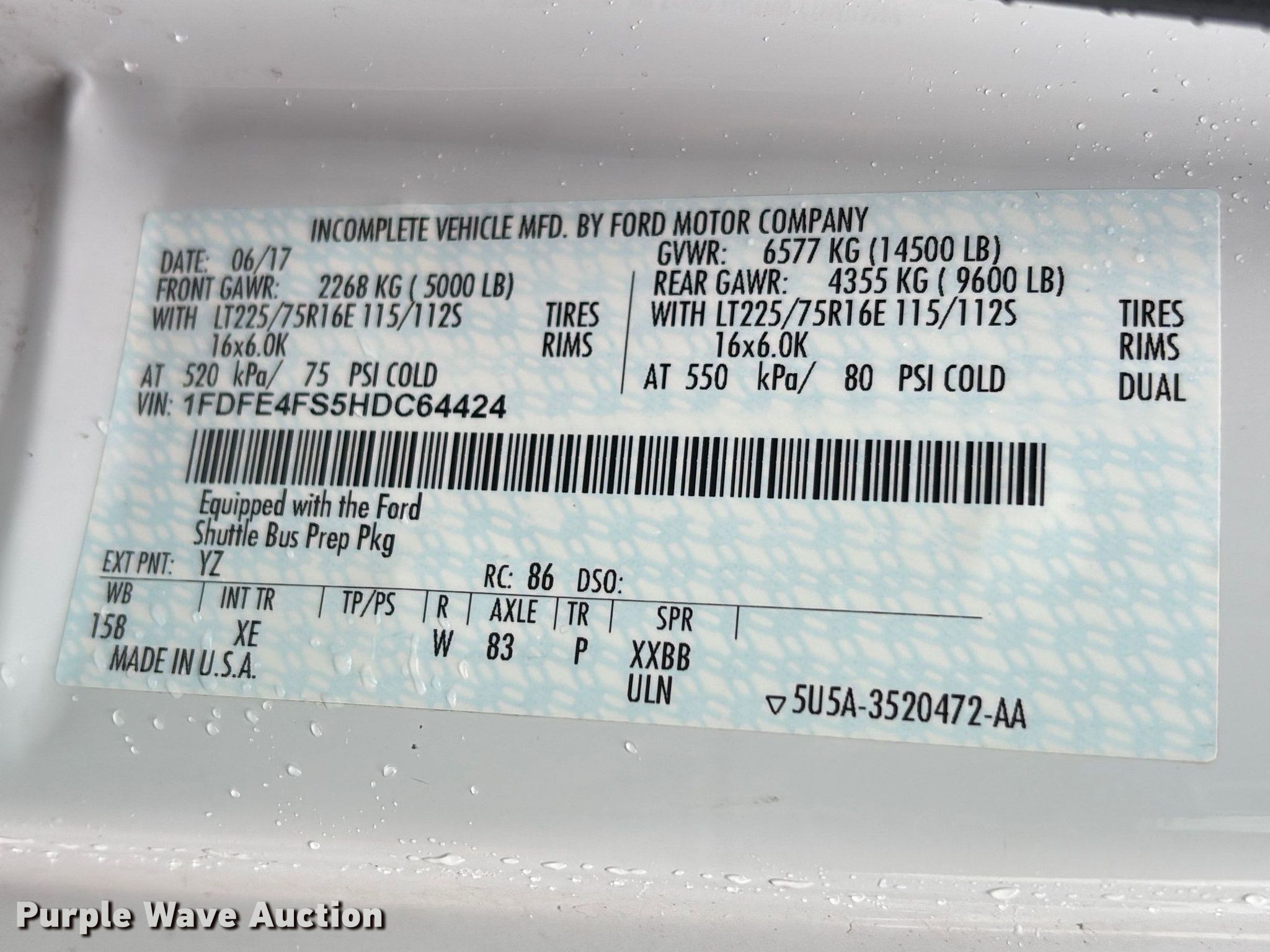 - VIN: 1FDFE4FS5HDC64424