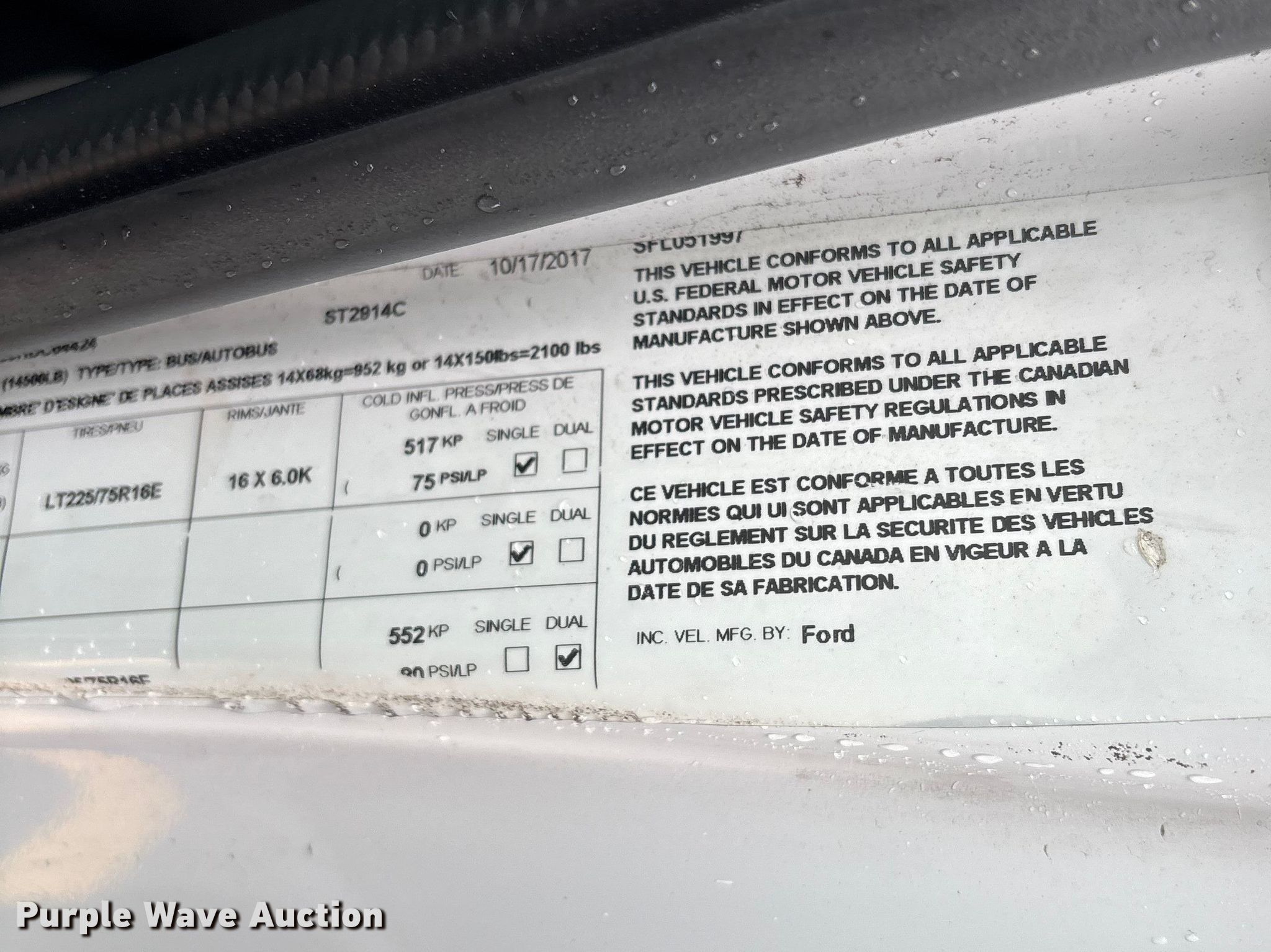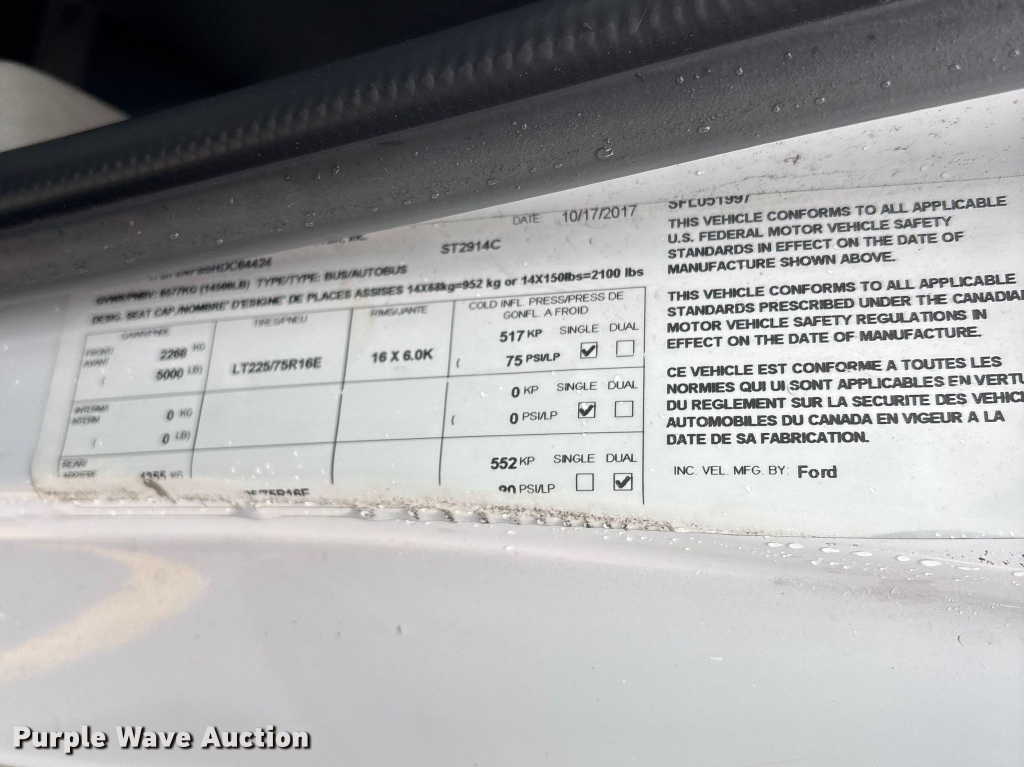 2018 Starcraft Ford E450 Super Duty shuttle bus. Miles: Unknown, VIN: 1FDFE4FS5HDC64424. Engine Ford, Displacement: 6.8L, Cylinders: 10, Fuel type: Gas. Transmission Automatic. Chassis Axles: Single, Suspension: Spring, Brakes: Hydraulic, GVWR: 14,500 lbs. Interior AC, Heat, Electric passenger sliding door, Wheelchair lift, Refrigerator. Tires Size: LT225/75R16 115/112Rv. Notes Dead battery, Engine issues, parts missing , Unit must be towed or hauled , Non-operational unit. Florida title. Mileage has not been verified. Odometer discrepancy will be marked on the title. Title distribution may be delayed up to 30 days from verification of funds. Rush Truck Center LMD. Lyons, IL 60534