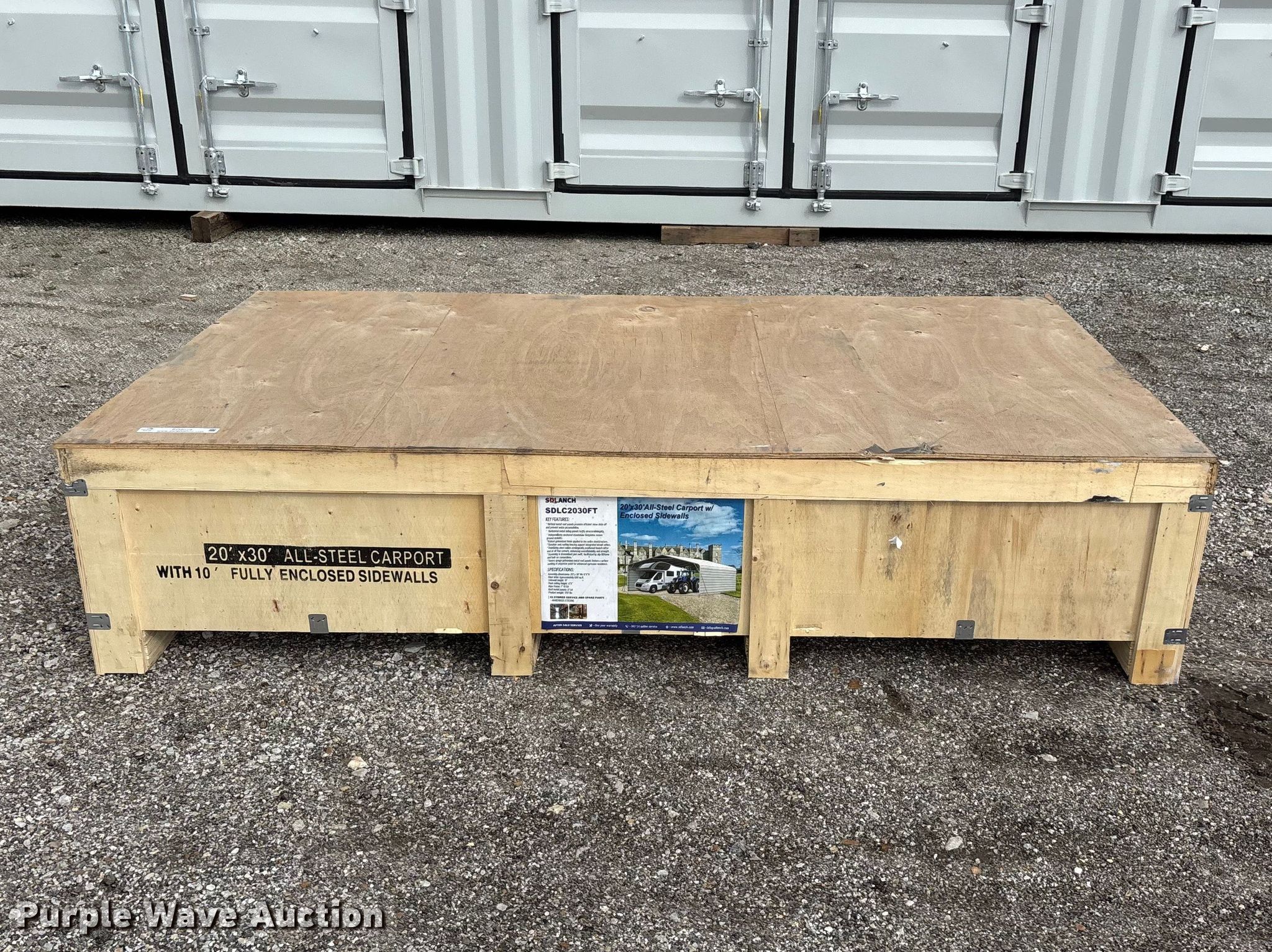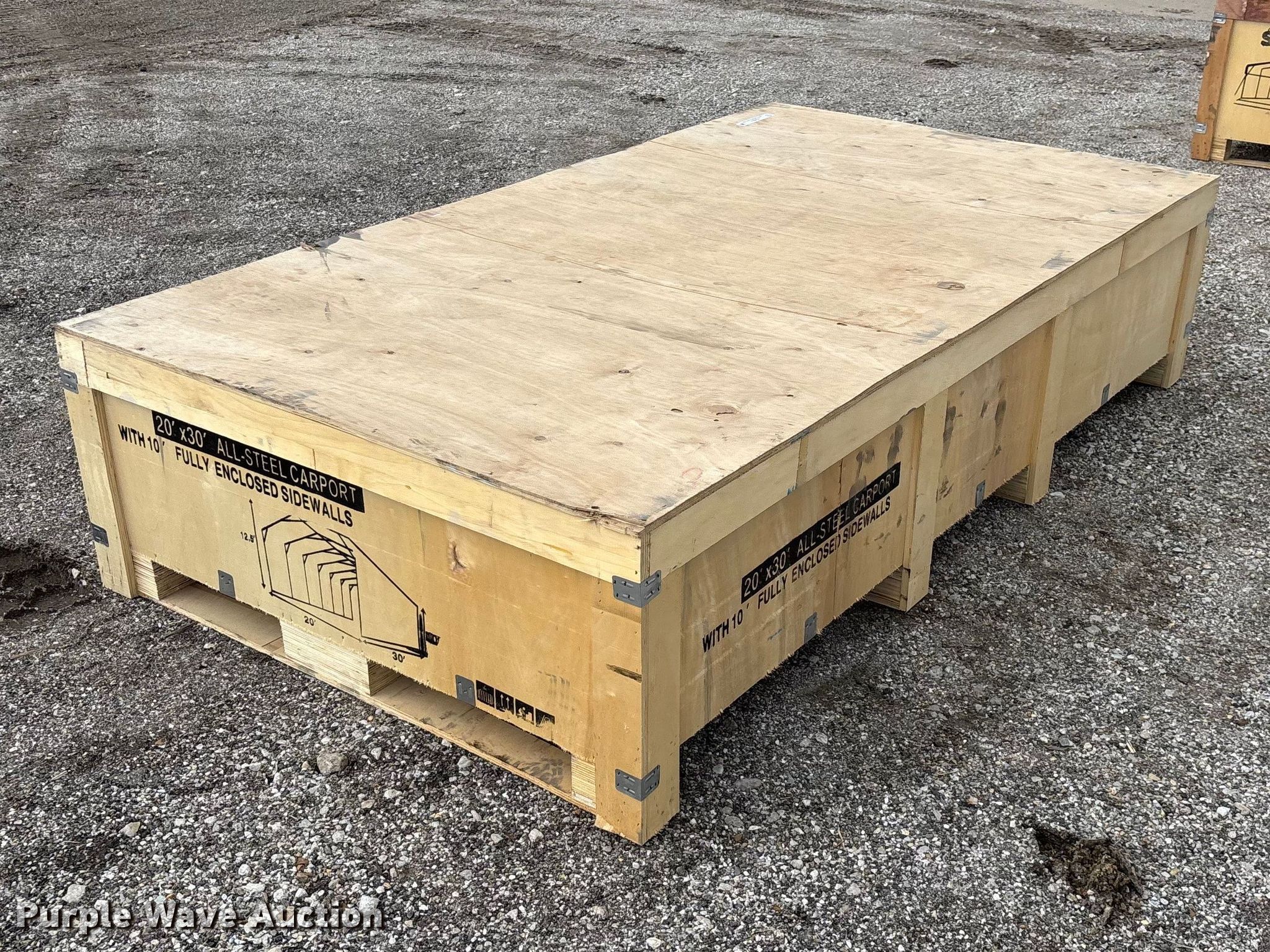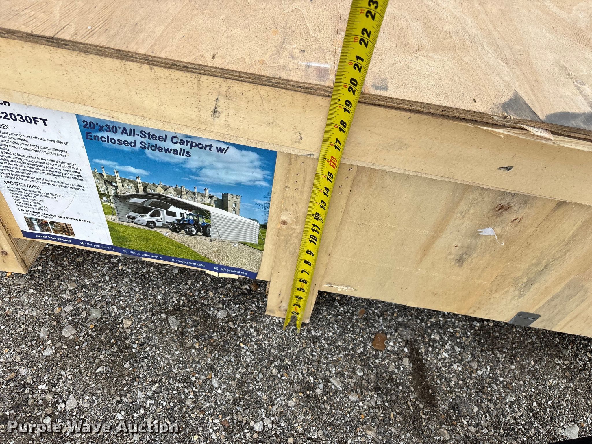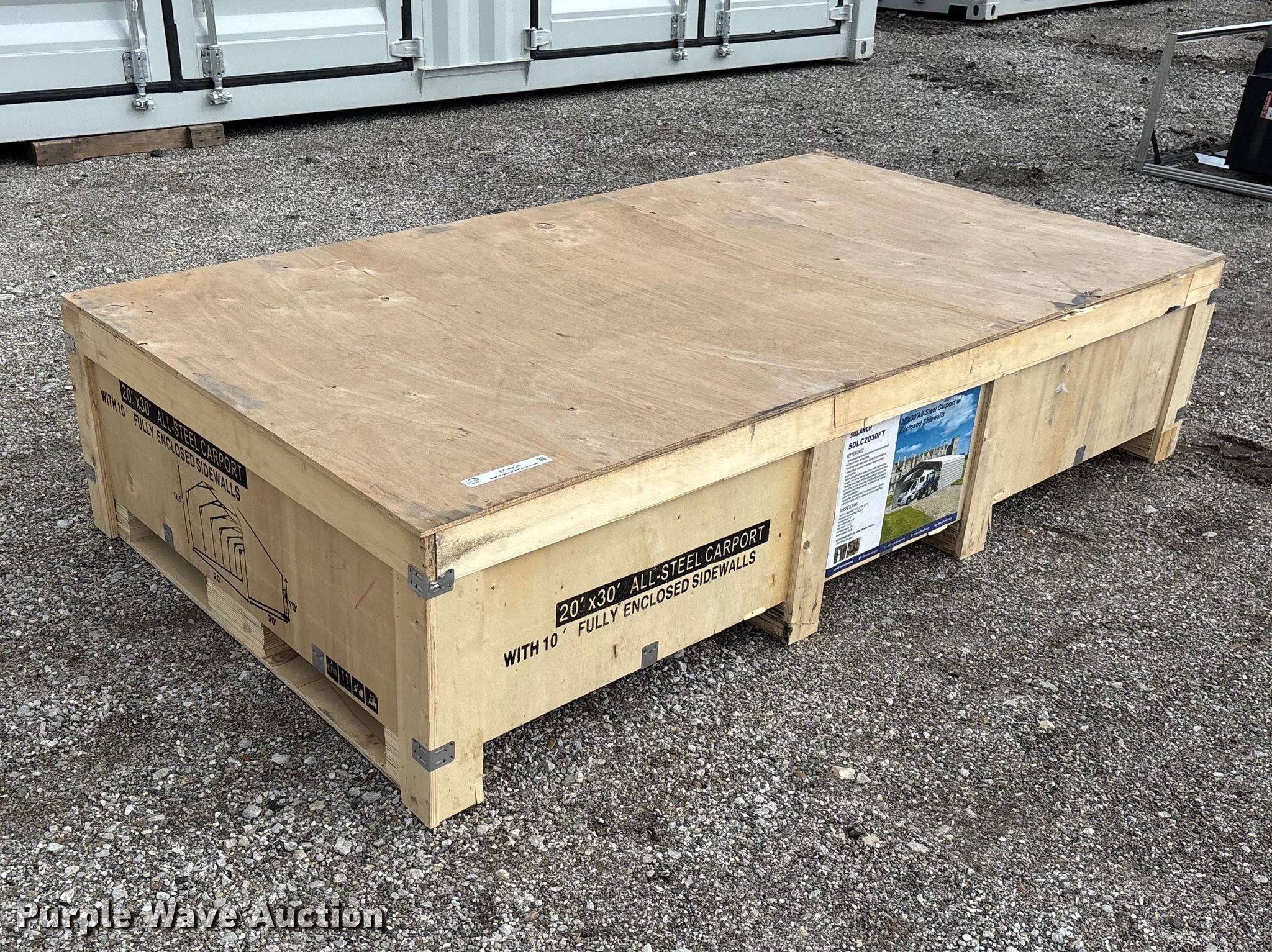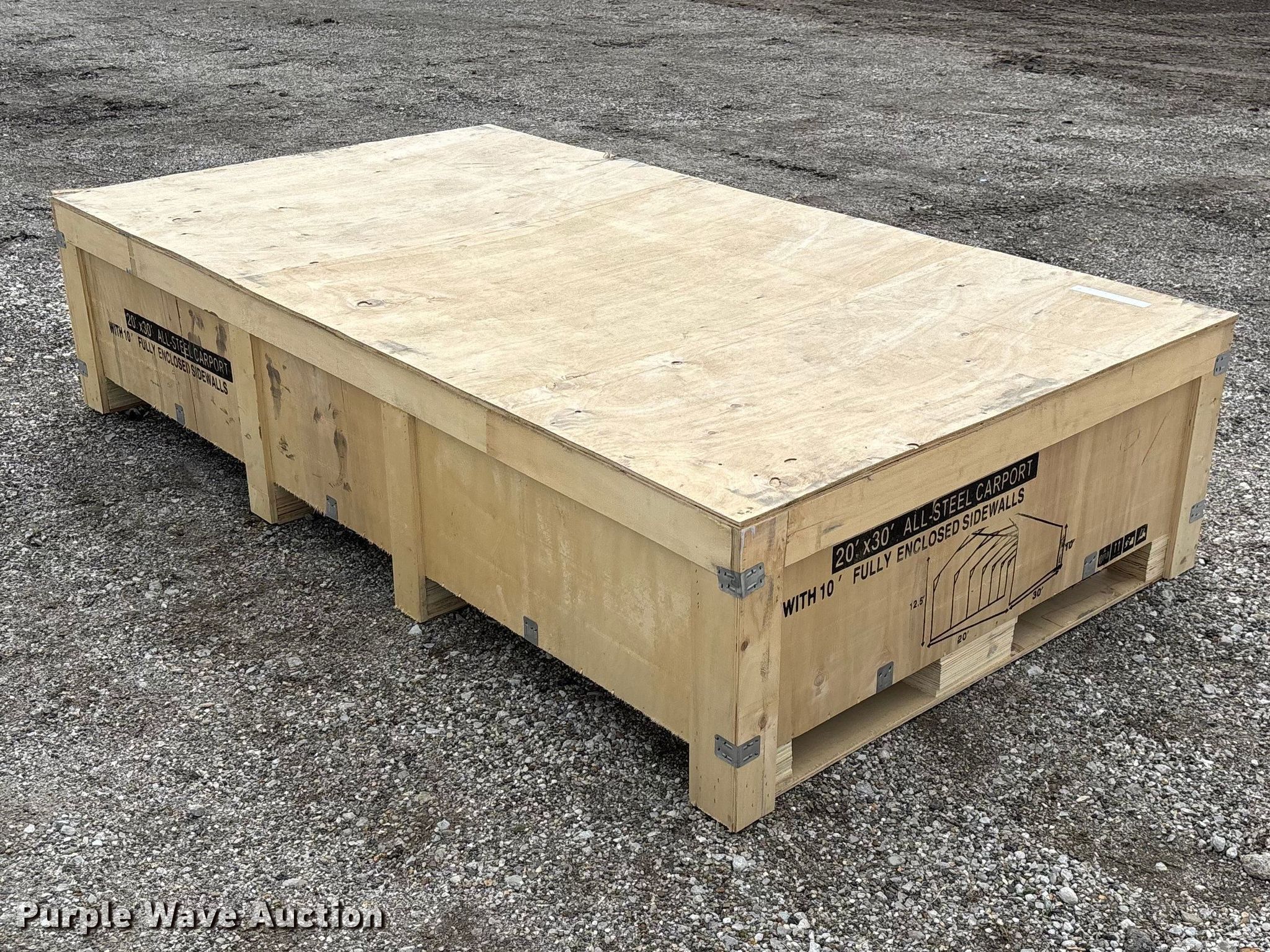 Purple Wave is selling a used Building Materials in Oklahoma. This item is a SDLANCH SDLC2030FT carport with the following: Dimensions: 20' L x 30' W x 12' 6' H, Unused
