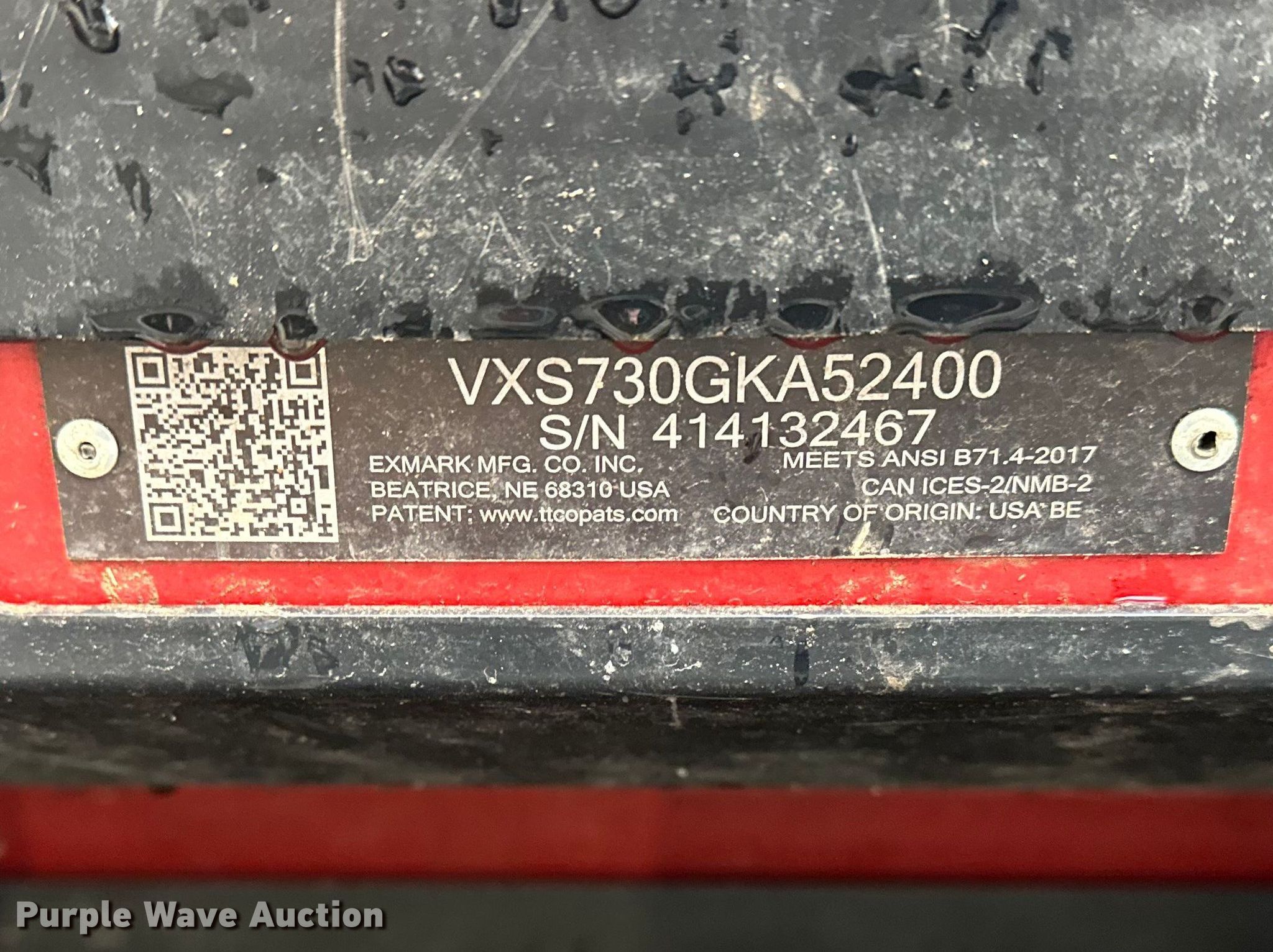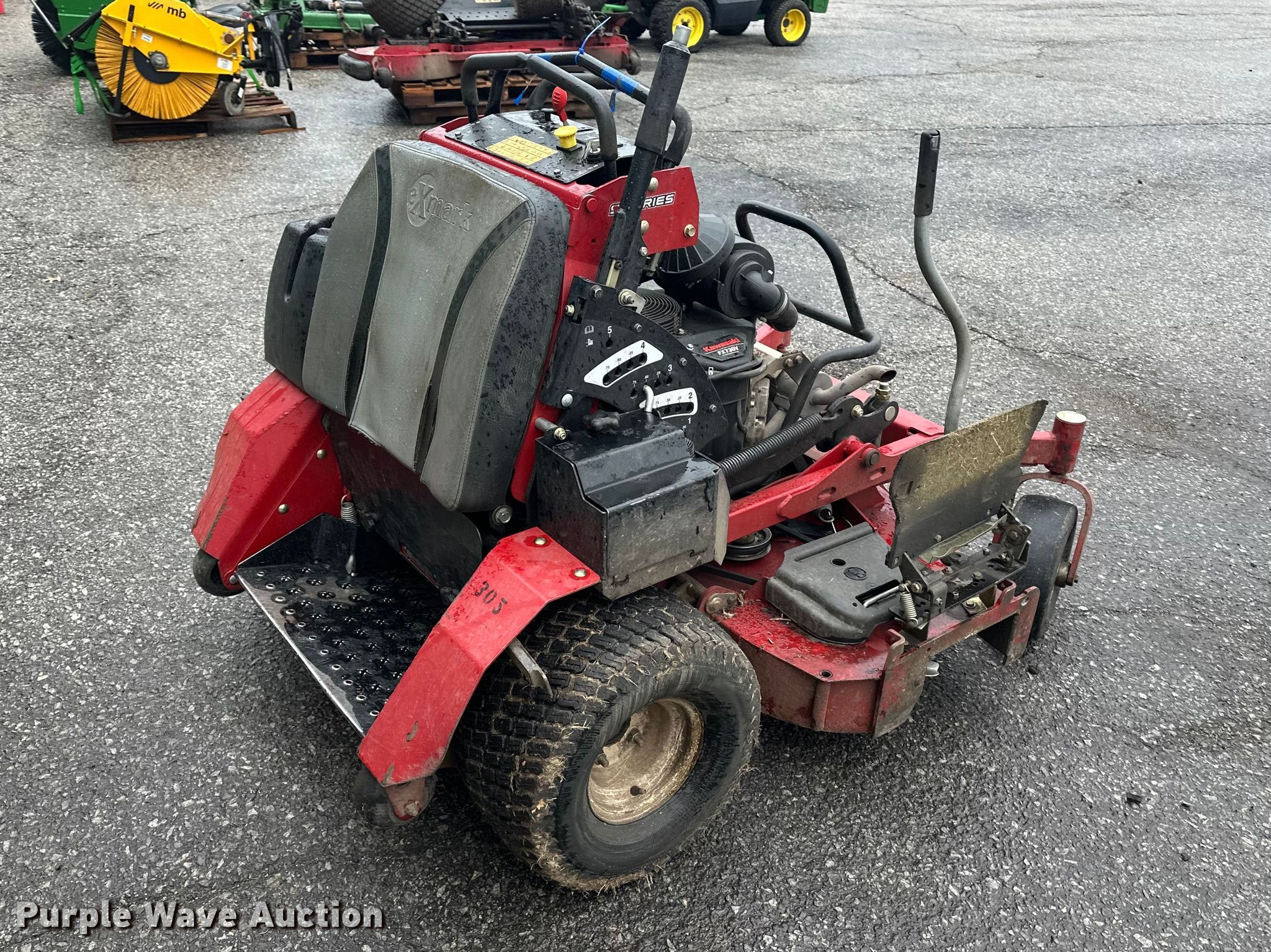 Purple Wave is selling a used Lawn Mower in Kansas. This item is a Exmark Vertex ZTR lawn mower with the following: Hours: 2,392 on meter, Cutting width: 52", Serial: 414132467, Unit #: 305