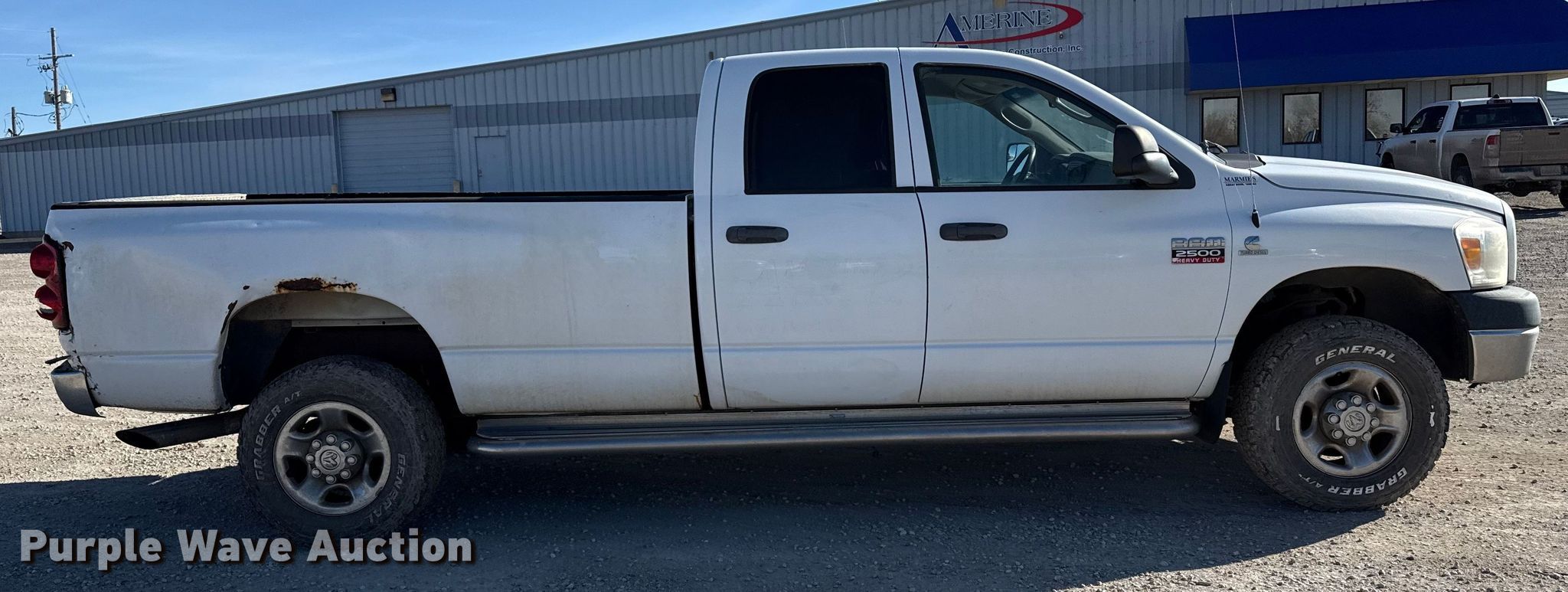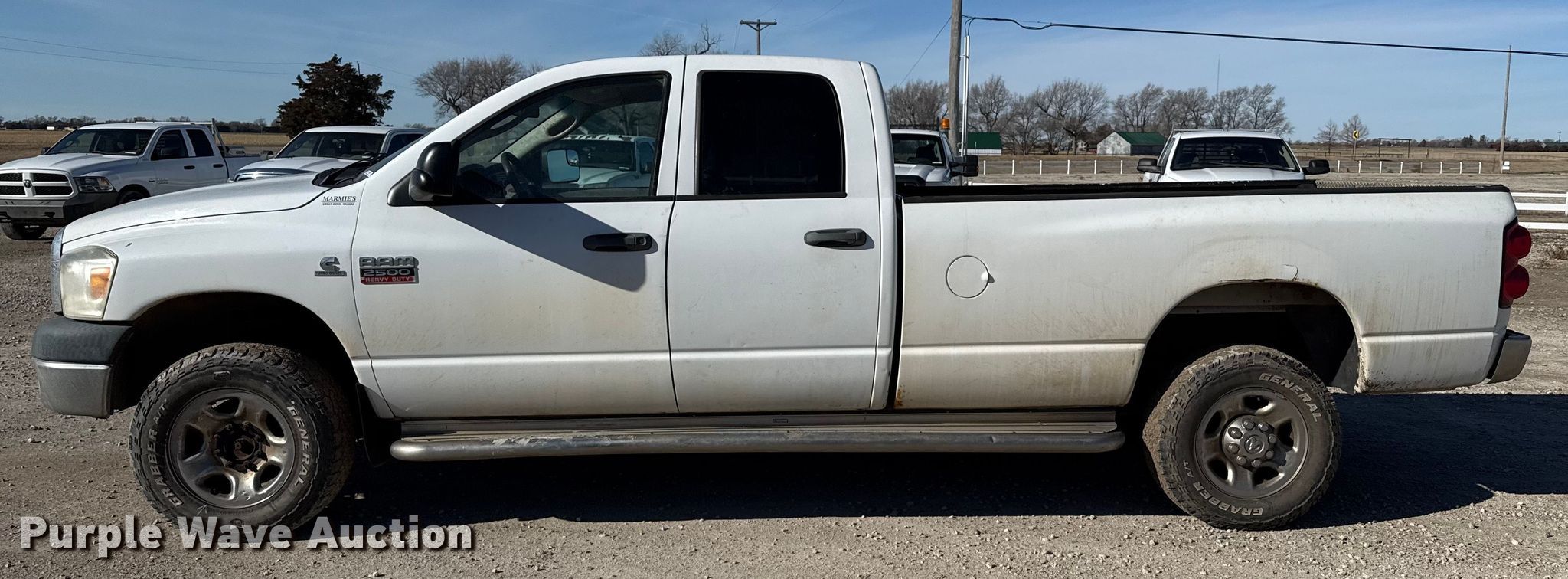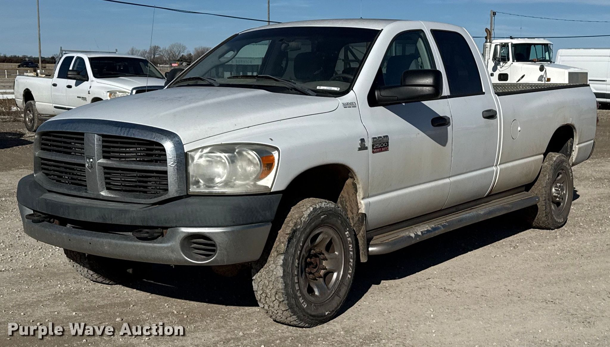 2009 Dodge Ram 2500 Ext. Cab pickup truck. Miles: 334,917 on odometer, VIN: 3D7KS28LX9G529399. Engine Displacement: 6.7L, Cylinders: 6, Fuel type: Diesel. Transmission Automatic, Four wheel drive. Interior AC, Heat, Power windows, Power locks, Cruise control. Tires Size: 265/70R17. Notes Dash warning indicator: Check engine, TPMS, EGR deleted, Transmission issues. Kansas title. Title distribution may be delayed up to 14 days from verification of funds. Amerine Utilities Construction, Inc.. Great Bend, KS 67530