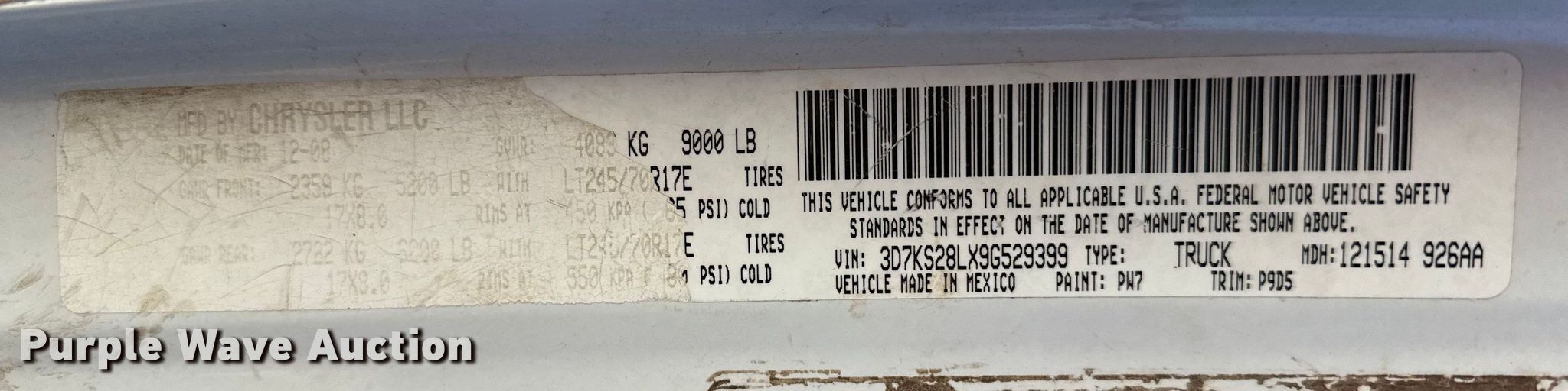- VIN: 3D7KS28LX9G529399