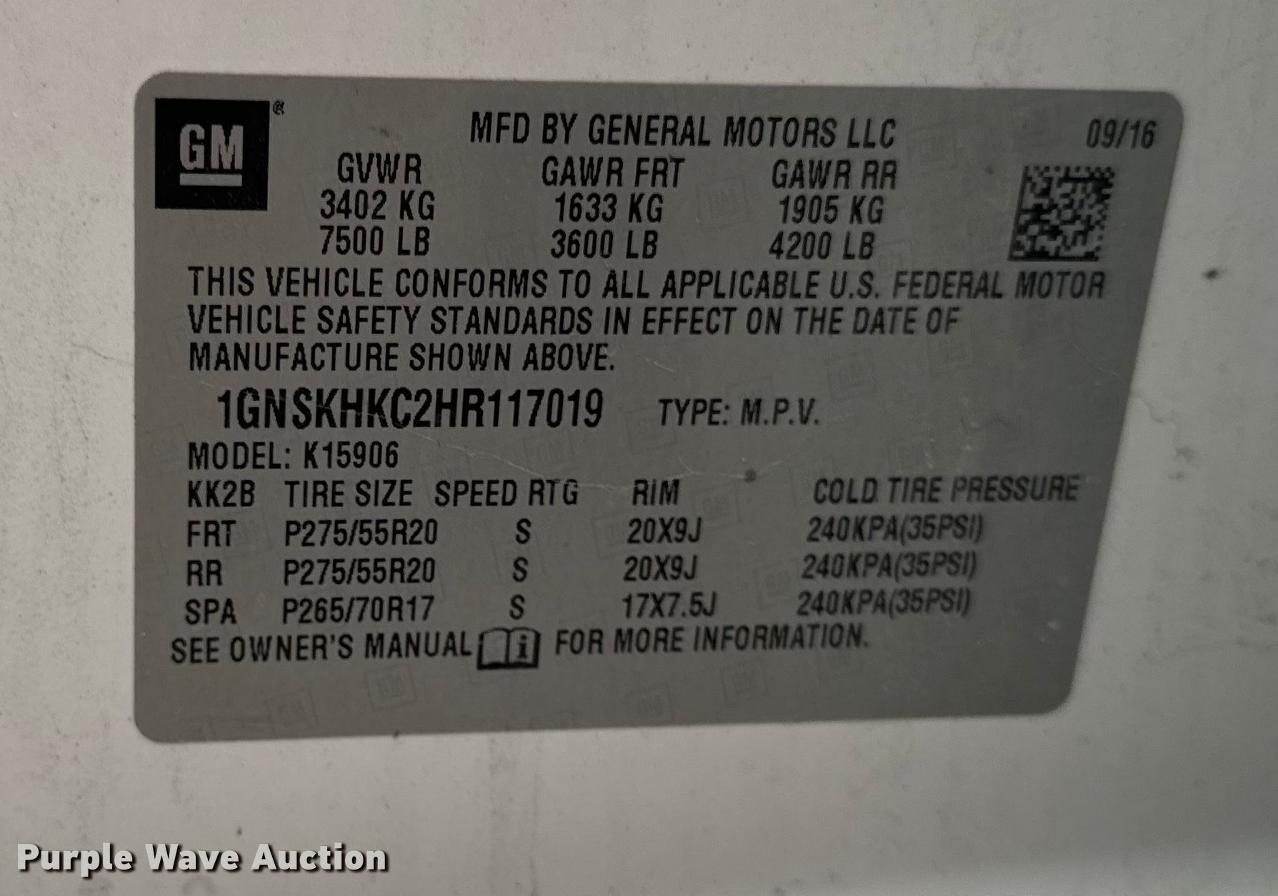 - VIN: 1GNSKHKC2HR117019