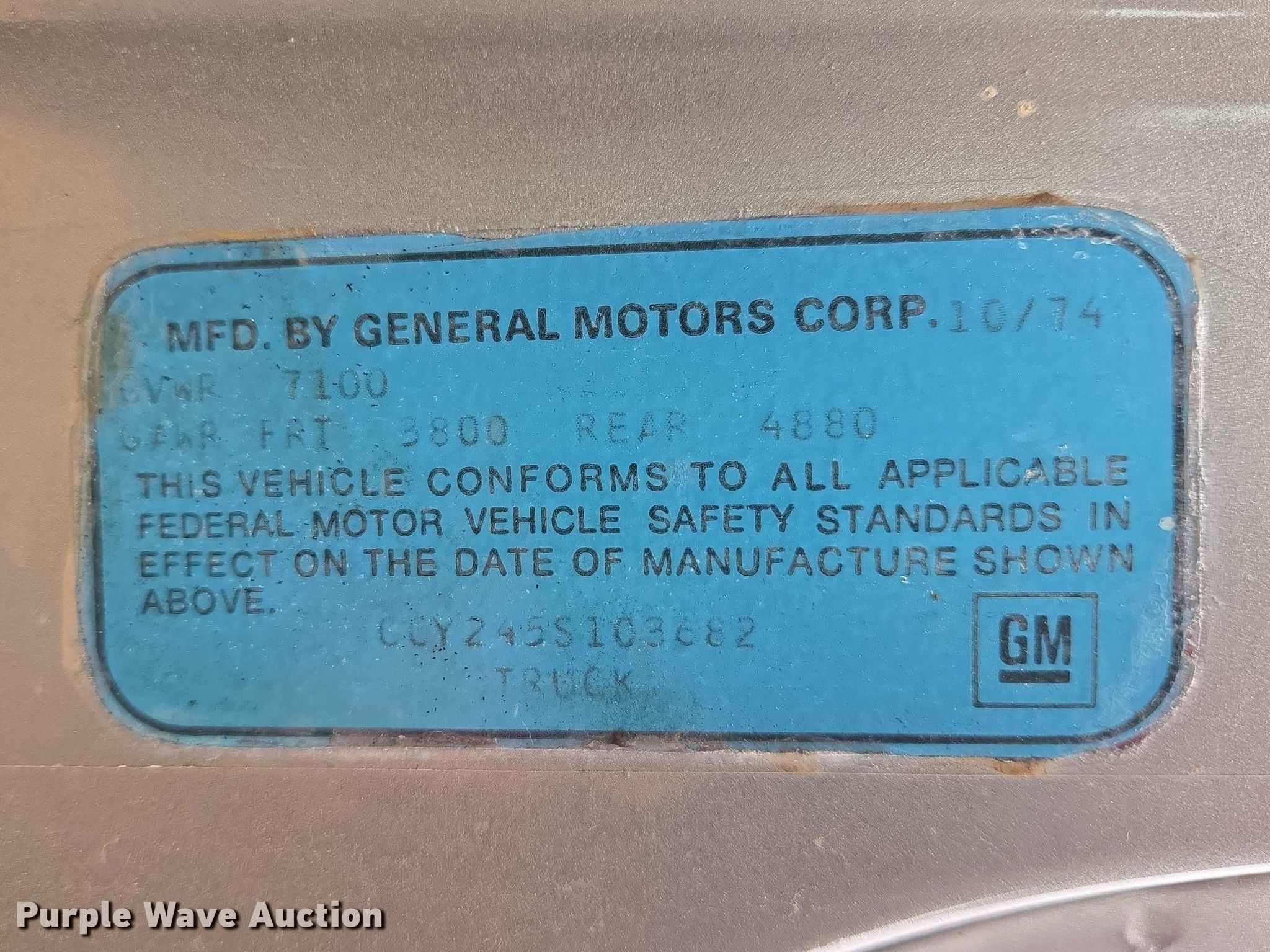 Purple Wave is selling a used 3/4 or 1 Ton Pickup or Van in South Dakota. This item is a 1975 Chevrolet 20 pickup truck with the following: Miles: 61,989 on odometer, Miles: Unknown, VIN: CCY245S103682