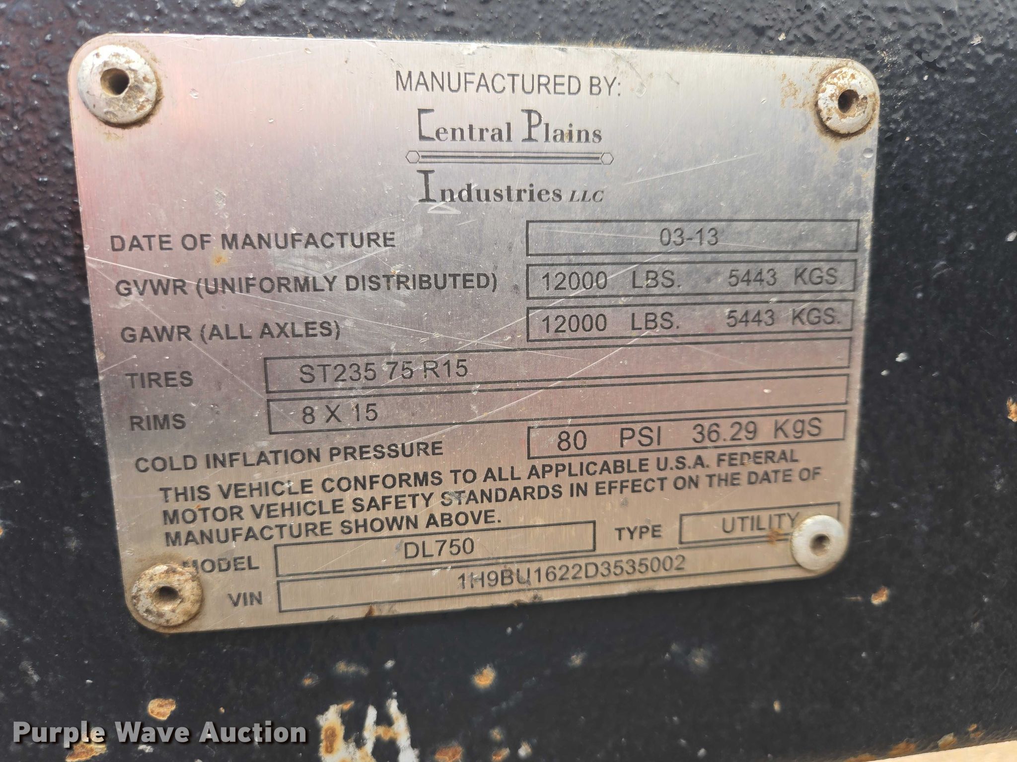Purple Wave is selling a used Fuel and Lube in South Dakota. This item is a 2013 CPI DL750 Refueler fuel trailer with the following: VIN: 1H9BU1622D3535002