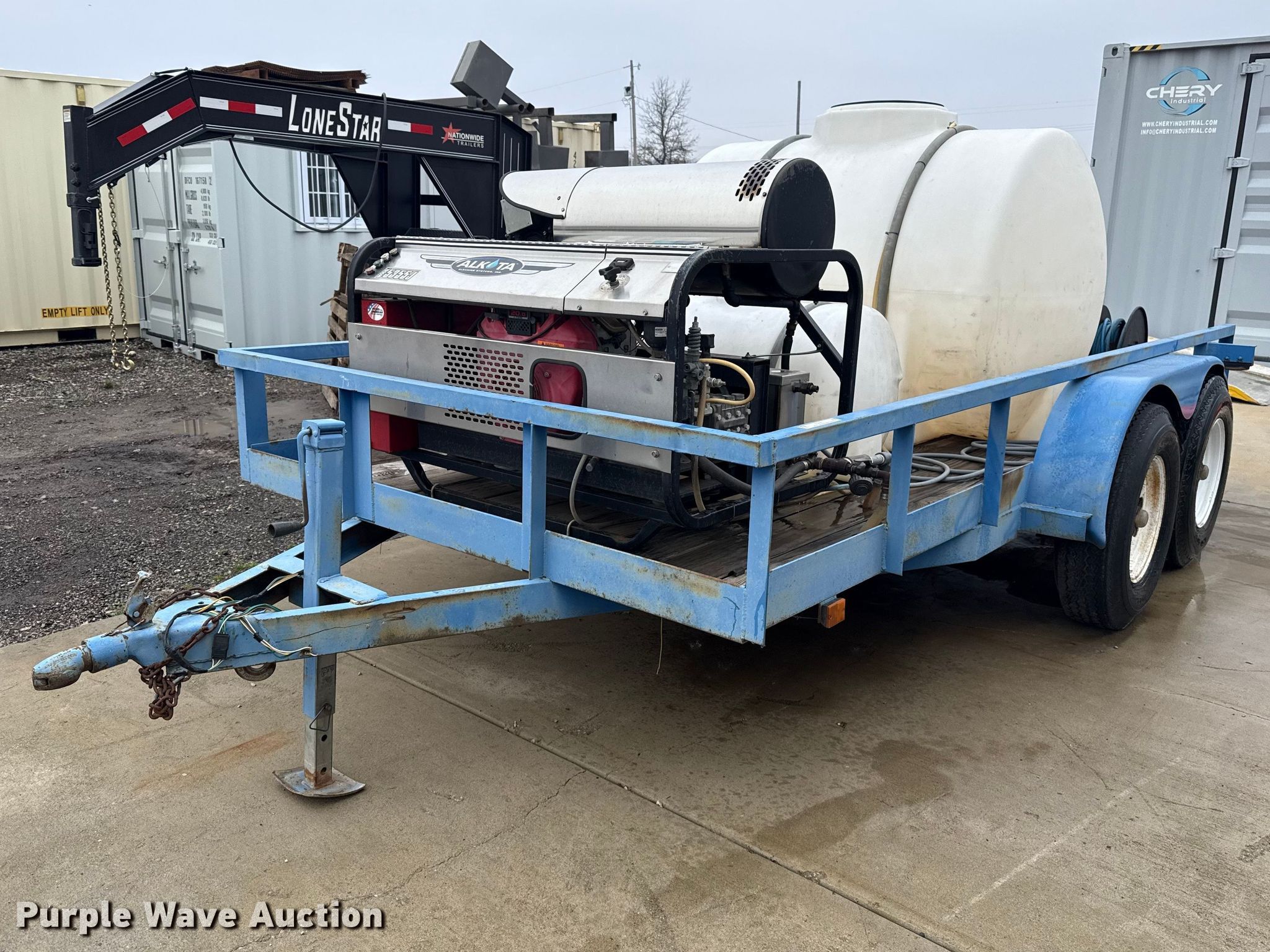 Purple Wave is selling a used Car or Utility Trailer in Oklahoma. This item is a Utility trailer with Alkota pressure washer with the following: Serial: 249341