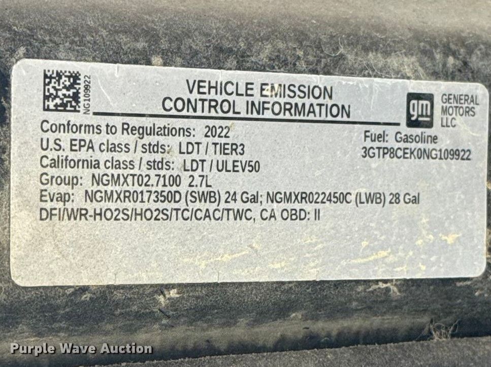 Purple Wave is selling a used 1/2 Ton Pickup or Van in Oklahoma. This item is a 2022 GMC Sierra 1500 Crew Cab pickup truck with the following: Miles: 170,271 on odometer, VIN: 3GTP8CEK0NG109922, Unit #: 109922