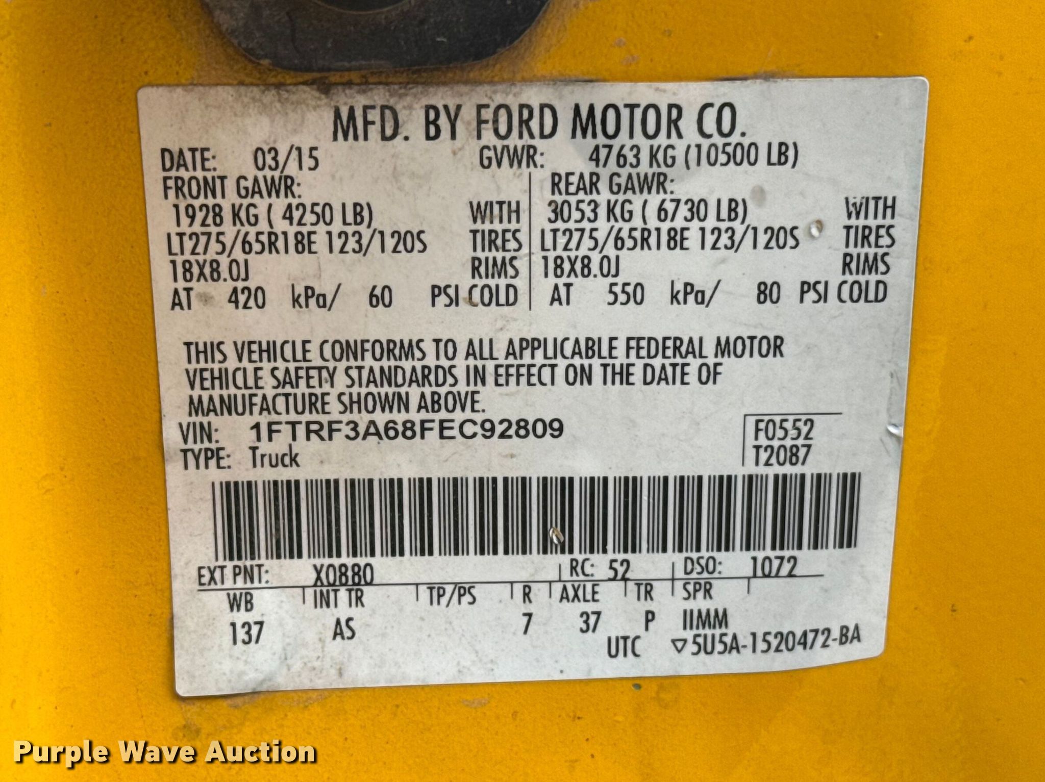 Purple Wave is selling a used 3/4 or 1 Ton Pickup or Van in Oklahoma. This item is a 2015 Ford F350 Super Duty utility bed pickup truck with the following: Miles: 202,678 on odometer, VIN: 1FTRF3A68FEC92809, Unit #: C92809