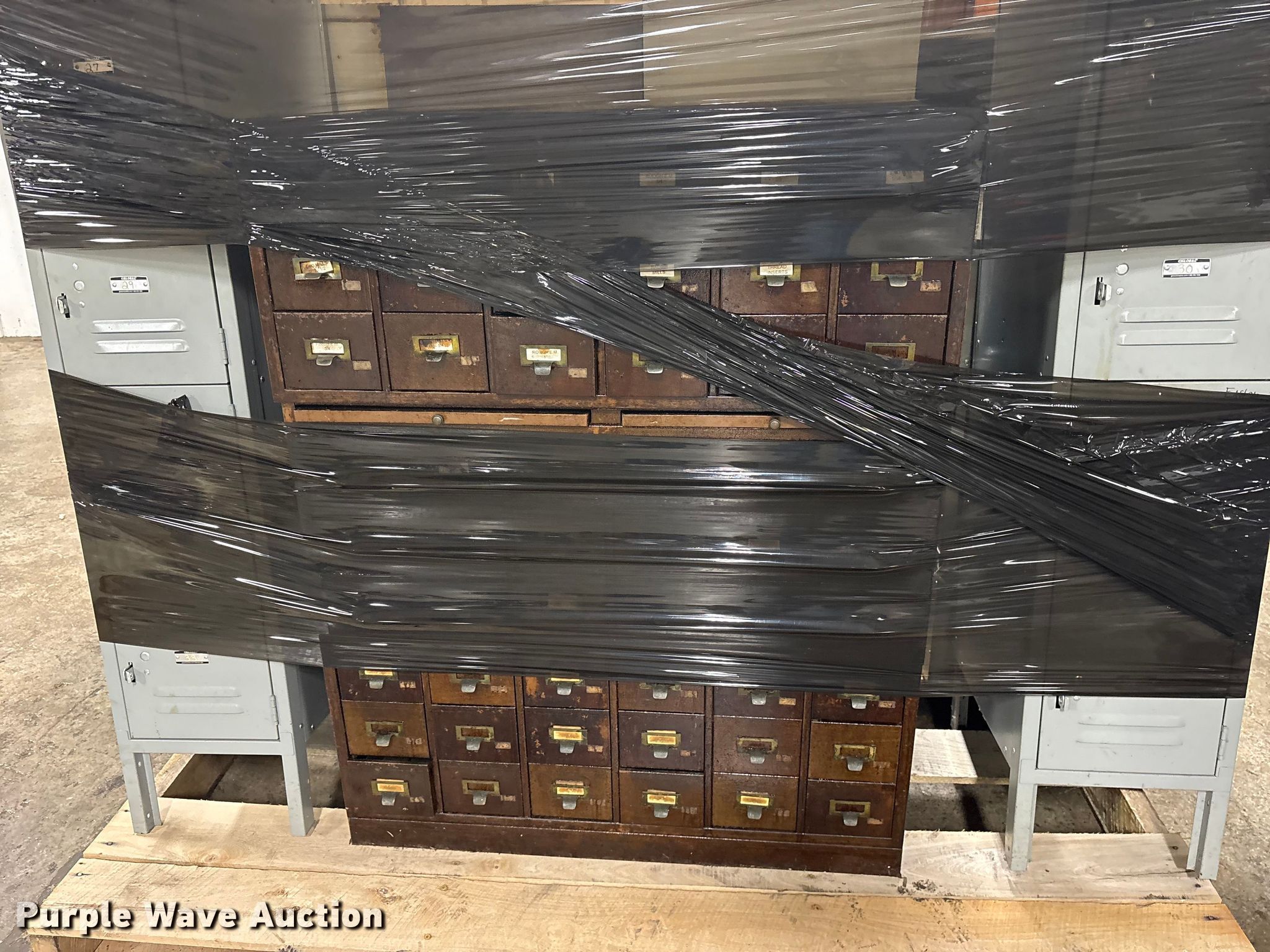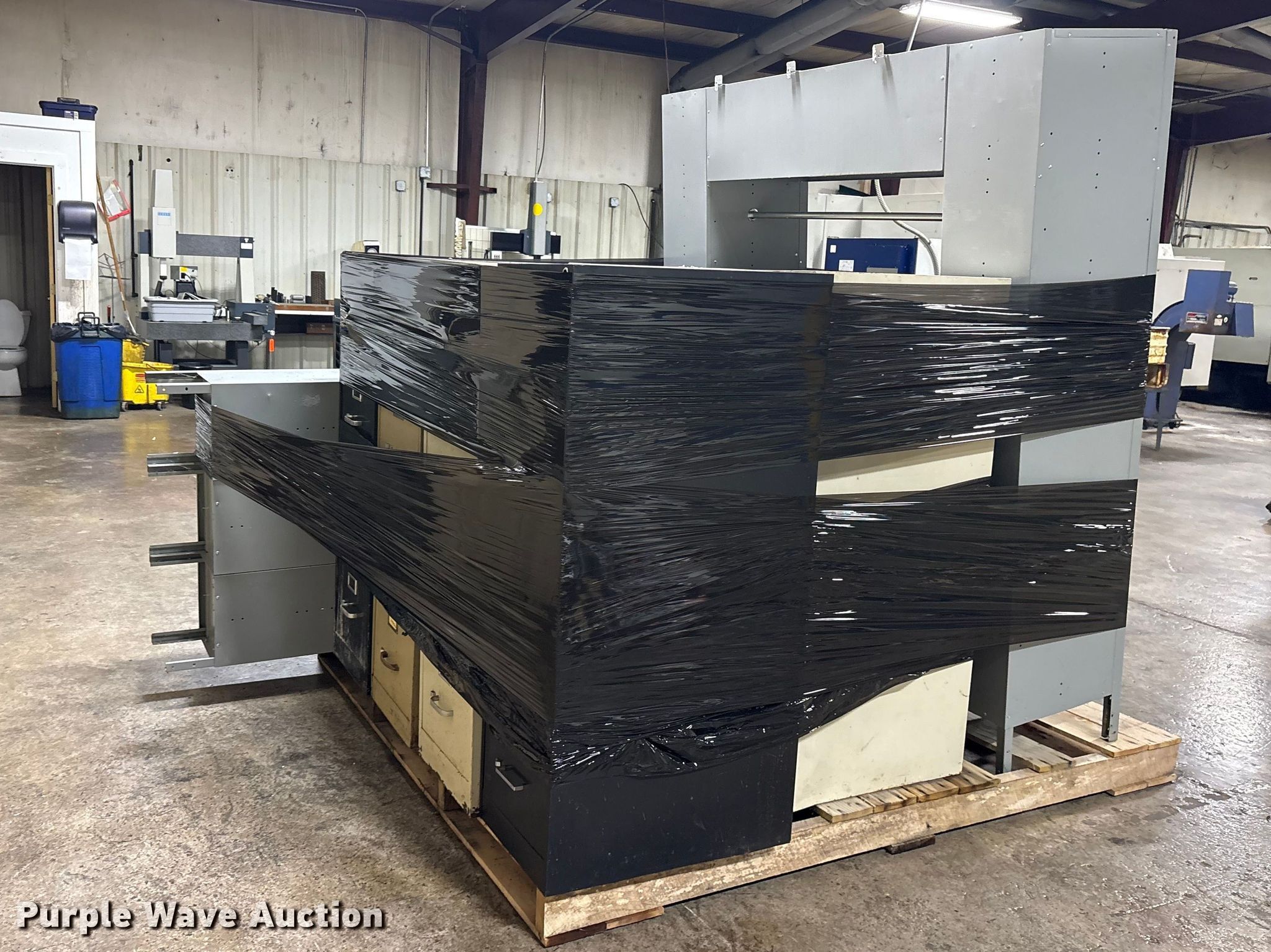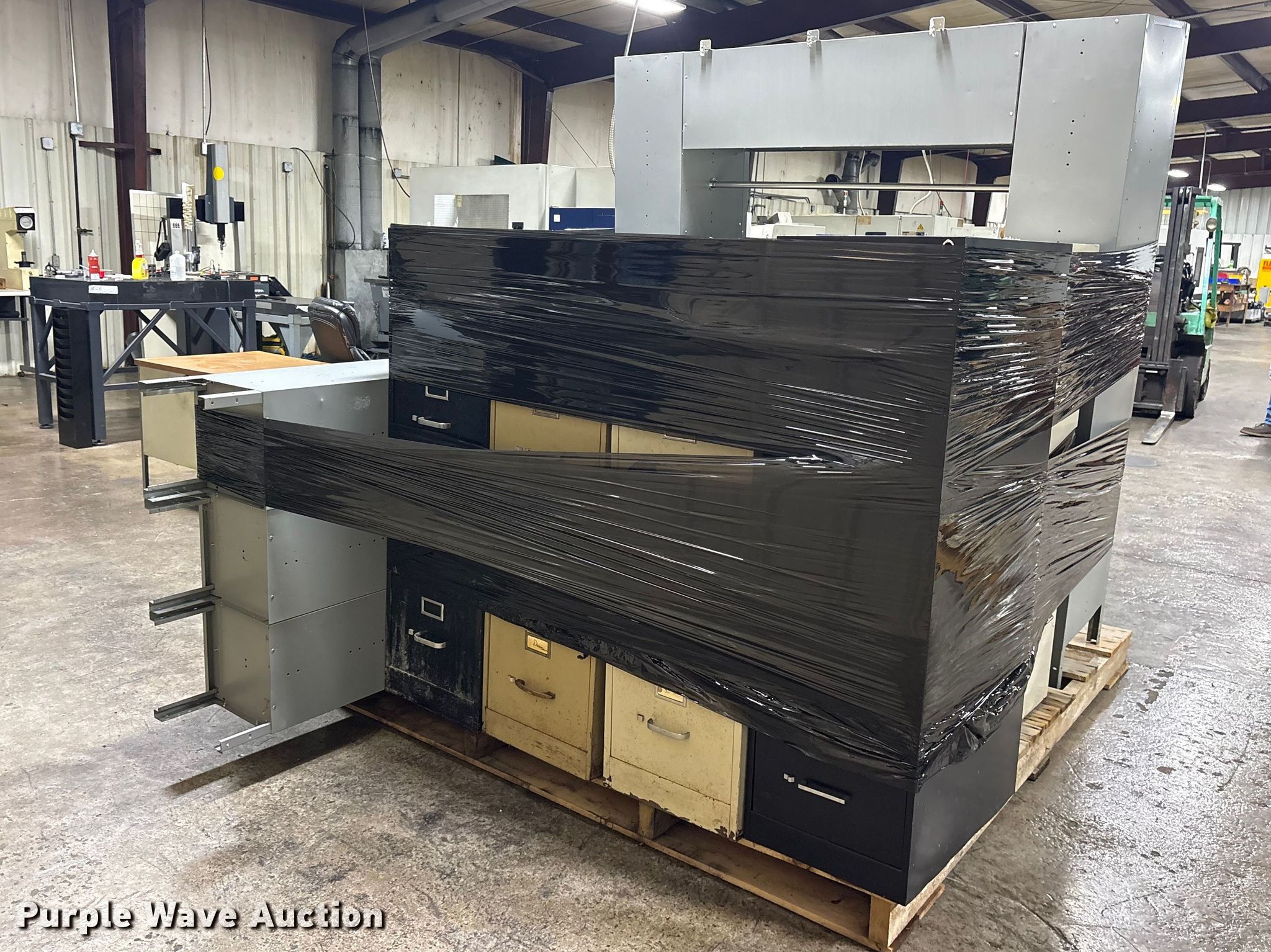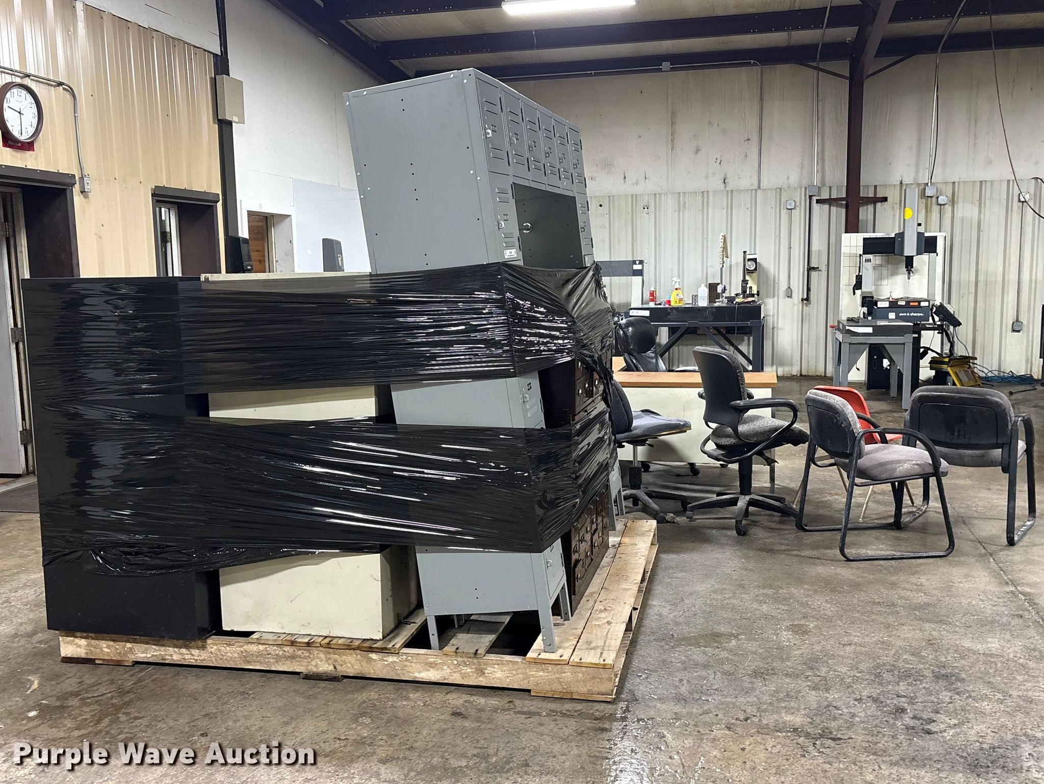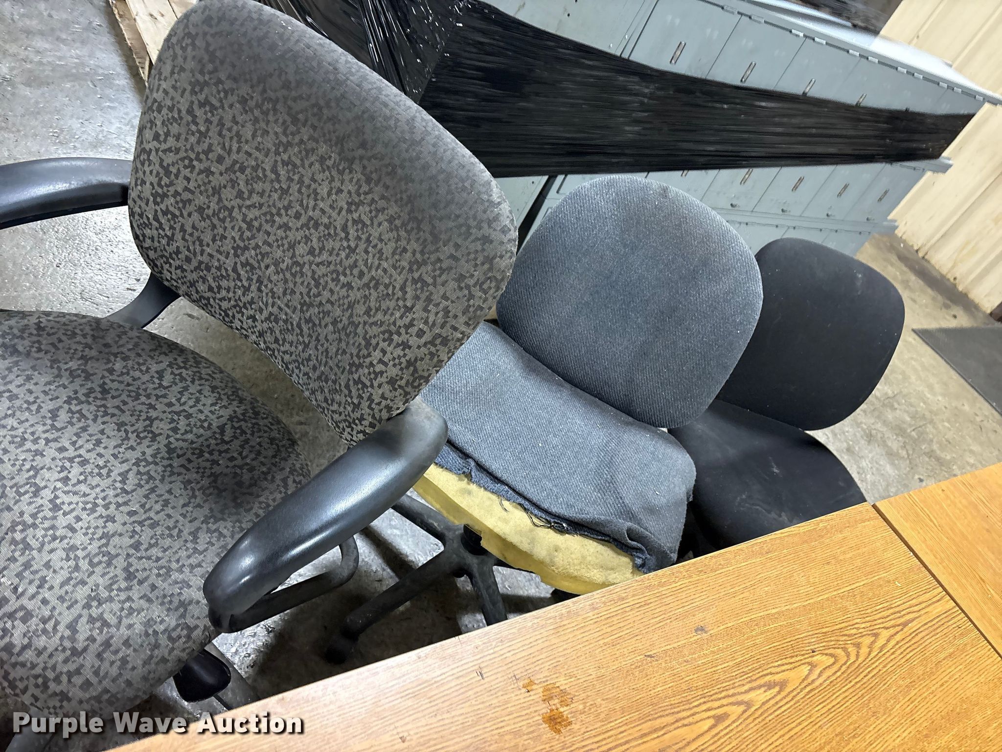 Purple Wave is selling a used Furniture in Oklahoma. This item is a Office furniture with the following: Chairs: 7, Desks: 1, Filing cabinets: 10, Lockers: 2
