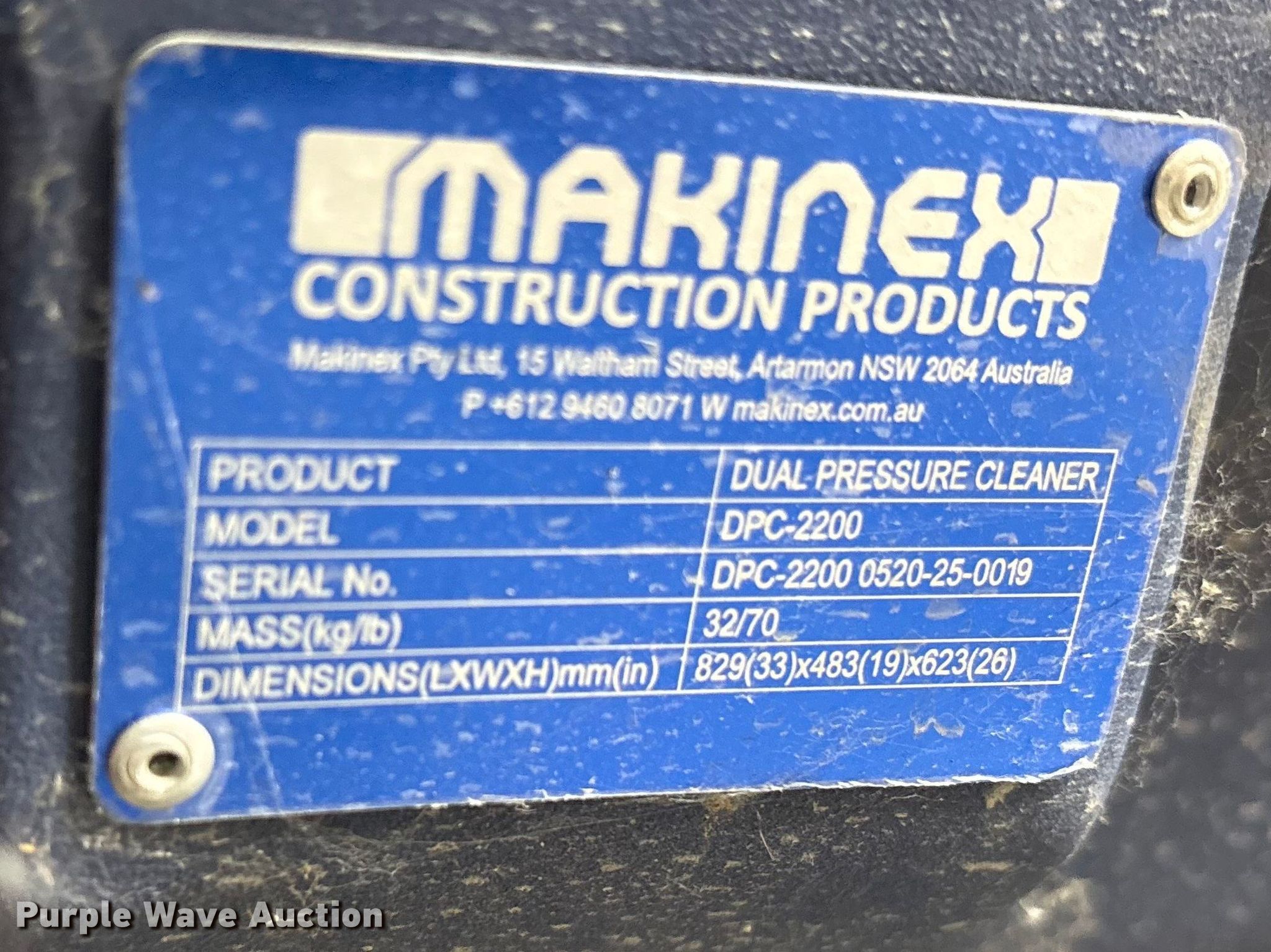 Purple Wave is selling a used Pressure Washer in Texas. This item is a 2020 Makinex DPC-2200 pressure washer with the following: Serial: DPC-2200-0520-25-0019