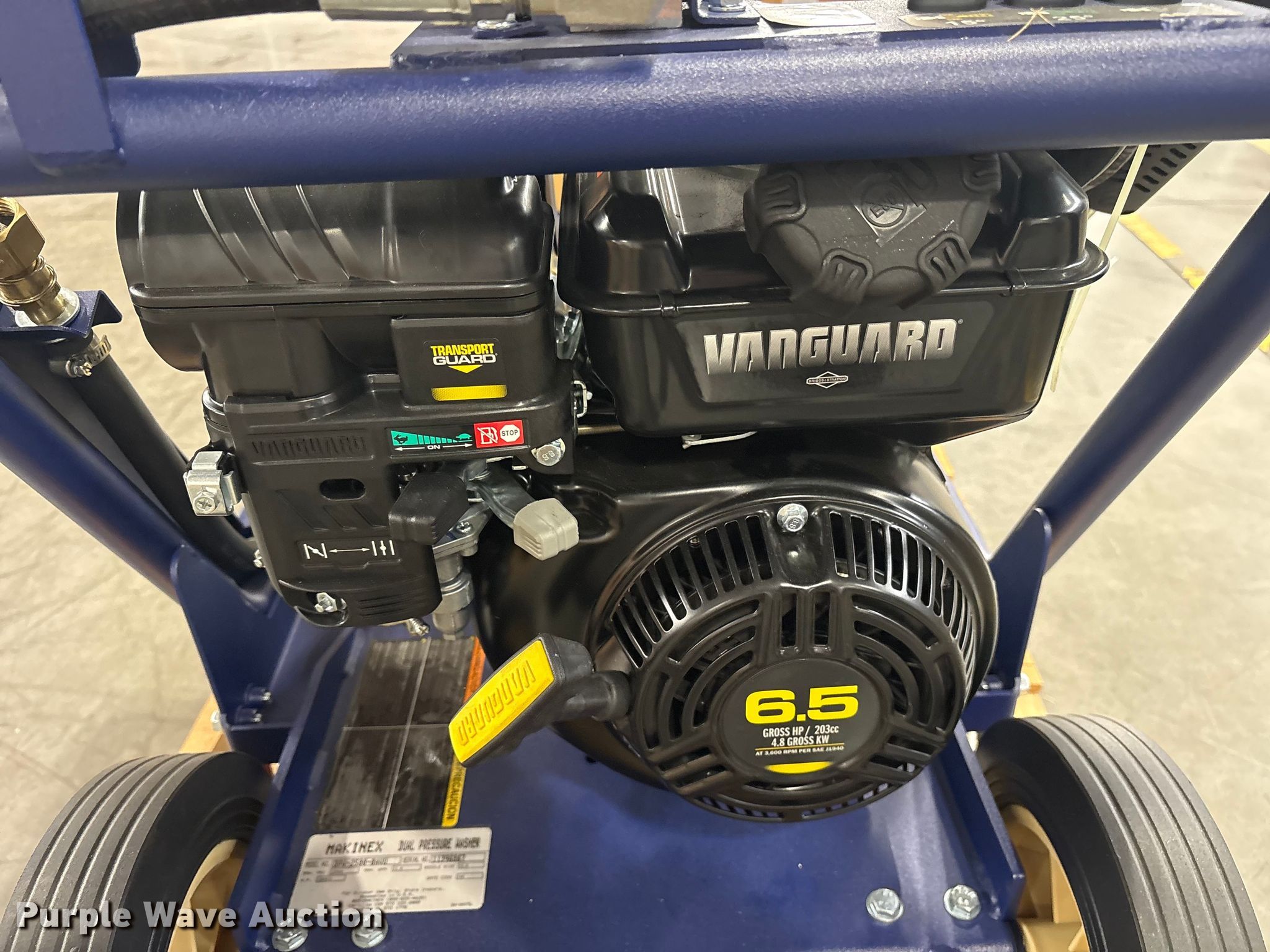 2021 Makinex DPW-2500-0AVU pressure washer. Serial: 11396867. Engine Briggs & Stratton Vanguard, Displacement: 203cc, Cylinders: 1, Fuel type: Gas. Features Rotary head: 20", PSI: 2,500, GPM: 2.5. Notes Unused. Makinex. Mansfield, TX 76063