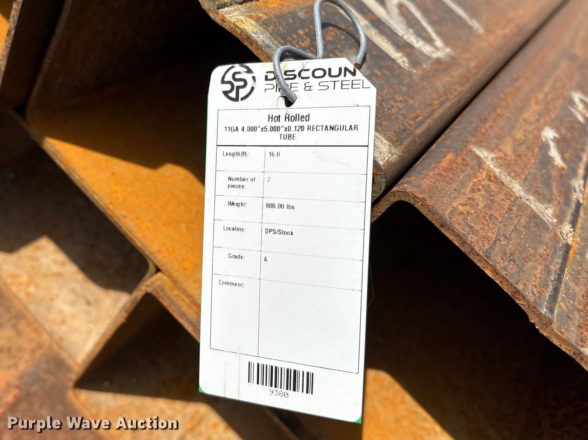 (23) 11 gauge galvanized tubing. Unit #: 9379 and 9380. Features 4" x 5", Length: 16', Total linear feet: 368, Weight: 2,630 lbs, Hot rolled. Discount Pipe & Steel. Pickton, TX 75471