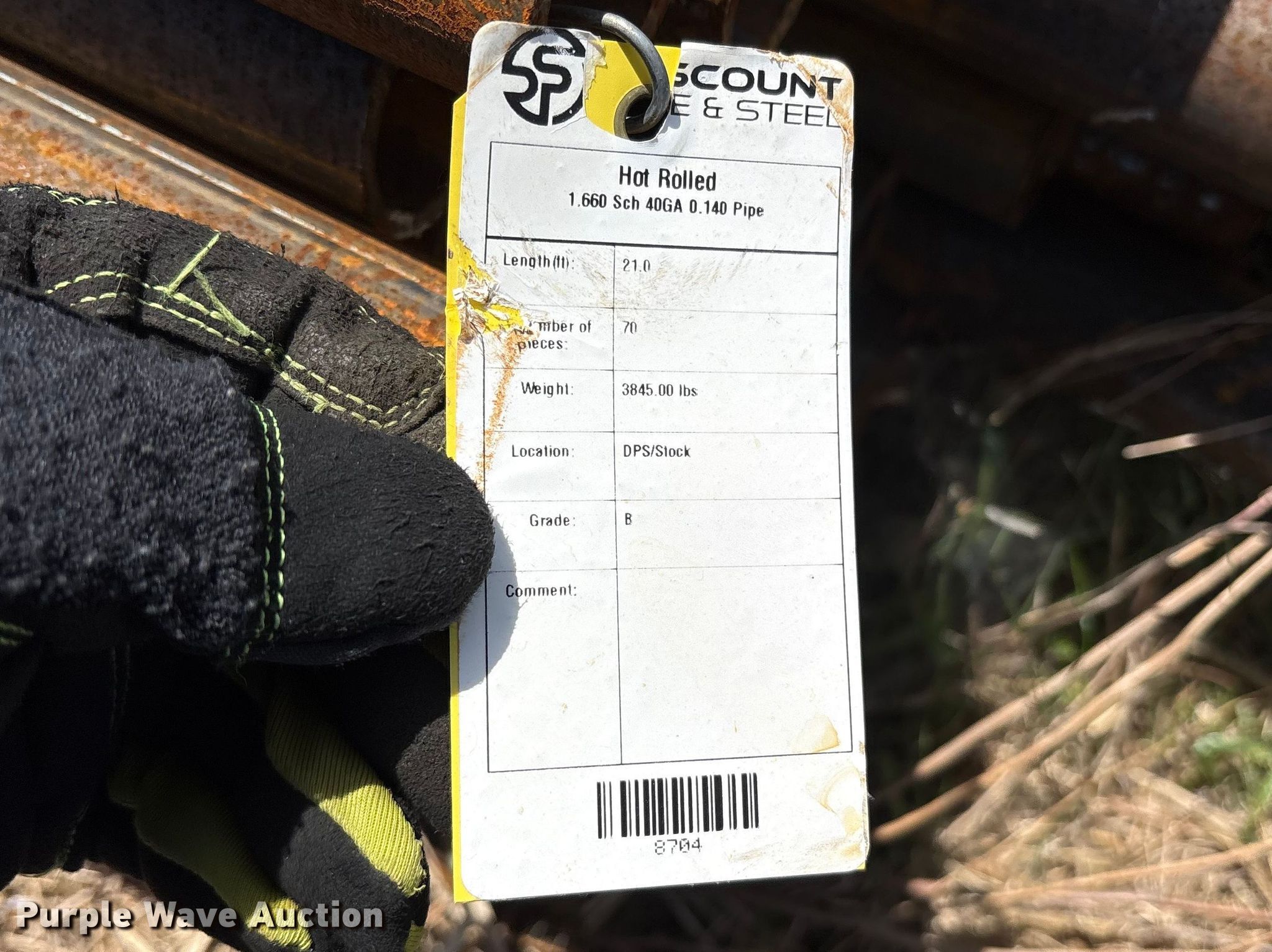 (70) joints of 1.66" diameter x 21' L pipe. Unit #: 8704. Features Schedule: 40, Total pipe linear feet: 1,470, Weight: 3,845 lbs, Hot rolled. Discount Pipe & Steel. Pickton, TX 75471