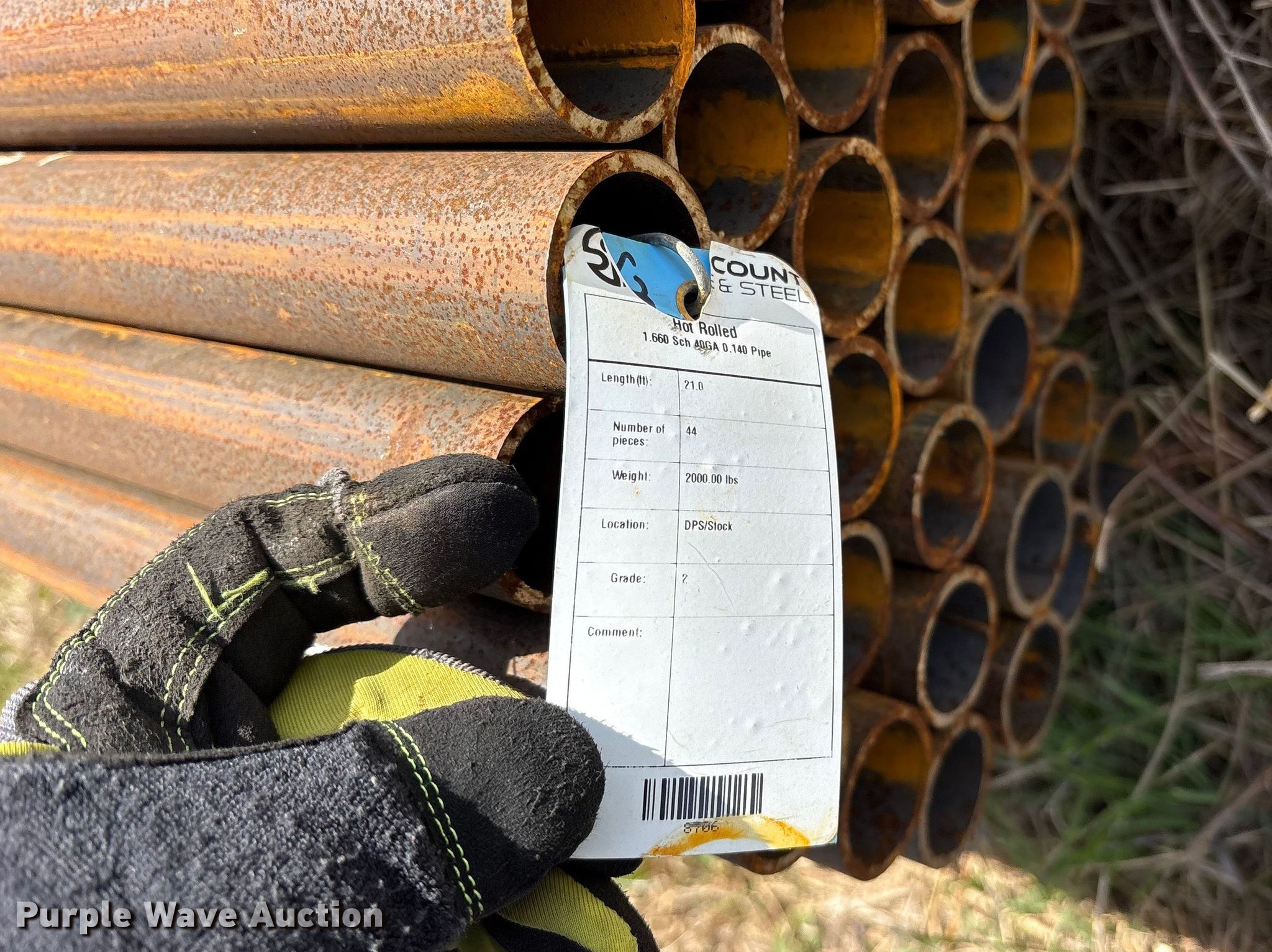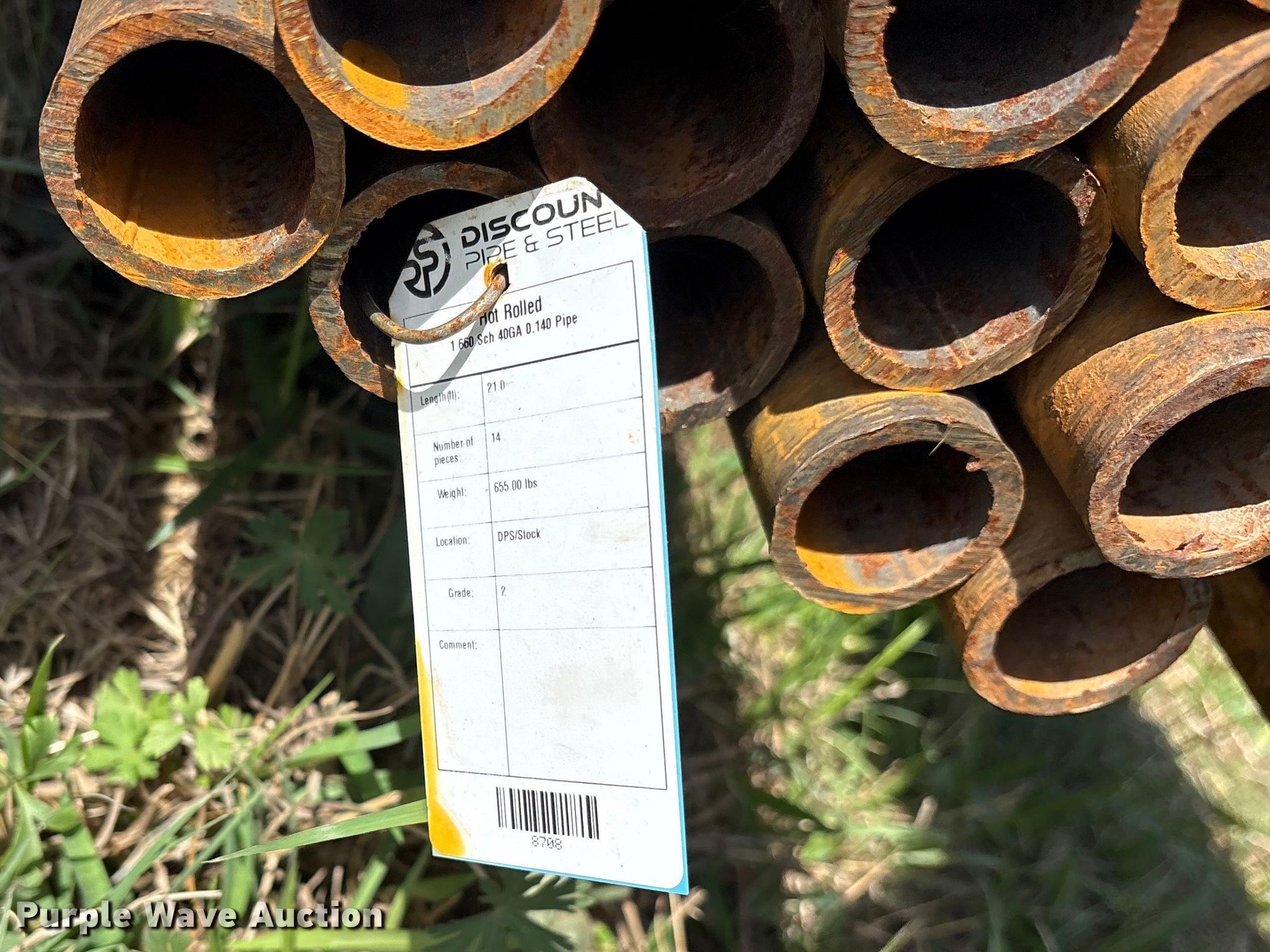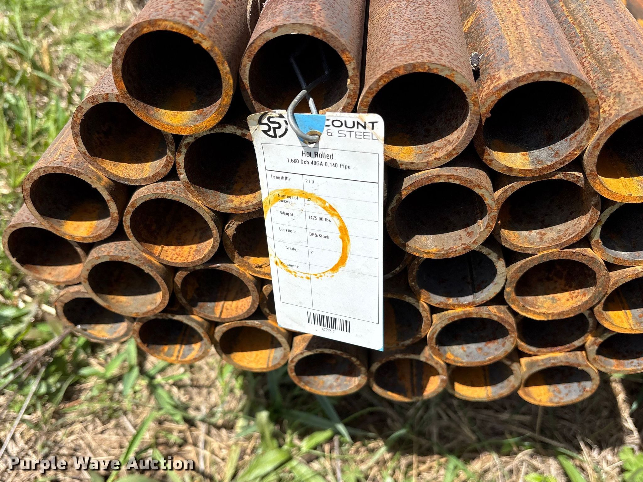 Purple Wave is selling a used Pipe in Texas. This item is a (91) joints of 1.66" diameter x 21' L pipe with the following: Schedule: 40, Weight: 4,130 lbs, Hot rolled