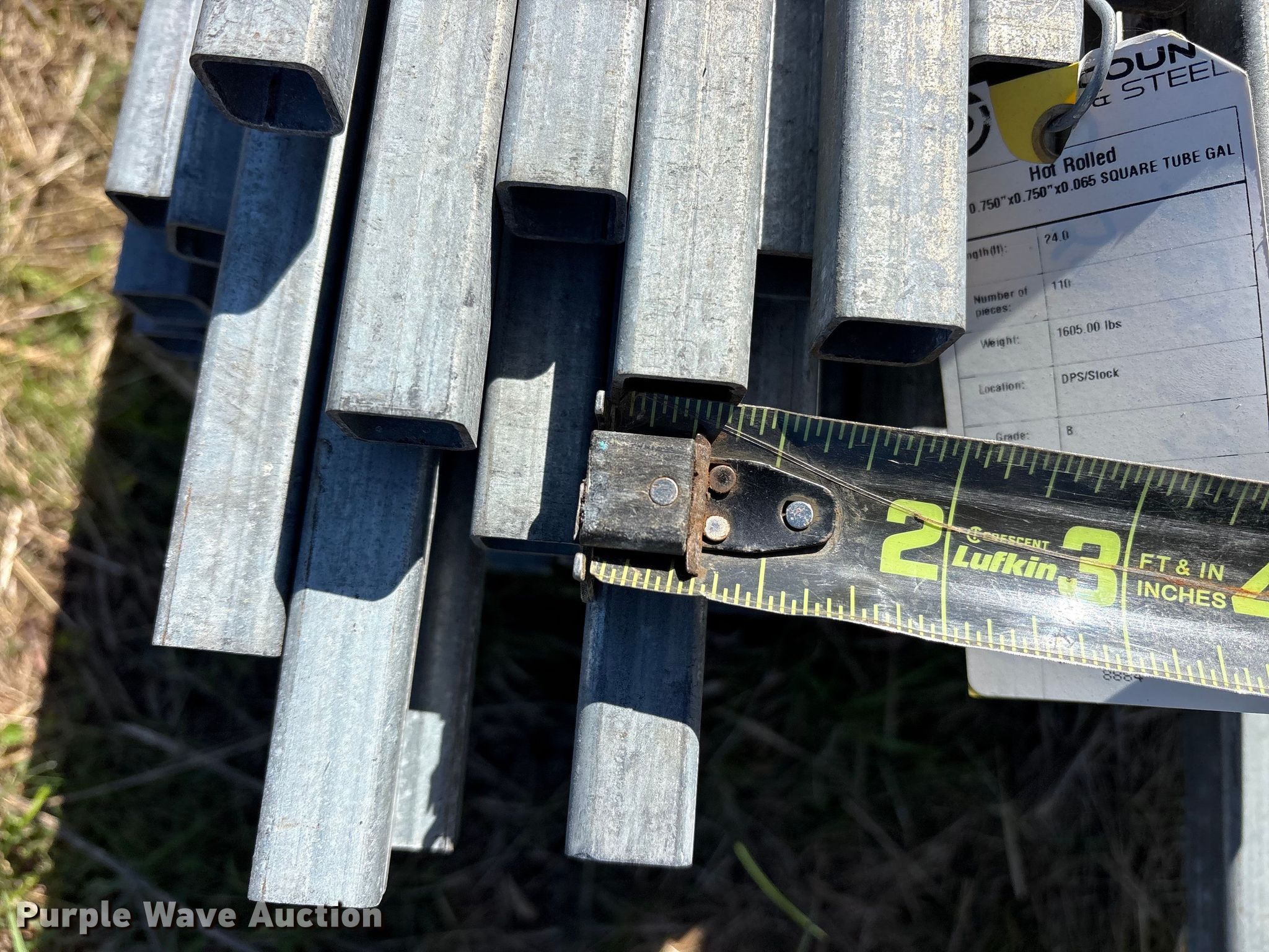 (110) 16 gauge galvanized tubing. Unit #: 8884. Features.75" x.75", Length: 24', Total linear feet: 2,640, Weight: 1,605 lbs, Hot rolled. Discount Pipe & Steel. Pickton, TX 75471