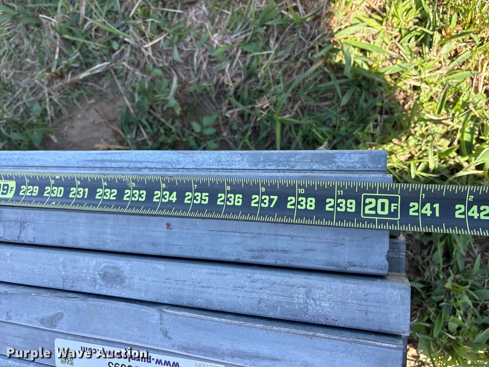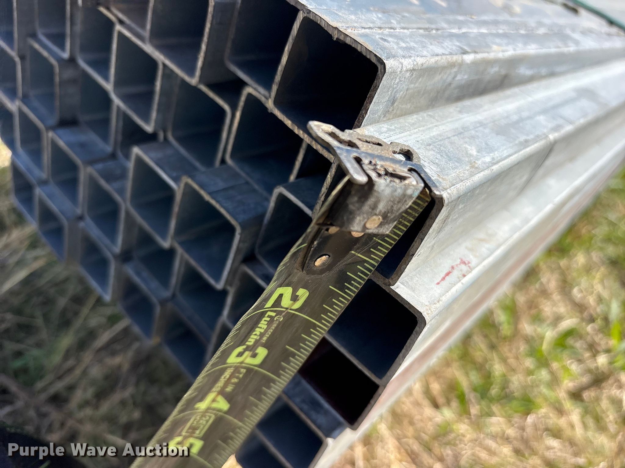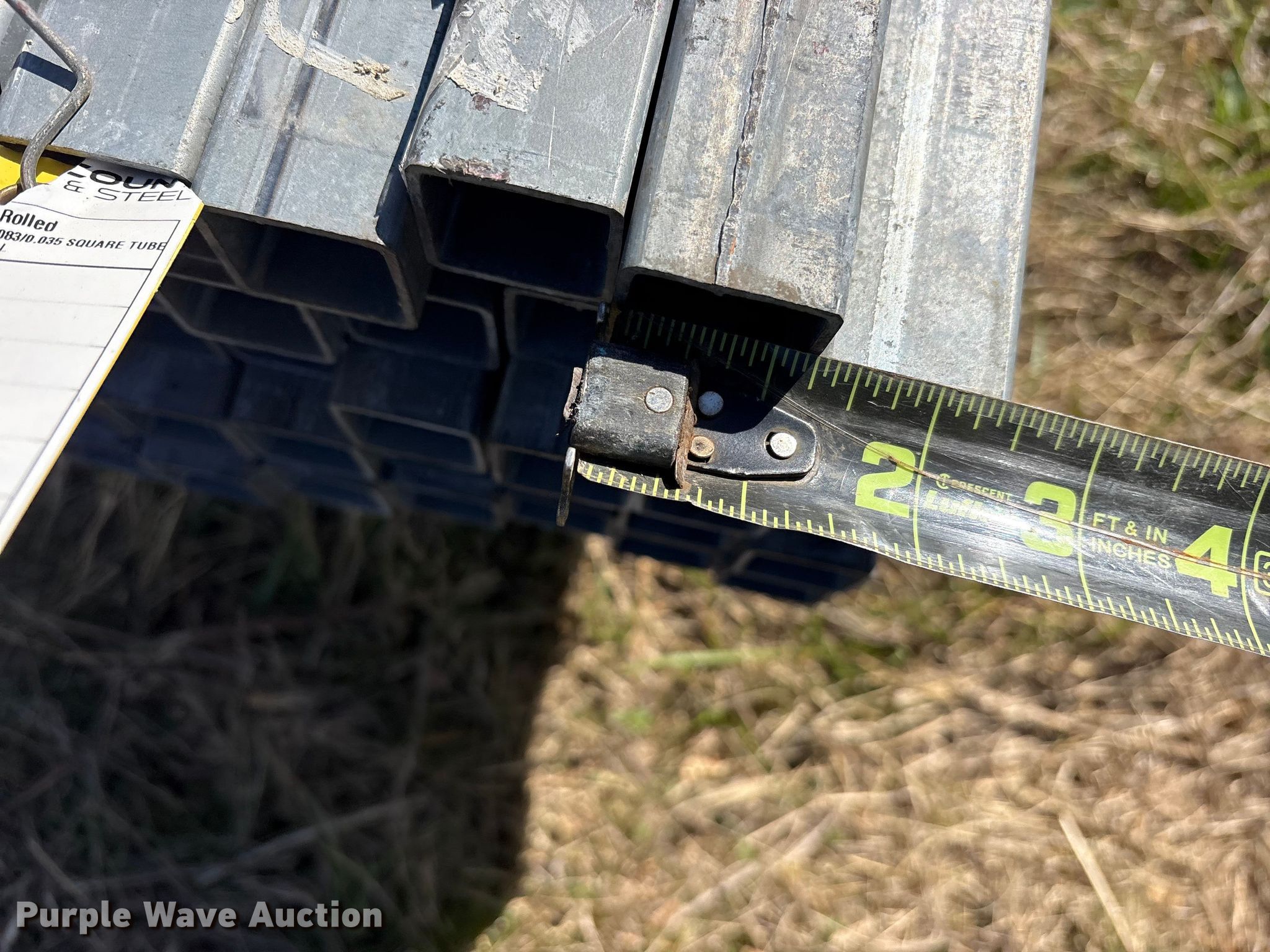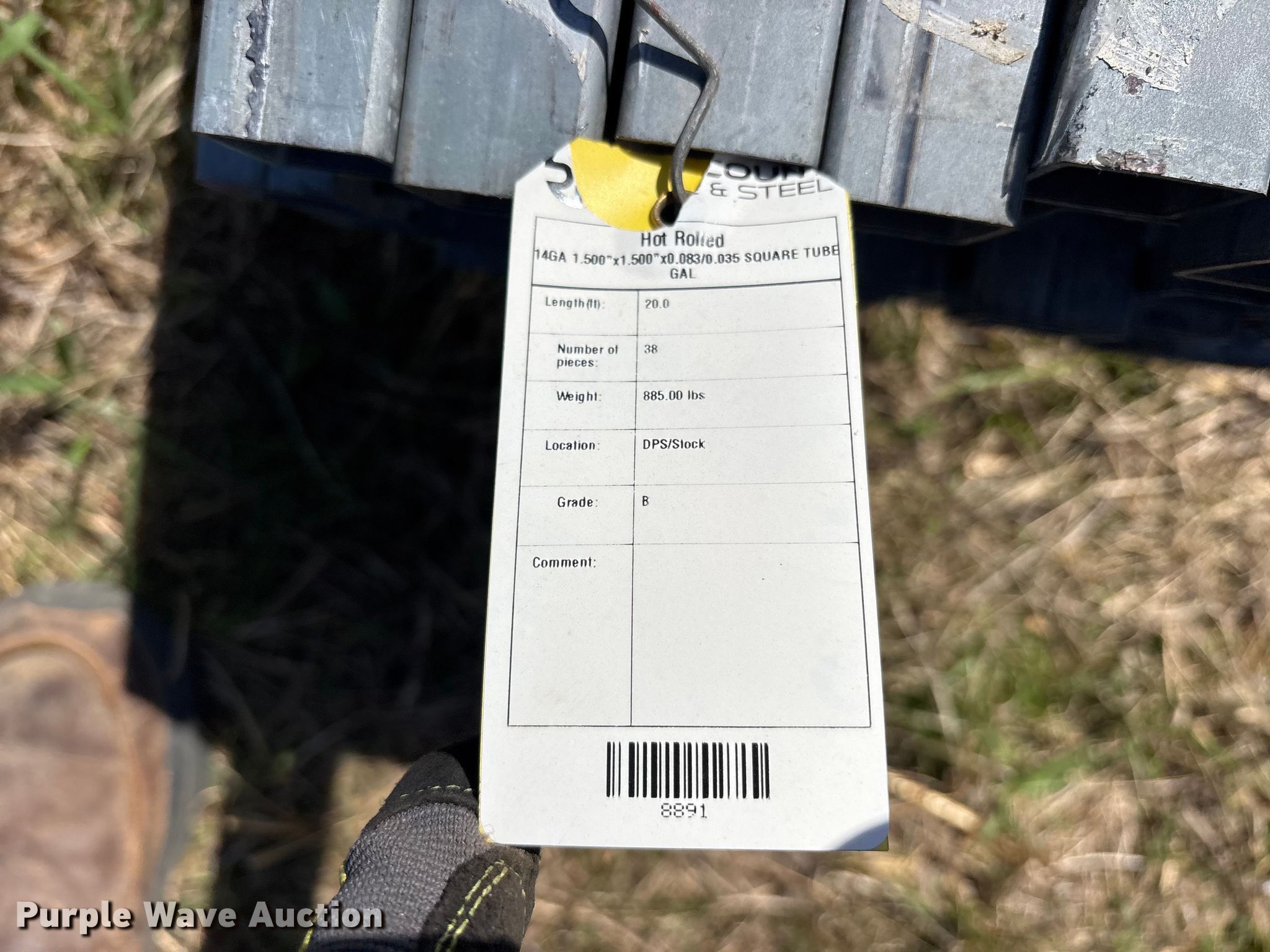 (38) 14 gauge galvanized tubing. Unit #: 8891. Features 1.5" x 1.5", Length: 20', Total linear feet: 760, Weight: 885 lbs, Hot rolled. Discount Pipe & Steel. Pickton, TX 75471