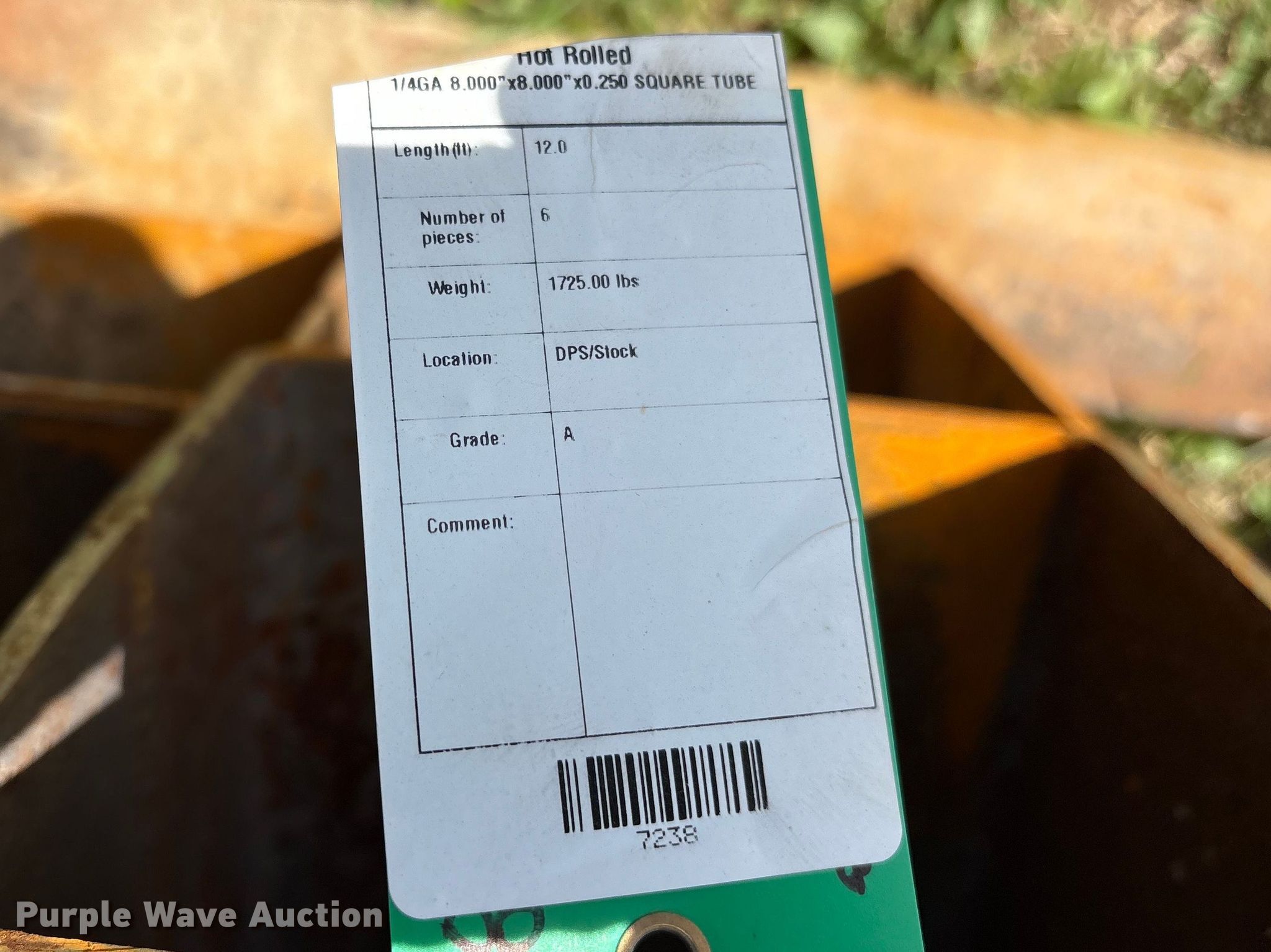 Purple Wave is selling a used Building Materials in Texas. This item is a (6) 12' L galvanized tubing with the following: Unit #: 7238