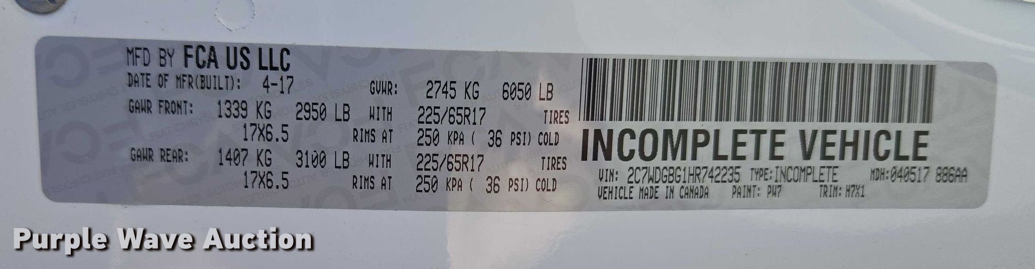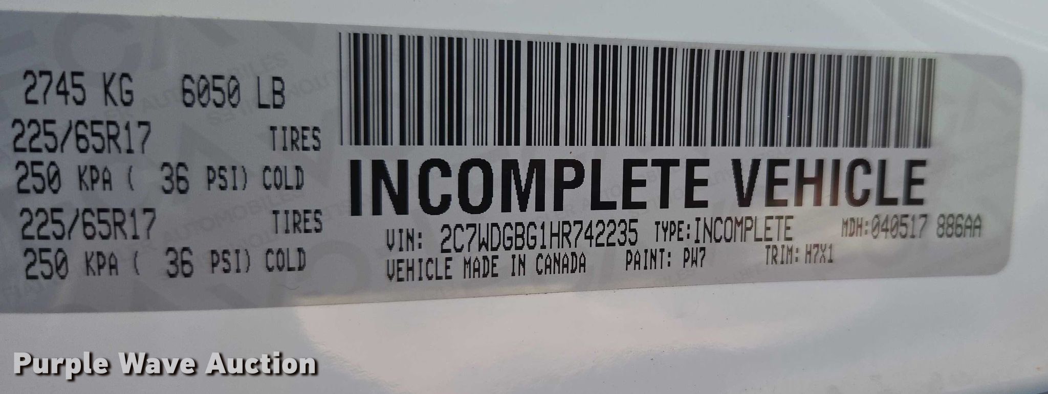 • VIN: 2C7WDGBG1HR742235