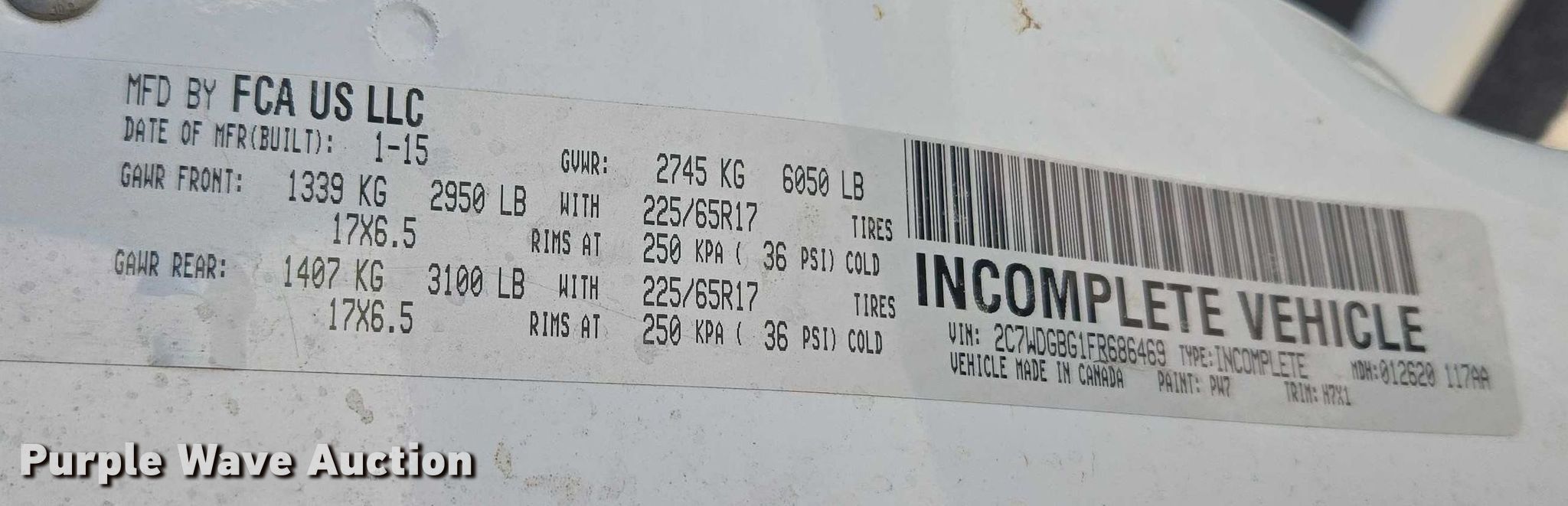 - VIN: 2C7WDGBG1FR686469