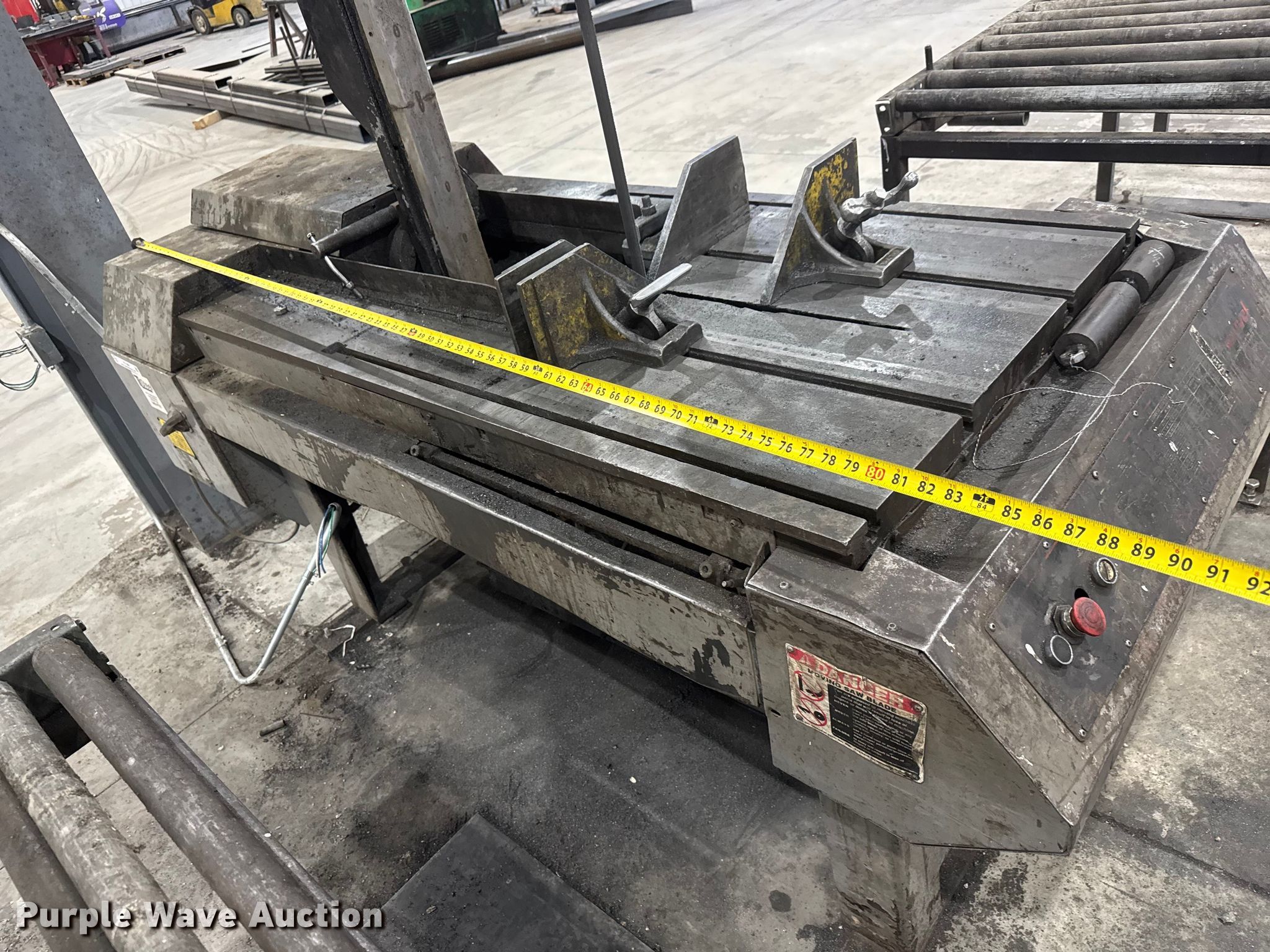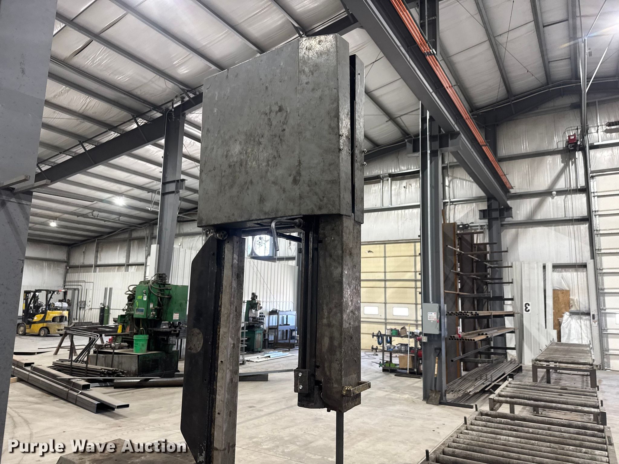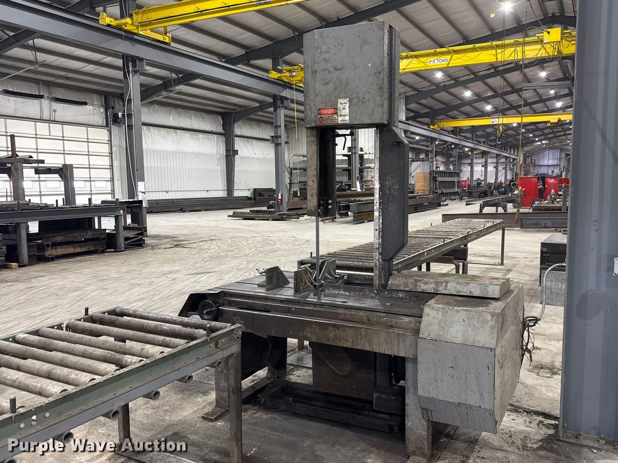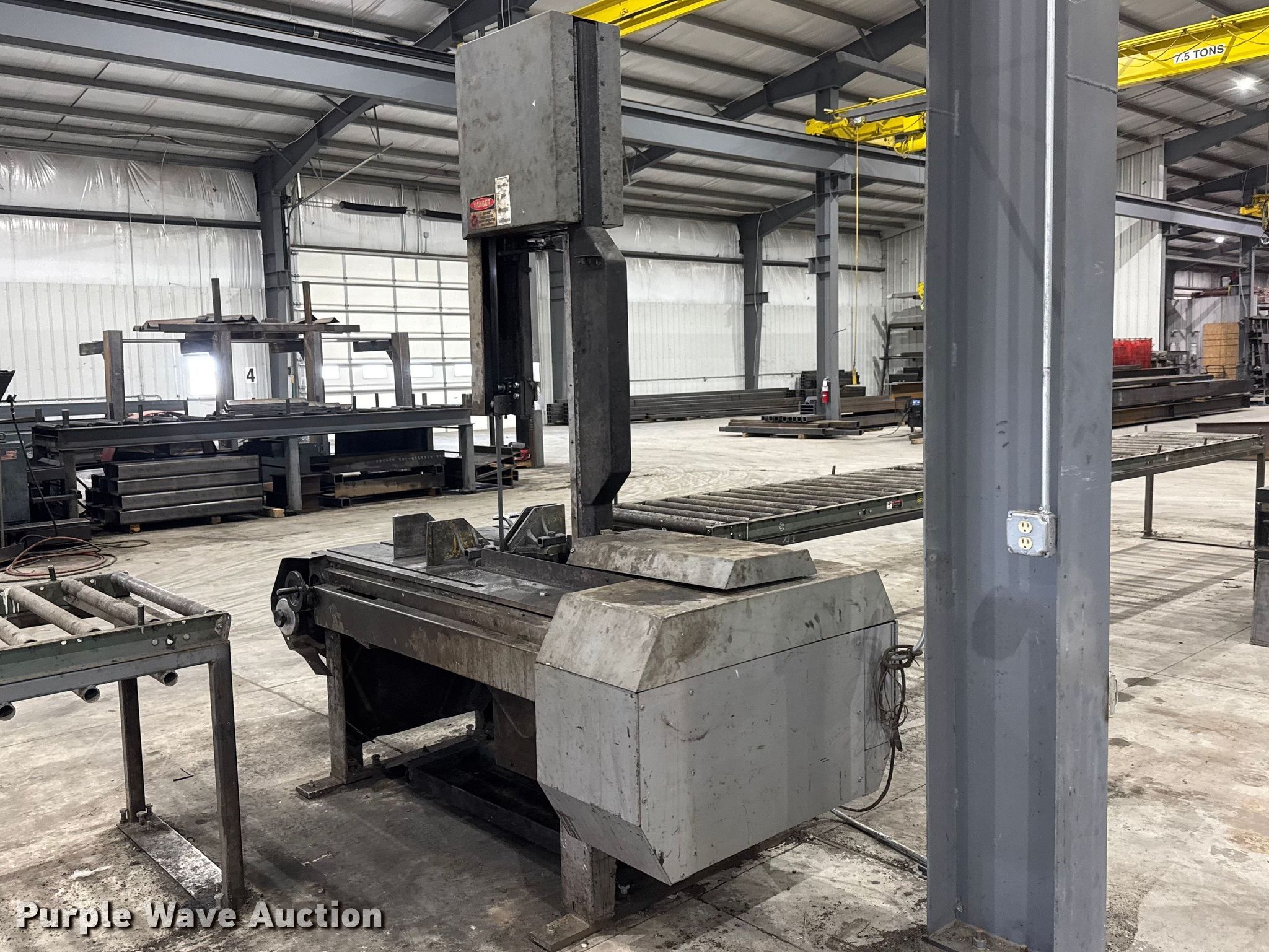 Armstrong Blum Marvel 8 Mark II vertical bandsaw. Serial: 826000-W. Electric Motor Lincoln, Volts: 460, Phase: Three. Features 4 roller frames included, Rollers: (2) 20' L, 5' 6" L, 4' 6" L. Notes Coolant system removed, Autofeed issues, needs serviced, Unit still in use until 3/18/2026, Utilities will be disconnected prior to auction, Components will be unbolted from the floor prior to auction. TL Steel LLC. Burrton, KS 67020
