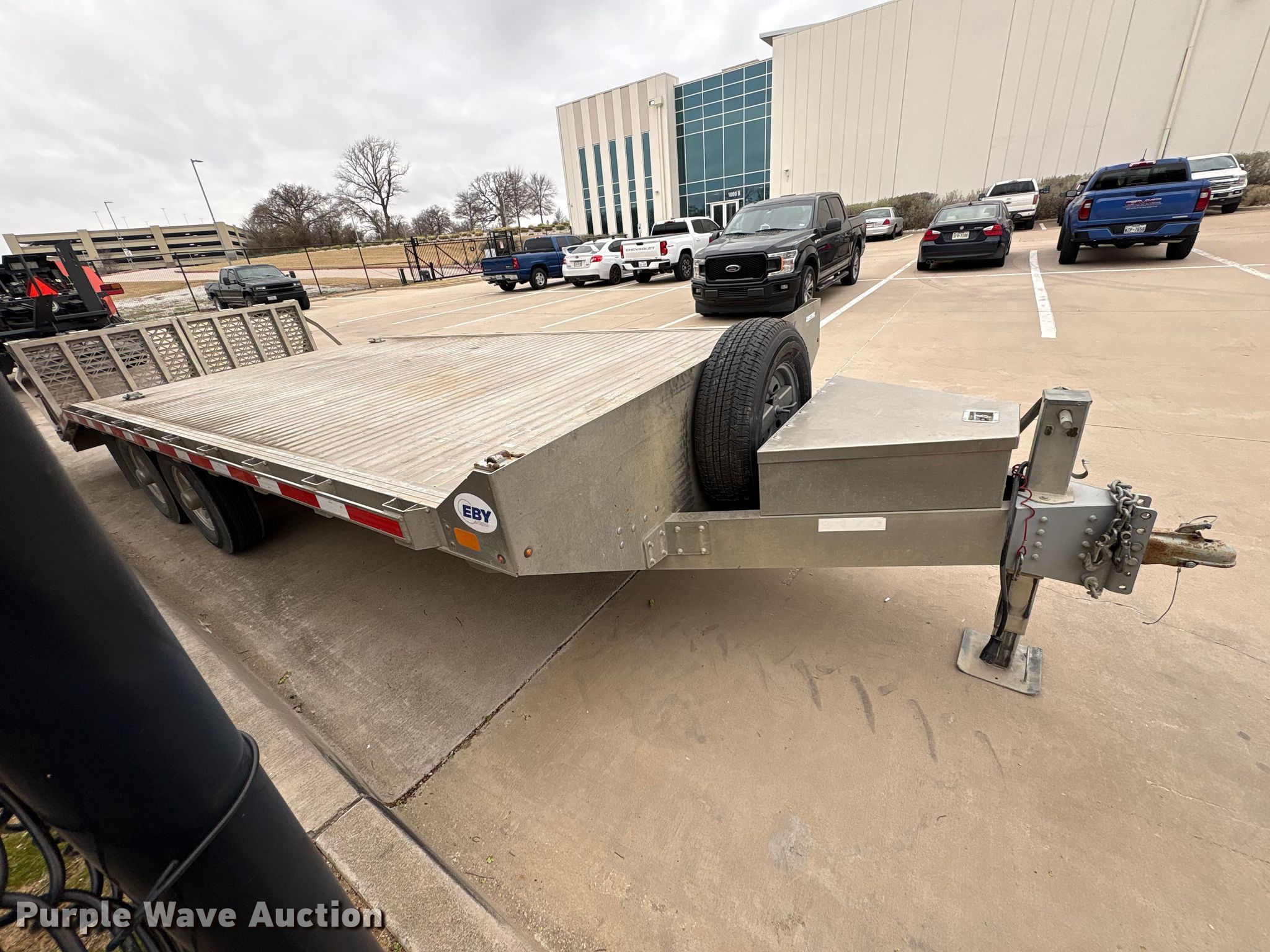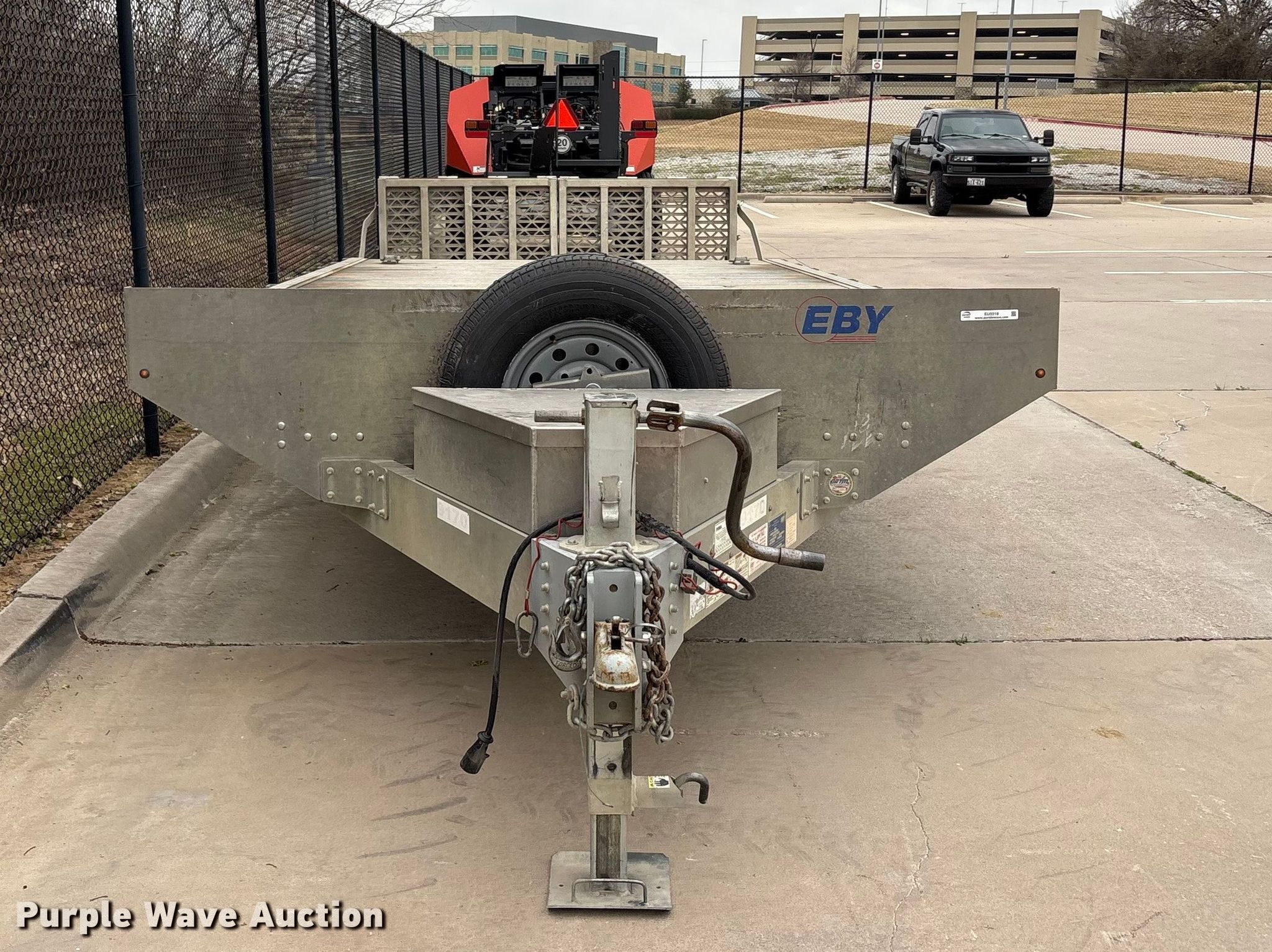 2018 M.H. Eby, Inc equipment trailer. VIN: 4A2MB2020J1019170. Dimensions Overall Length: 26', Width: 101", Deck Length: 190", Width: 98", Tail length: 53", Ramps: Manual. Features Deck type: Aluminum. Chassis Ball hitch: 2 5/16", Landing gear: Single, Suspension: Torsion, Brakes: Air, Axles: Tandem, GVWR: 12,000 lbs, GAWR: 7,000 lbs. Tires Aluminum wheels, Size: 235/80R16. Texas title. Title distribution may be delayed up to 14 days from verification of funds. Kubota Tractor Corp. Grapevine, TX 76051