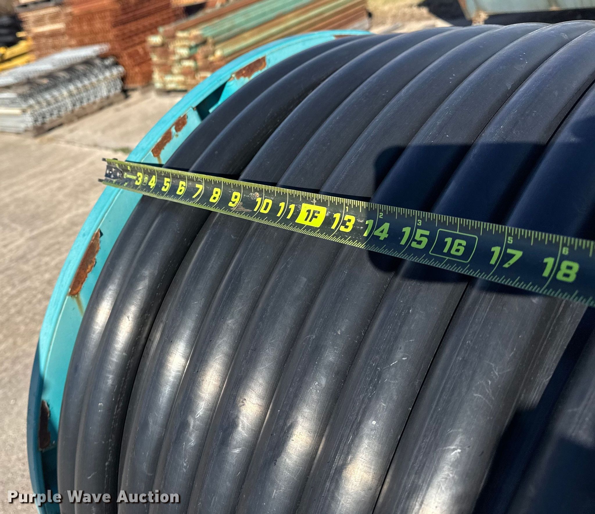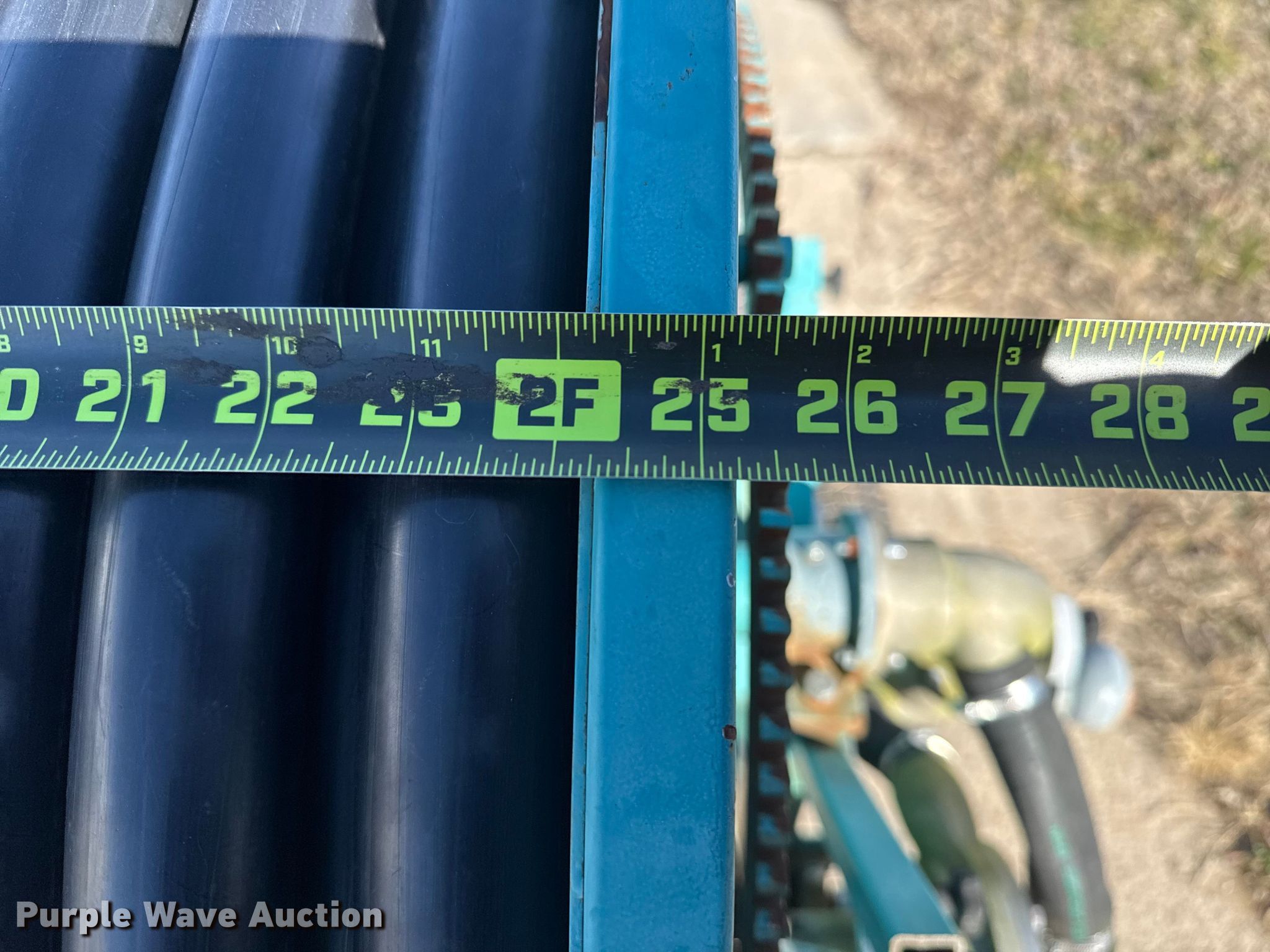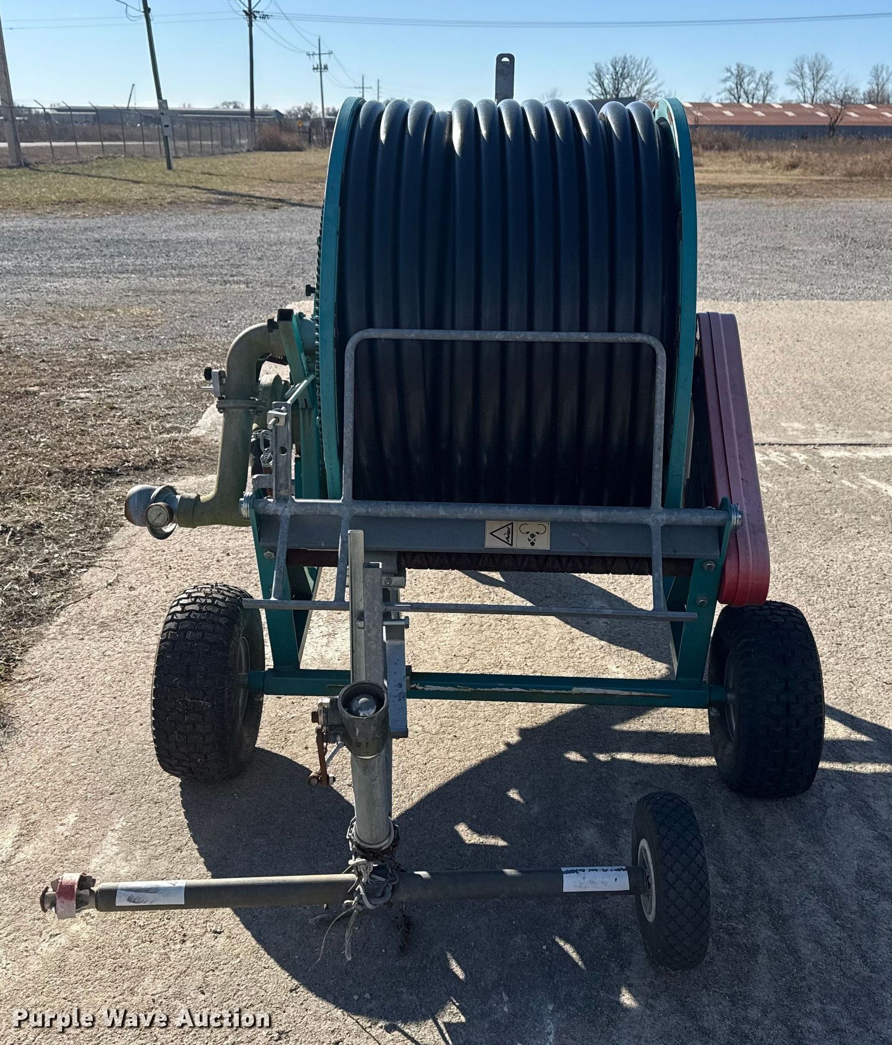 Purple Wave is selling a used Hose Reel in Oklahoma. This item is a Micro Rain hose reel with the following: Reel width: 25 1/2", Outlet valve: 2 1/2", Hitch: Pin, Hose diameter: 1 3/4"
