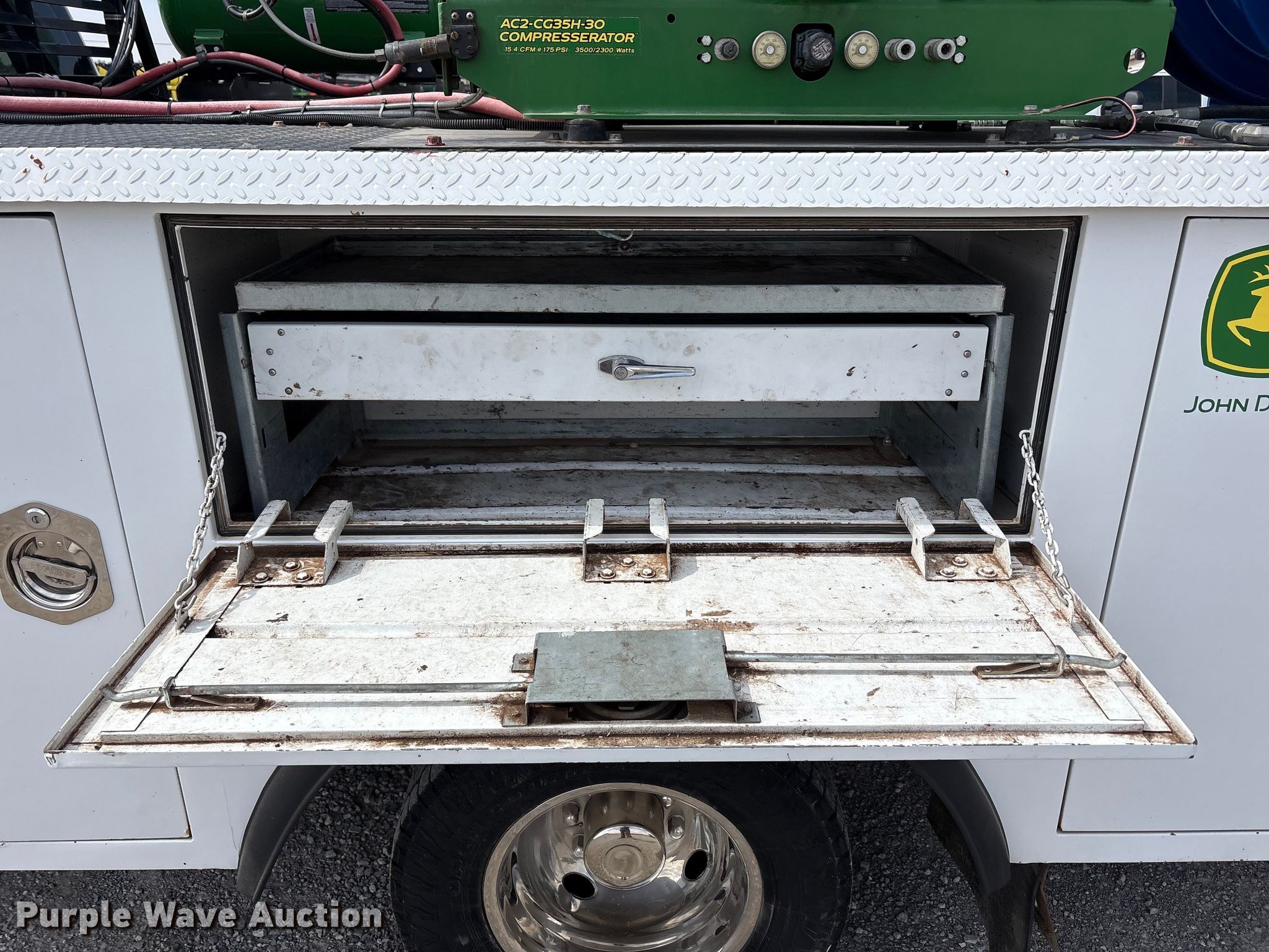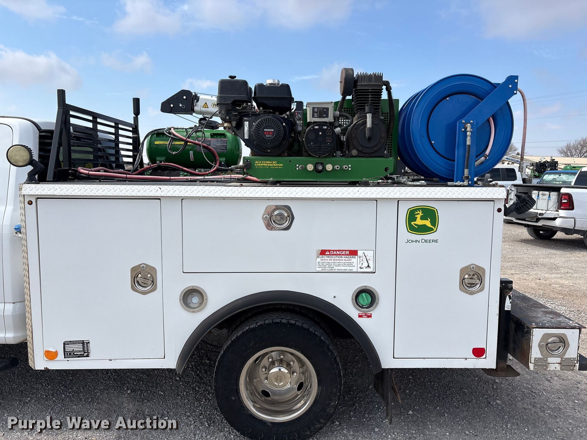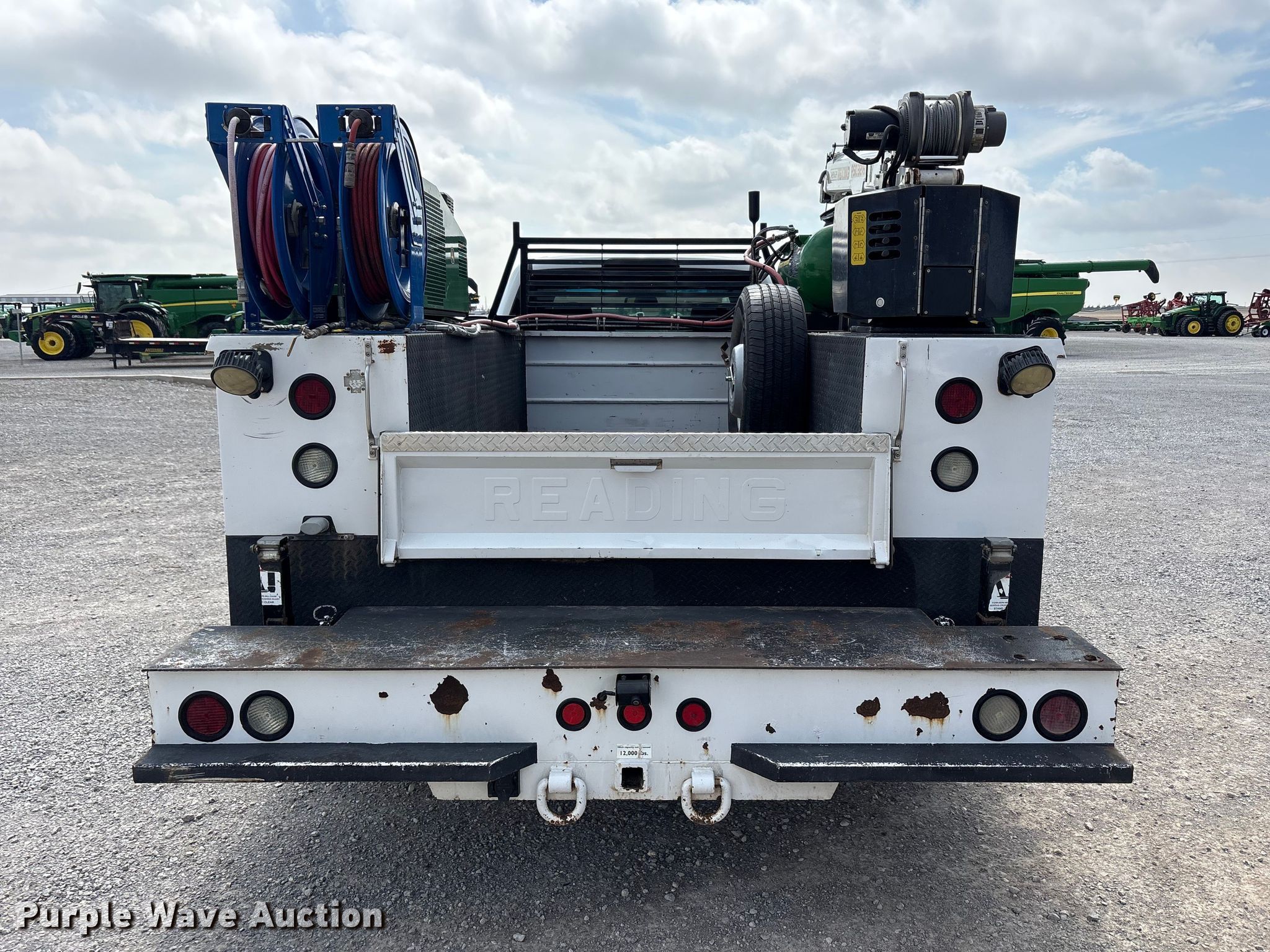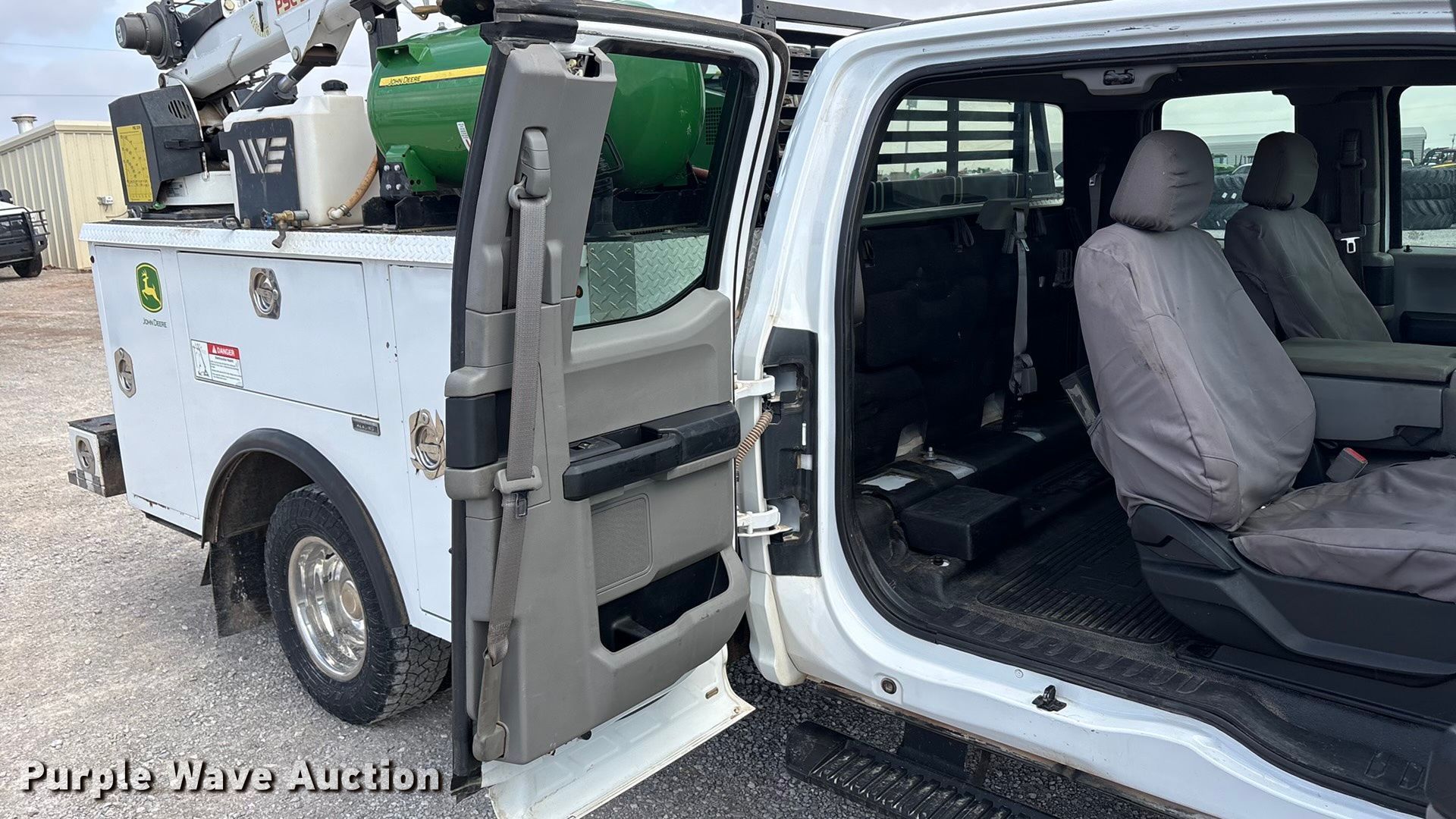 2018 Ford F350 Super Duty XL Ext. Cab utility bed pickup truck. Miles: 193,379 on odometer, VIN: 1FD8X3HT5JEC94512. Engine Ford, Displacement: 6.7L, Cylinders: 8, Fuel type: Diesel. Transmission Automatic. Chassis Four wheel drive, Axles: Single, Brakes: Hydraulic. Interior AC, Heat, Heated mirrors, Power windows, Power locks, Cruise control, Backup camera, Auxiliary controls, Brake controller. Features Bed Utility bed, Reading MM14212A, Serial: 180130035, Length: 11' 8", Width: 8' 1", Torch bottle rack Tanks not included, Generator John Deere AC2-CG35H-30, Fuel type: Gas, 240V outlets: 1, 120V outlets: 2, Watts: 3,500, Air compressor Compresserator AC2-CG35H-30, Honda GX390, Crane Reading PSC 3216, Maximum boom length: 15' Maximum lift capacity: 4,000 lbs.. Tires Size: 245/75R17. Notes Dash warning indicator: TPMS, Emissions system modified, DPF deleted, DEF deleted, Non-operational crane, backup camera. Oklahoma title. Title distribution may be delayed up to 14 days from verification of funds. Western Lease LLC. Amarillo, TX 79119
