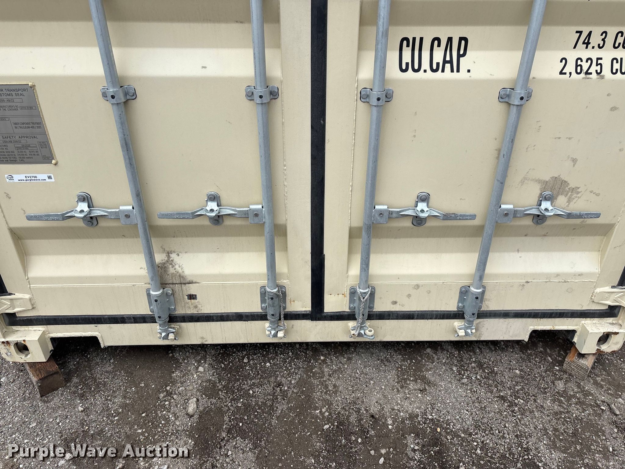 Shipping container for sale in Miami, Oklahoma. Item EV2700 will sell on April 8th, 2026.