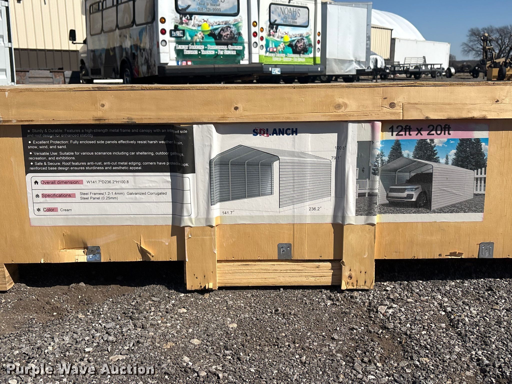 Purple Wave is selling a used Building Materials in Oklahoma. This item is a 2025 SDLANCH SDLC1220 carport with the following: Length: 12', Width: 20', Wall Height: 6' 6", Center Height: 8' 4"
