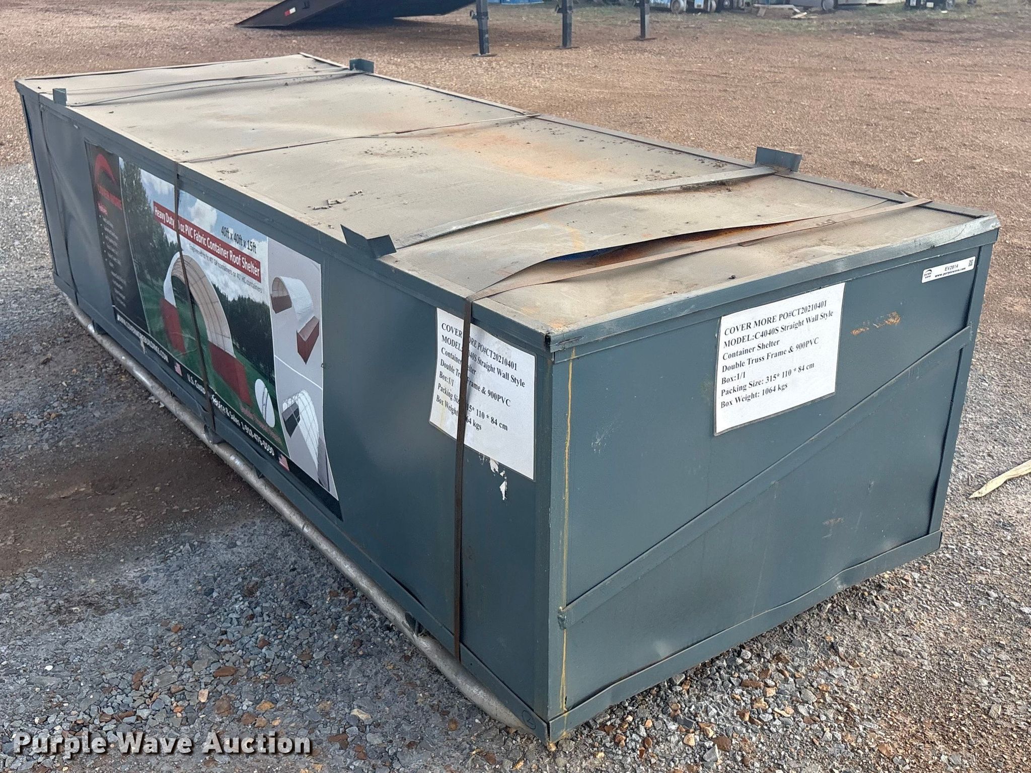 Cover More C4040S container shelter for sale in Chouteau, Oklahoma. Item EV2814 will sell on April 8th, 2026.