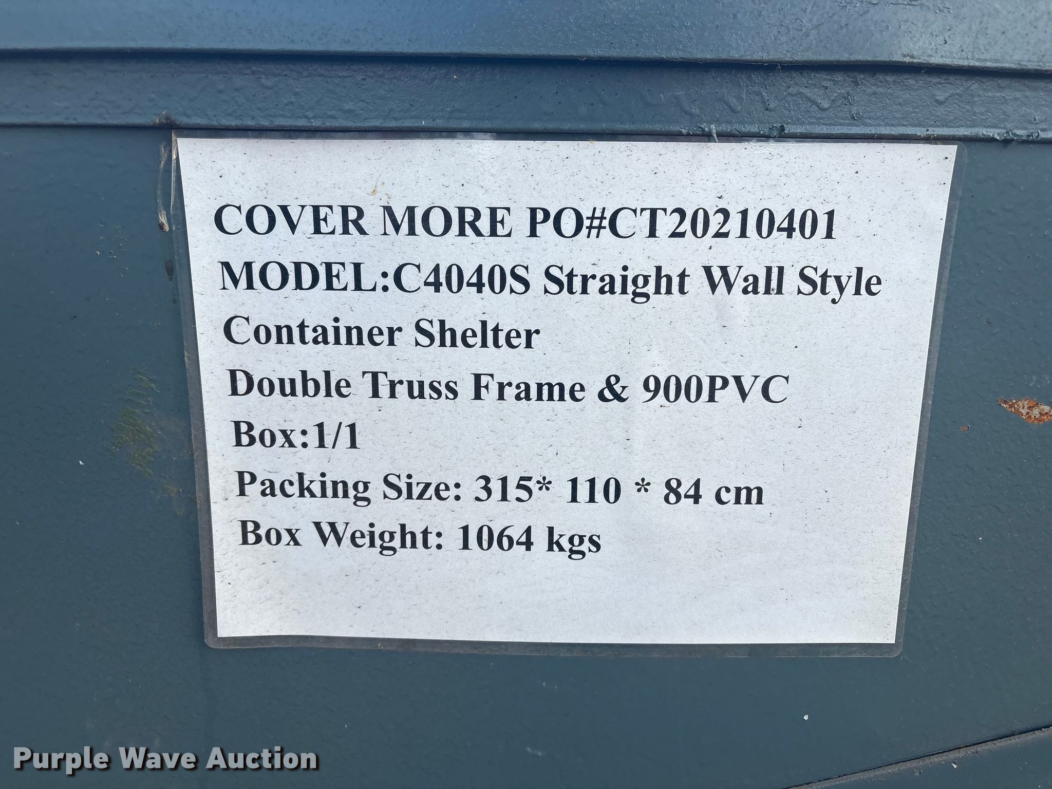 Cover More C4040S container shelter | Wednesday April 08 Vehicles and Equipment Auction