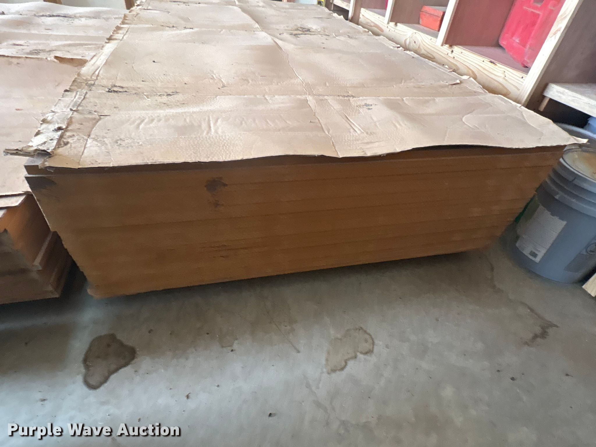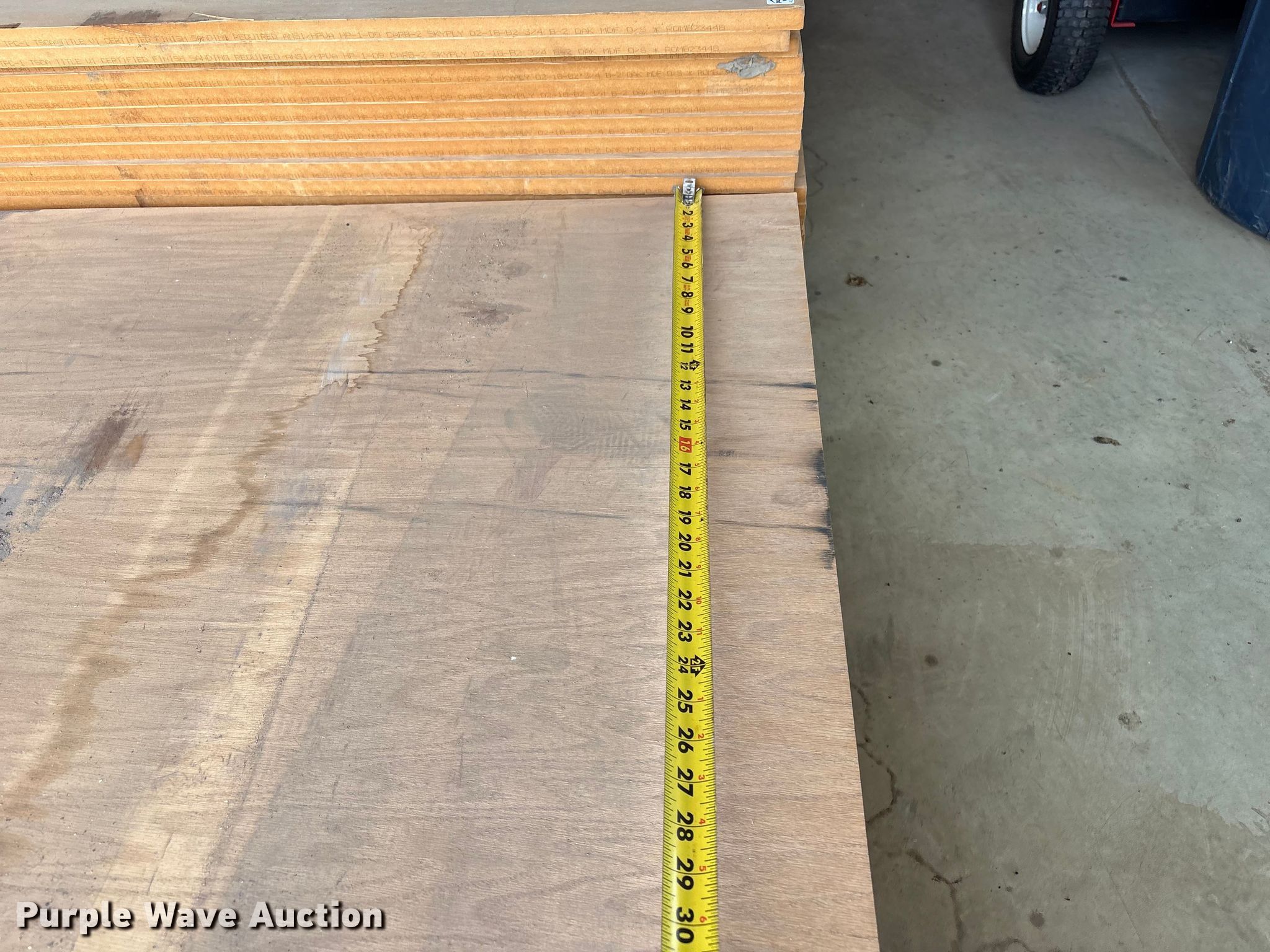Purple Wave is selling a used Building Materials in Oklahoma. This item is a (95) sheets of cabinet grade medium density fiberboard with the following: (60) red oak, Dimensions: 4' W x 8' L, Thickness: 3/4", (14) white oak, Dimensions: 4' W x 8' L, Thickness: 3/4", (21) alder, Dimensions: 4' W x 8' L, Thickness: 3/4"