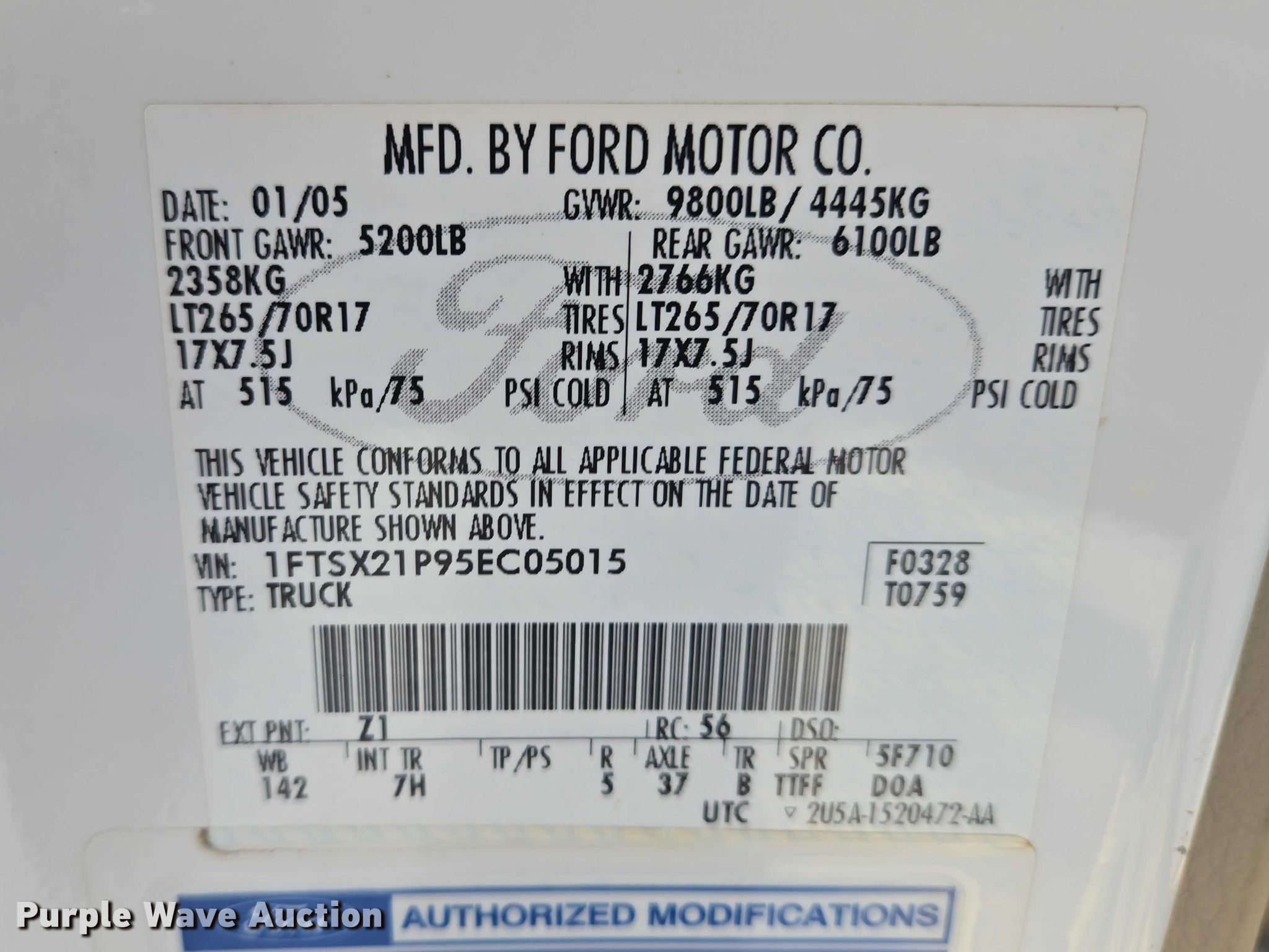 - VIN: 1FTSX21P95EC05015