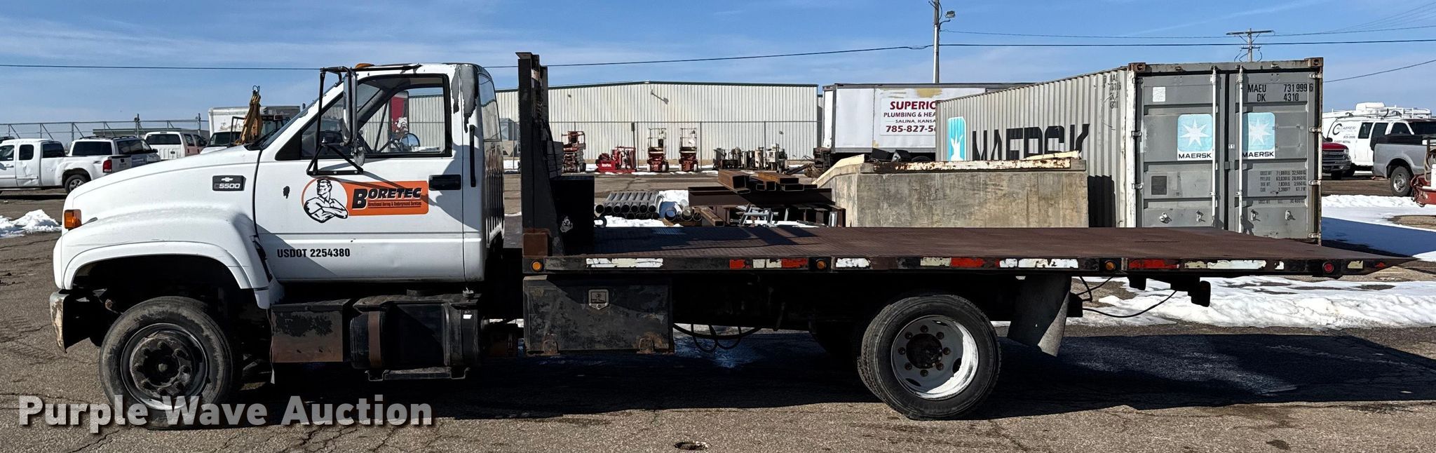 1997 Chevrolet C6 flatbed truck. Miles: 122,548 on odometer, VIN: 1GBE6H1P8VJ109469. Engine Displacement: 6.0L, Cylinders: 8, Fuel type: Gas. Transmission Manual, Speed: 5. Chassis Axles: Single, Suspension: Spring, Brakes: Hydraulic, GVWR: 18,000 lbs. Interior Heat. Features Bed Flatbed, Length: 19', Width: 101", Winch. Tires Size: 225/79R19.5. Notes Windshield chipped or cracked, Clutch missing Unit must be towed or hauled. Kansas title. Title distribution may be delayed up to 14 days from verification of funds. Superior Contracting & Manufacturing Services Co. - Open Inspection February 27. 1655 Wall Street. Salina, KS 67401
