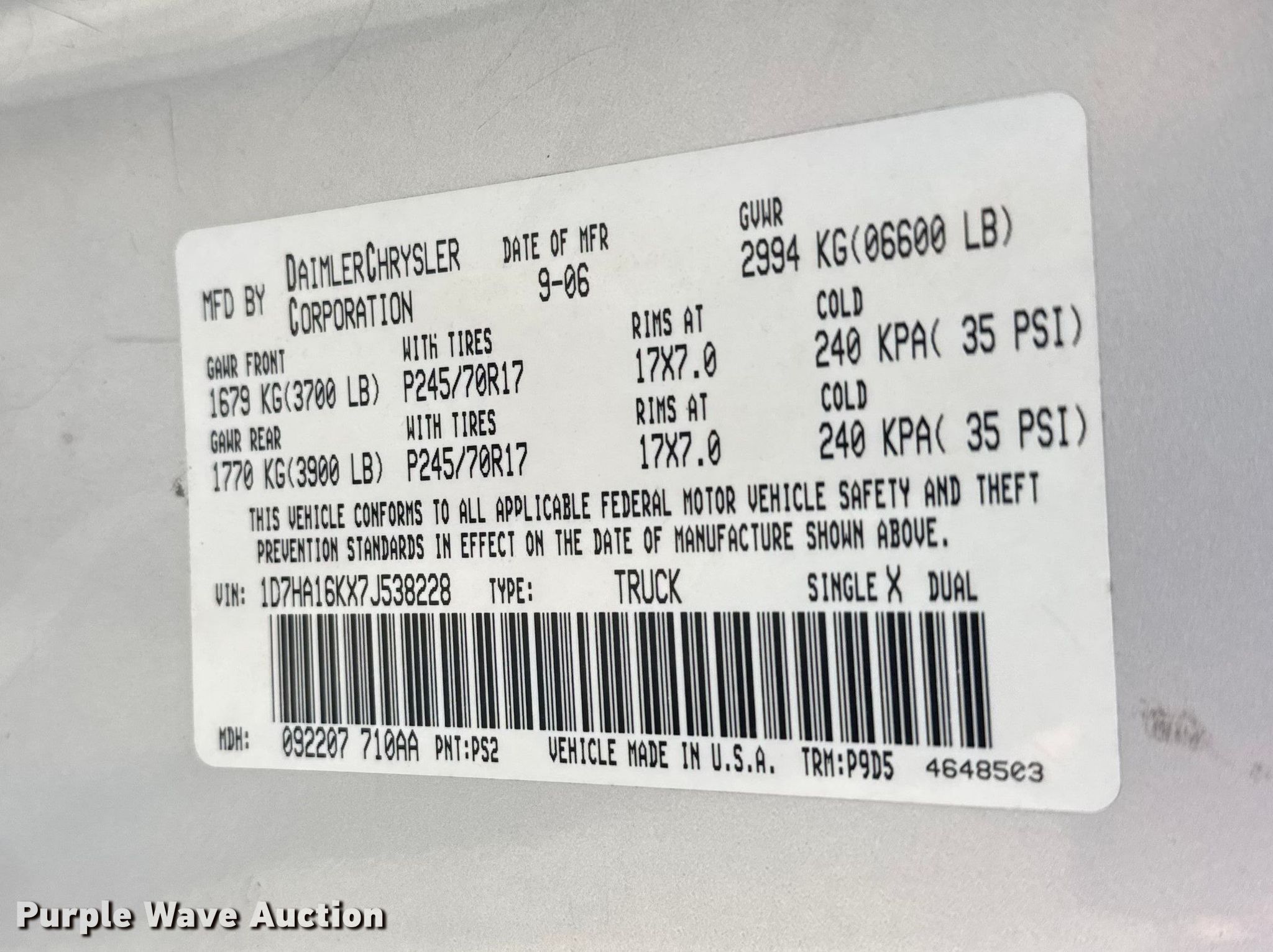 - VIN: 1D7HA16KX7J538228