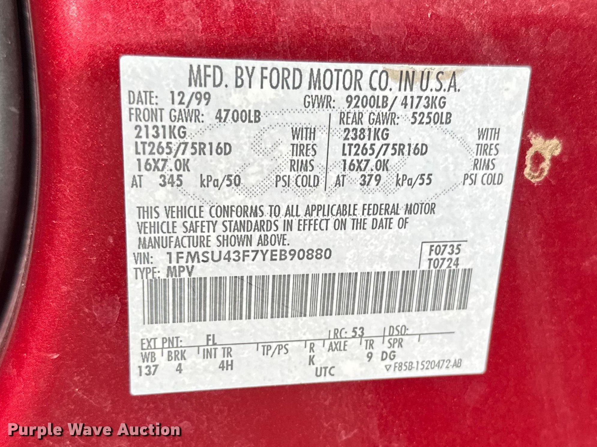 - VIN: 1FMSU43F7YEB90880